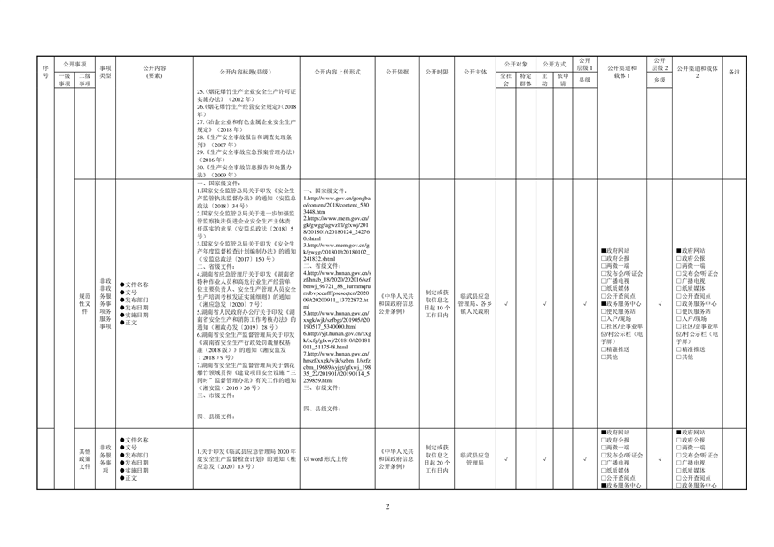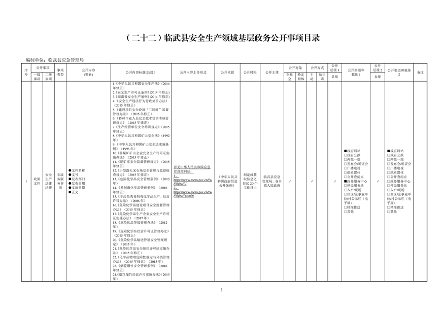 22、临武县安全生产领域基层政务公开事项目录
