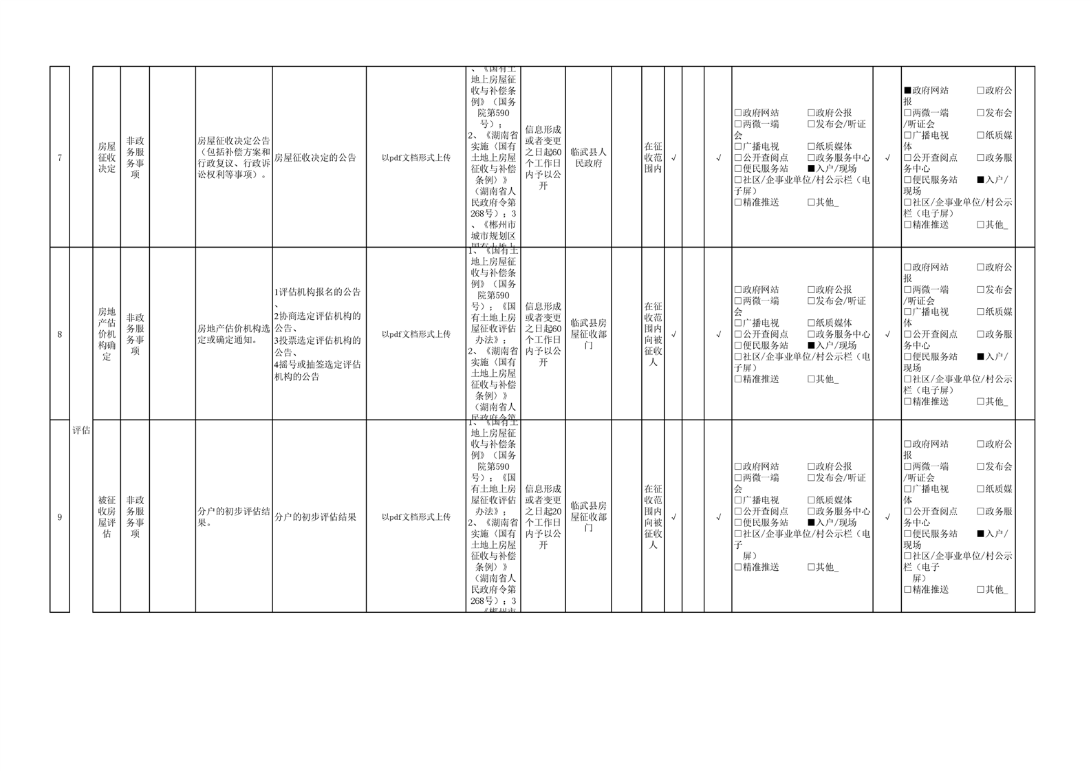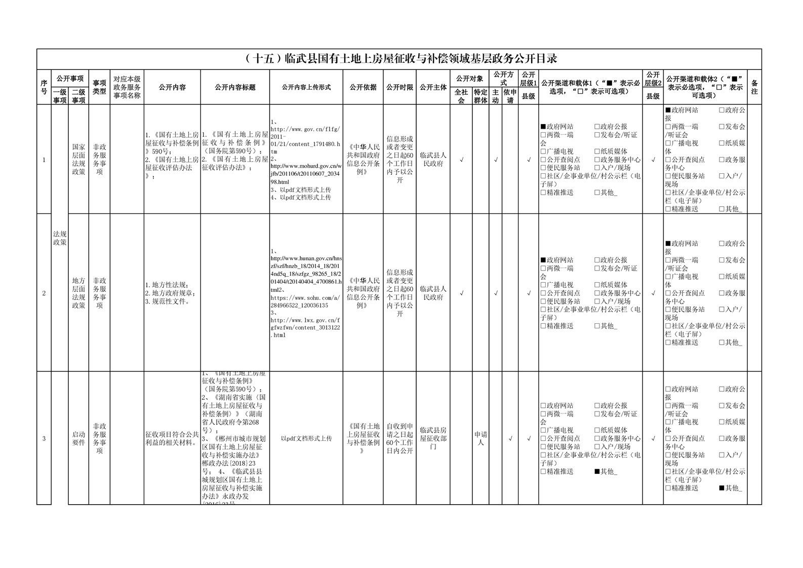 15、临武县国有土地上房屋征收与补偿政务公开目录
