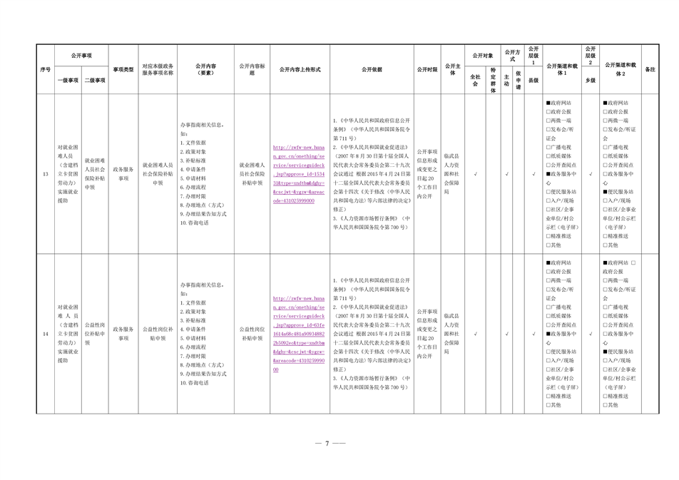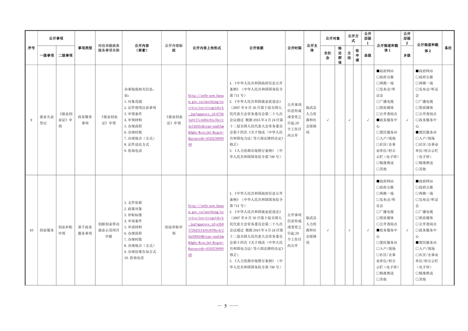 9、临武县就业领域基层政务公开事项目录