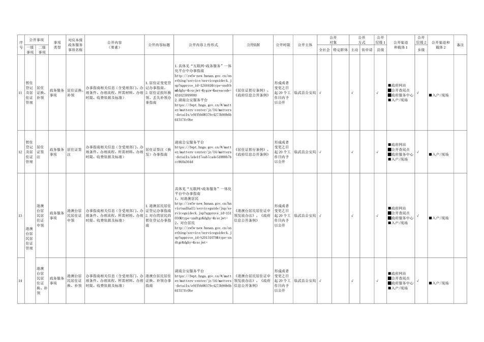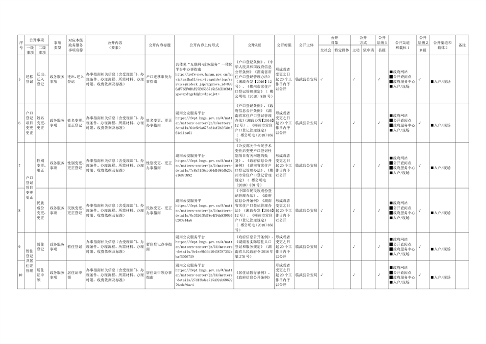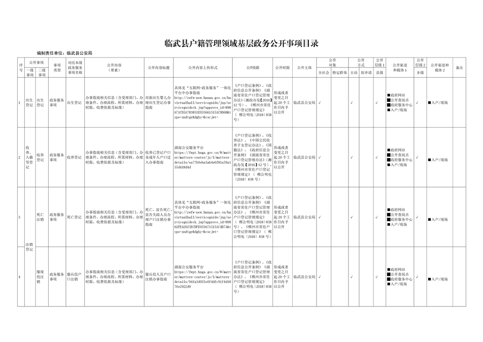 4、临武县户籍管理领域基层政务公开目录