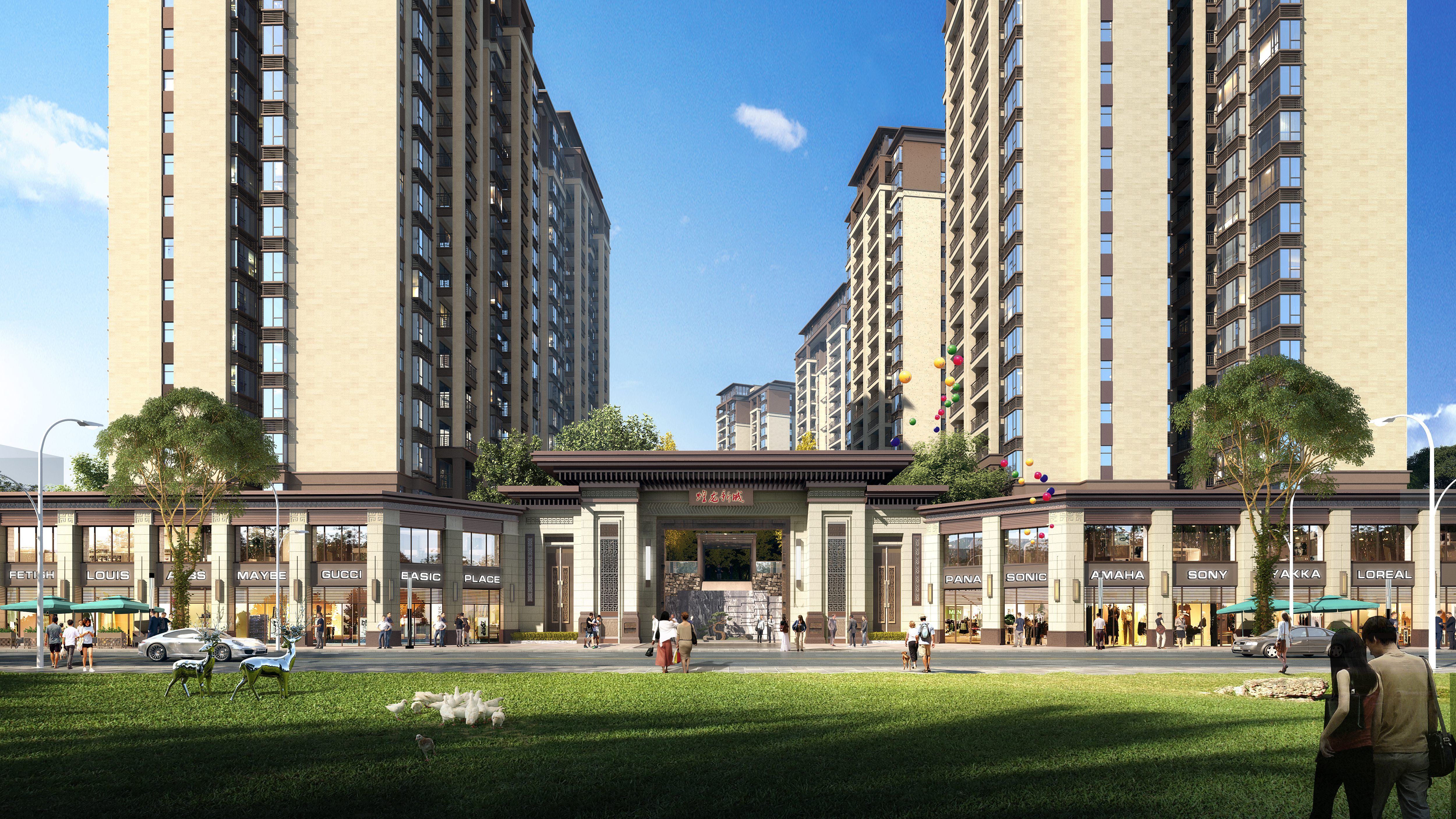 该项目位于环城北路与怡然街交汇处,用地性质为二类居住用地兼商业服务设施用地(R2+B1);总用地面积24113.76㎡;容积率3.09;建筑密度25.8%;绿地率26.49%;建筑高度≤62米,商业比例3.96%。