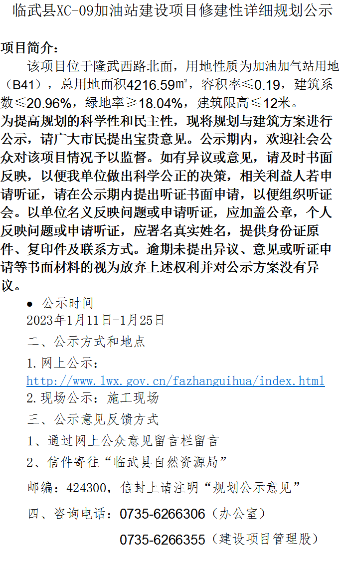 临武县XC-09加油站建设项目修建性详细规划公示