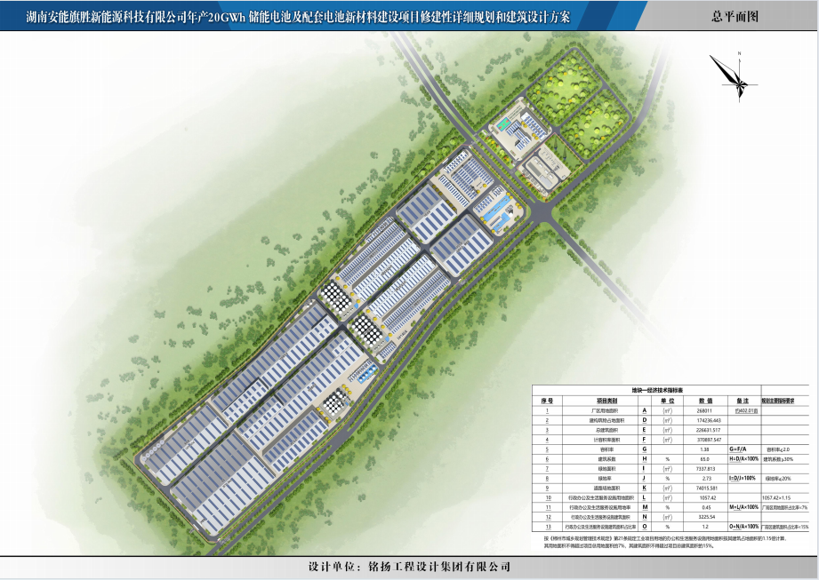 湖南安能旗胜新能源科技有限公司年产20GWh储能电池及配套电池新材料建设项目公示