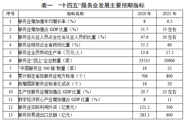 ——环境更好。服务业领域“放管服”改革持续深化,高标准市场体系基本建成,对外开放水平进一步提高。服务业实际利用外资300亿美元以上;服务贸易进出口总额达600亿元以上。