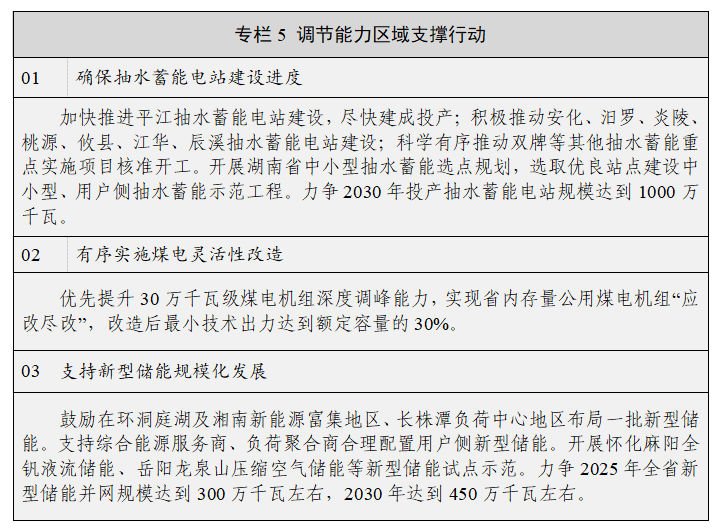 (十六)大力推进抽水蓄能电站建设。统筹考虑电力系统需求、站点资源、生态环境、省间和区域内优化配置等因素,合理布局、科学有序开发建设抽水蓄能电站,打造中南地区抽水蓄能基地,依托交直流混联电网配置平台和全国统一电力市场,推动全省电力调节能力为跨省区输电通道及区域电网安全稳定运行提供稳定支撑。加快推进在建和已核准抽水蓄能项目建设,积极推进其他重点实施抽水蓄能项目前期工作,按照“框定总量、提高质量、优中选优、有进有出、动态调整”的原则,及时对中长期抽水蓄能规划进行滚动调整,实现新能源与抽水蓄能一体化发展。积极开展抽水蓄能建设模式创新与多场景应用,在新能源资源富集区、负荷中心进行中小型、用户侧抽水蓄能选点和关键技术攻关,选取优良站点建设示范工程。探索利用中小型分布式抽水蓄能电站提高新能源就近消纳水平。支持常规水电站梯级融合改造增建混合式抽水蓄能、小水电蓄能化改造等开发模式,建设小水电蓄能化试验平台。至2030年,全省抽水蓄能电站总装机容量力争达到1000万千瓦以上。