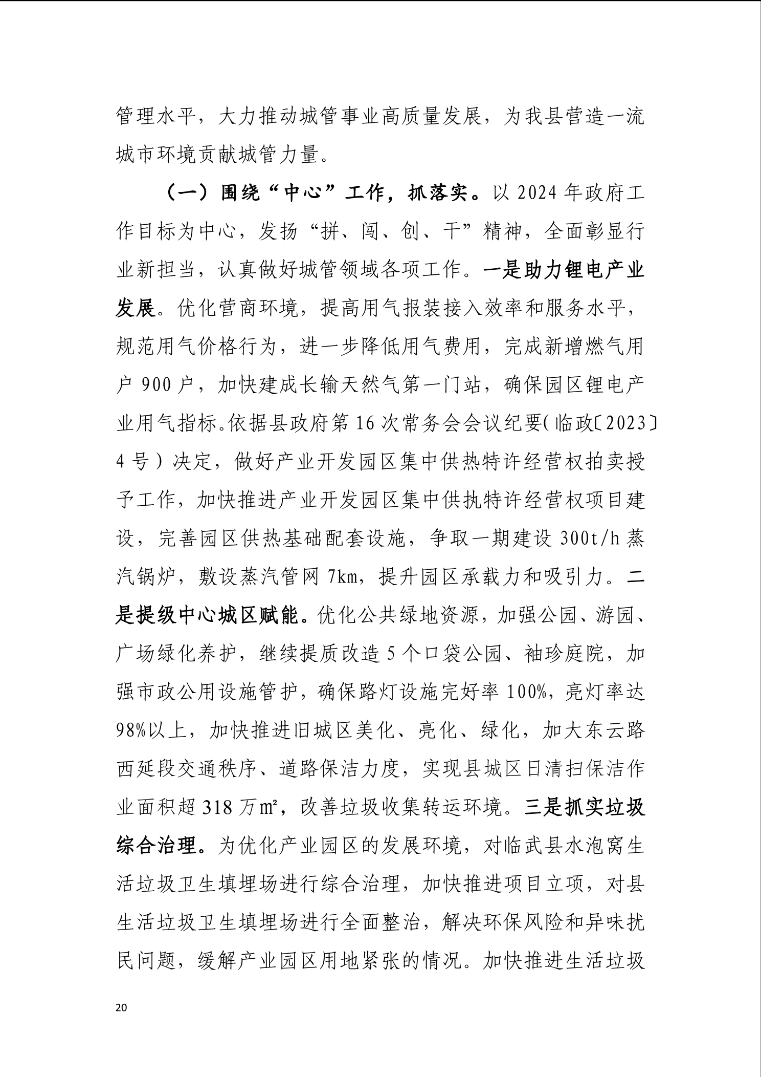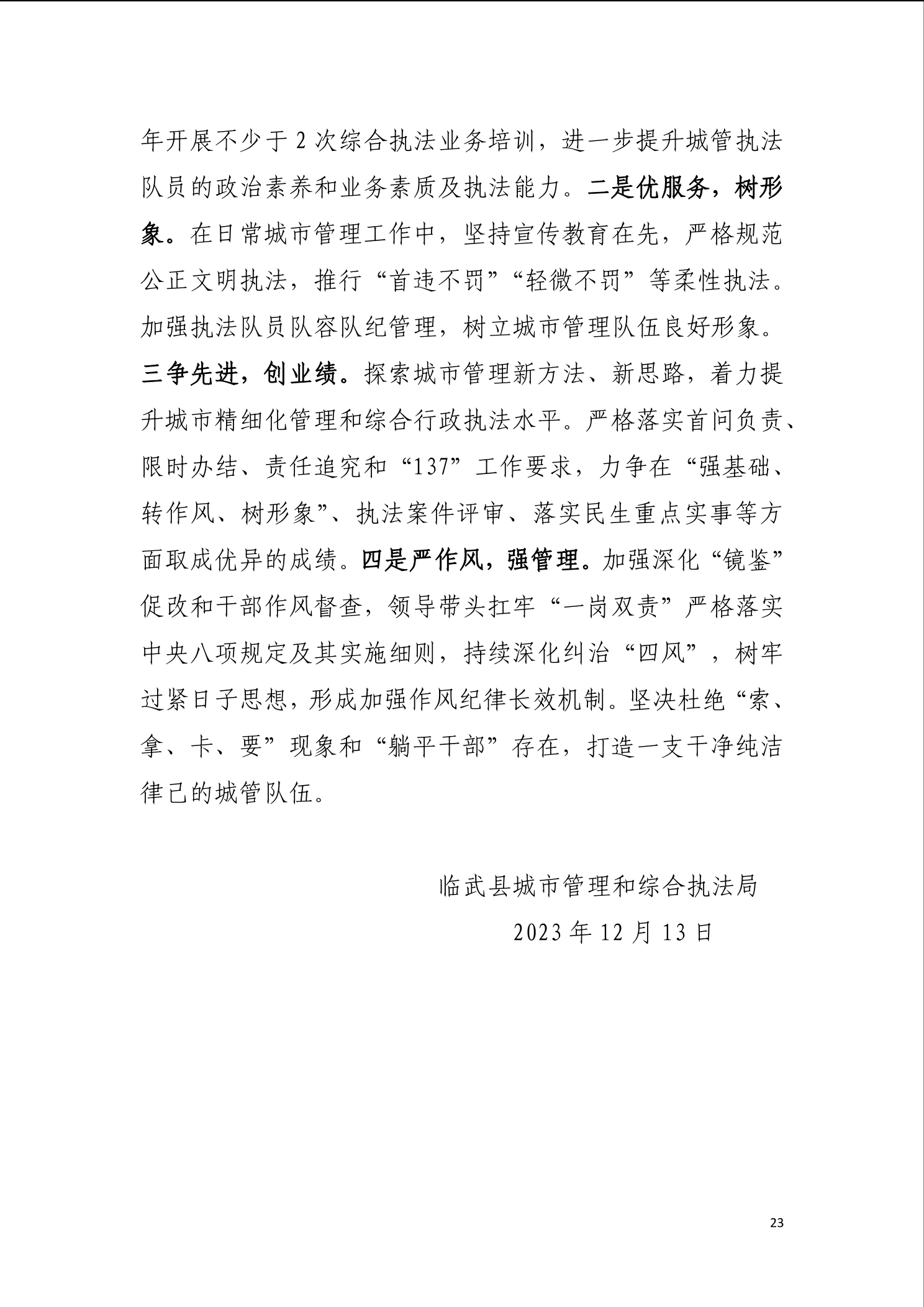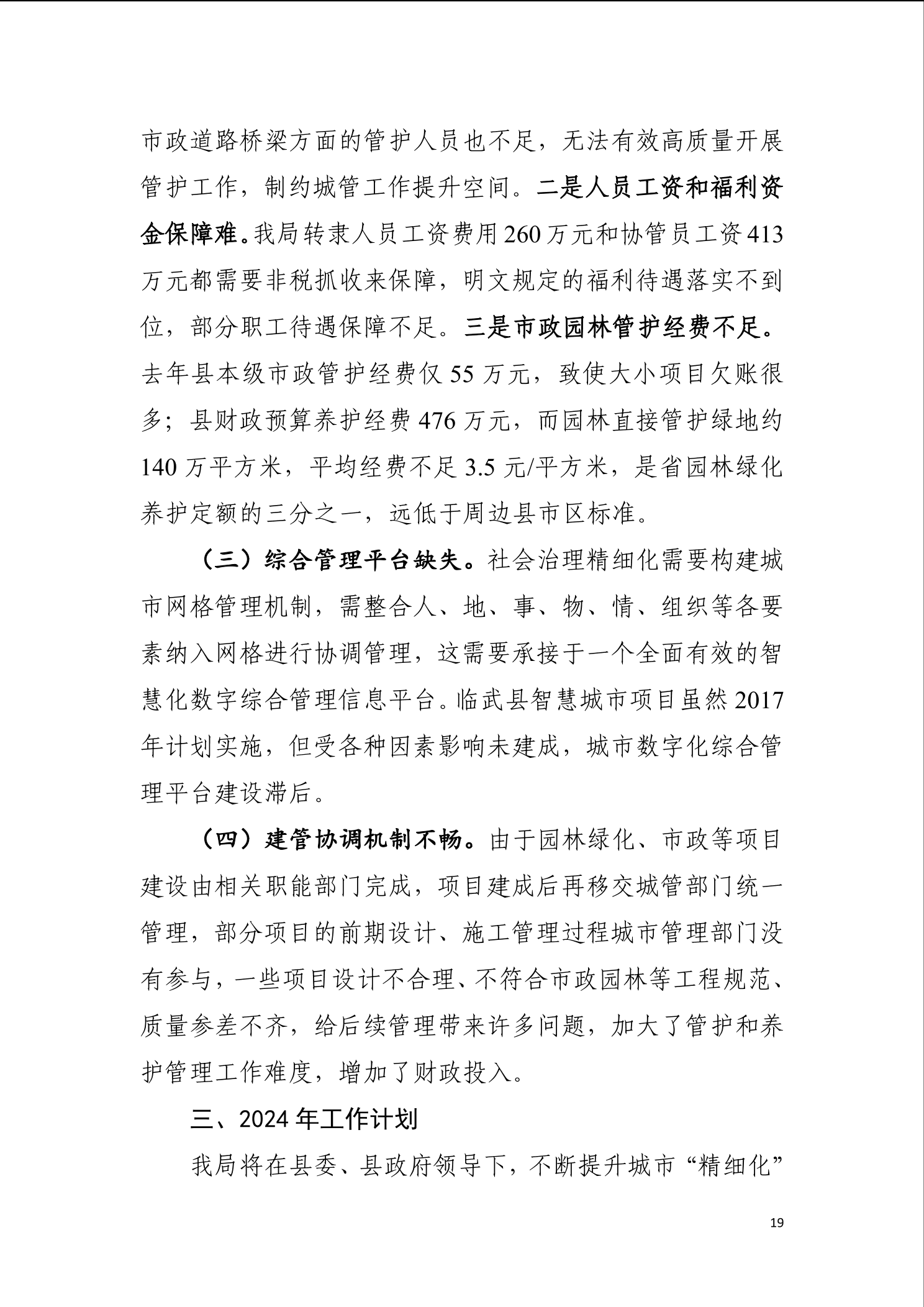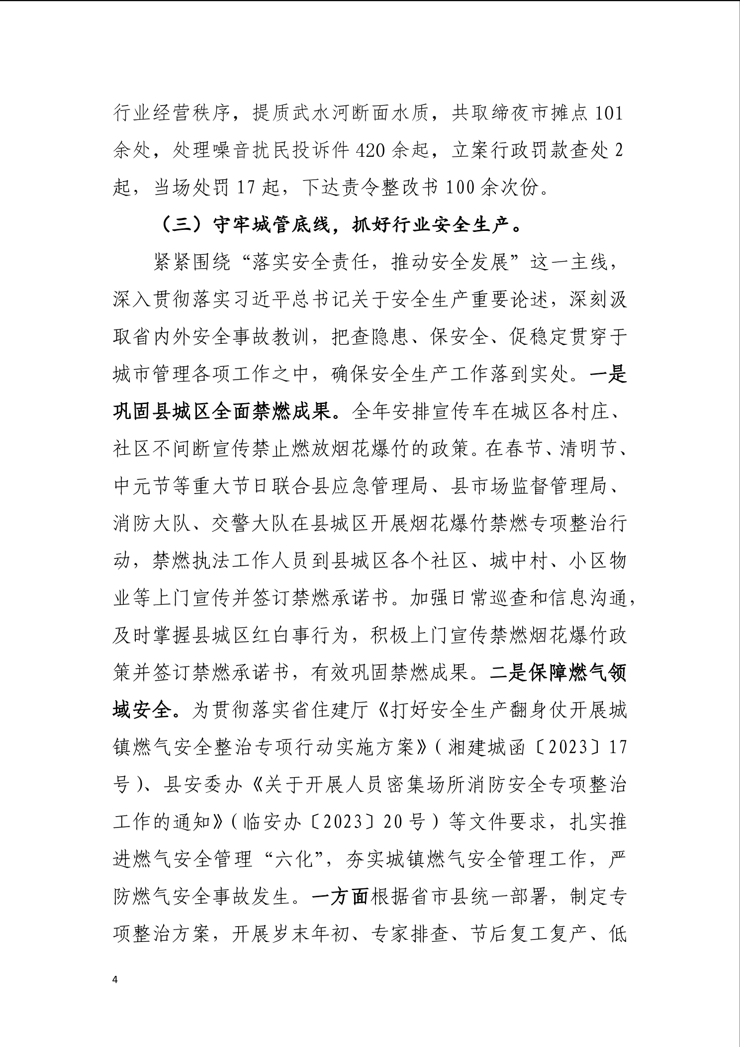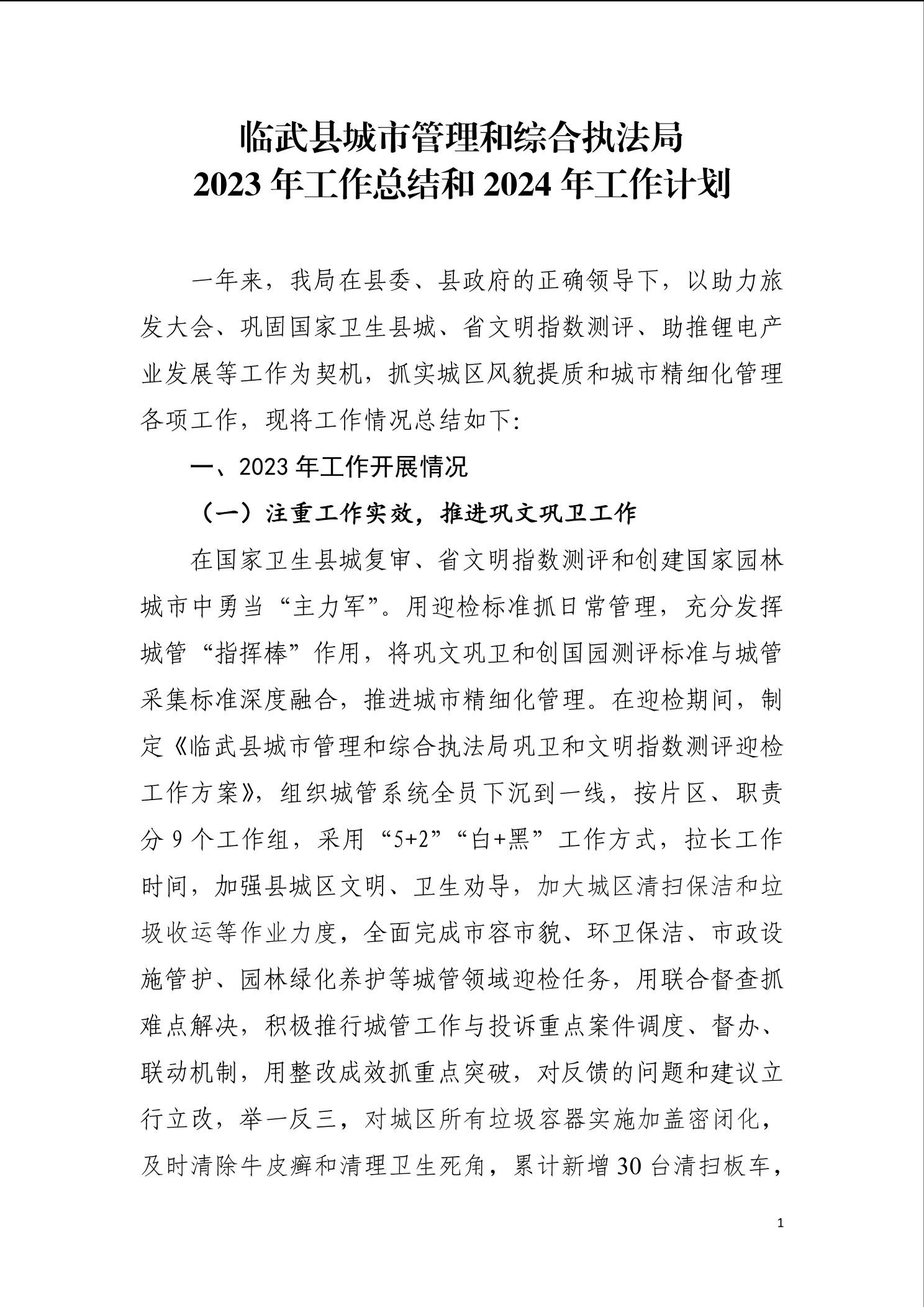 临武县城市管理和综合执法局2023年工作总结和2024年工作计划