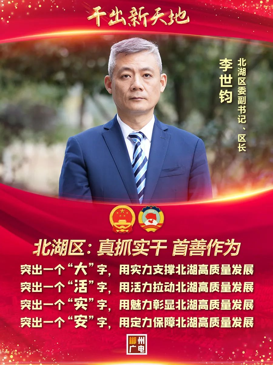 北湖区委副书记、区长 李世钧:以经济体制改革为牵引,推动国企改革、“区区合一”等一批改革事项落地见效。统筹推进零基预算改革,确保有限资金用在发展紧要处、民生急需上。一以贯之推进工业强区,一如既往推进文旅融合,一刻不停提高投资效益,一心为民建设新型城镇,一抓到底推进乡村振兴,推动全区各项事业再上新台阶。