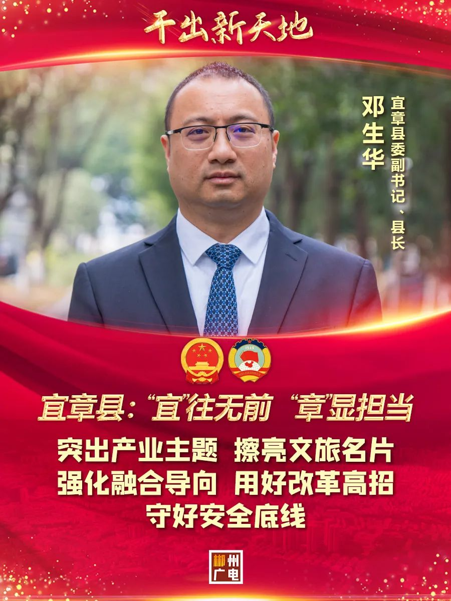 宜章县委副书记、县长 邓生华:加快构建“1+2”现代化产业体系,做大做强氟锂新材料、光电显示两大新型产业,做优做精以脐橙为龙头的特色优势产业。以办好2025年郴州旅游发展大会为抓手,推进建设一批文旅重点项目,扎实推进以县城为载体的新型城镇化,做好巩固拓展脱贫攻坚成果后半篇文章。坚持以改革破题开路,推进改革攻坚,全力维护社会稳定,以新安全格局保障新发展格局。