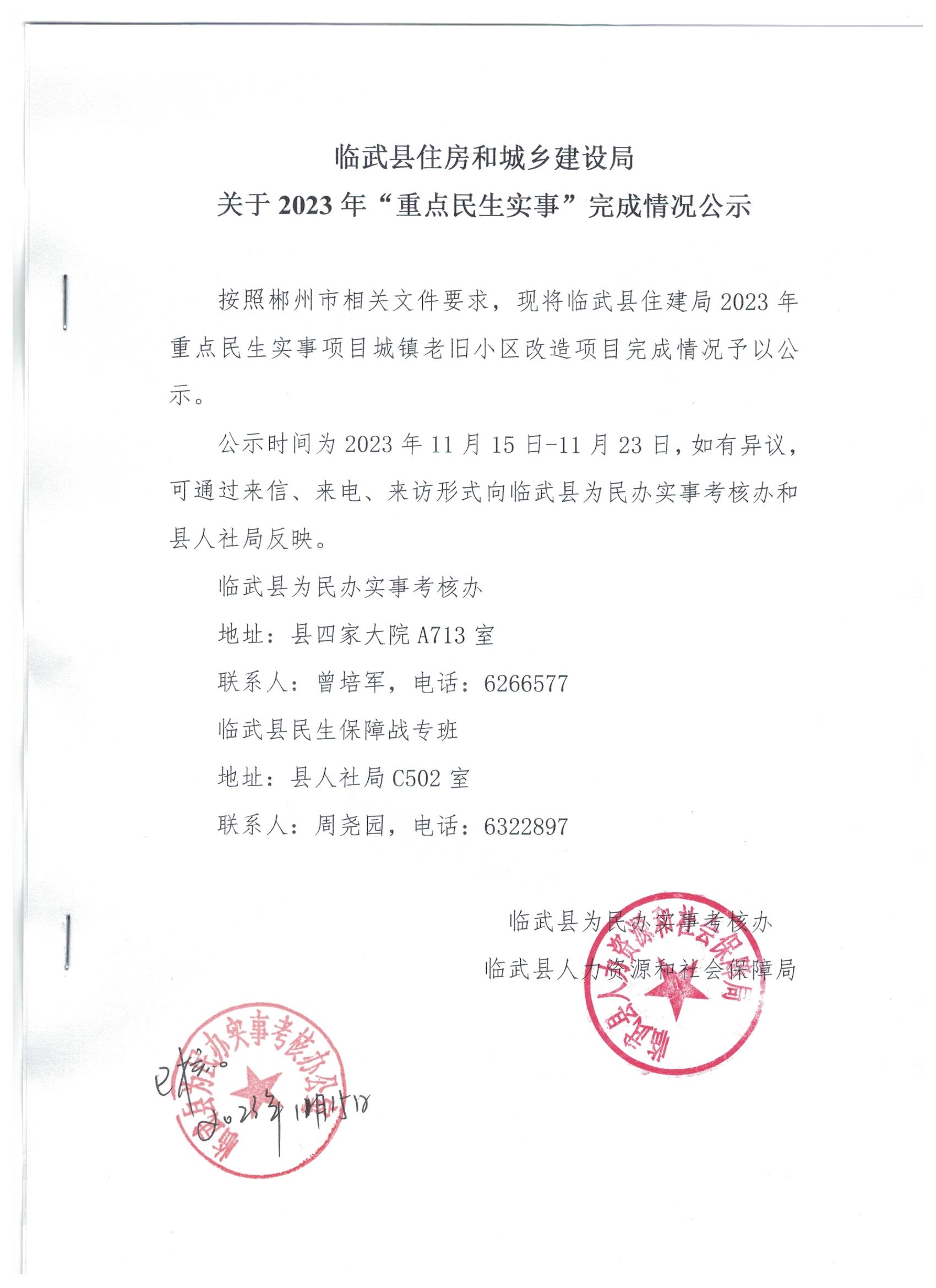 关于2023年“重点民生实事”完成情况公示