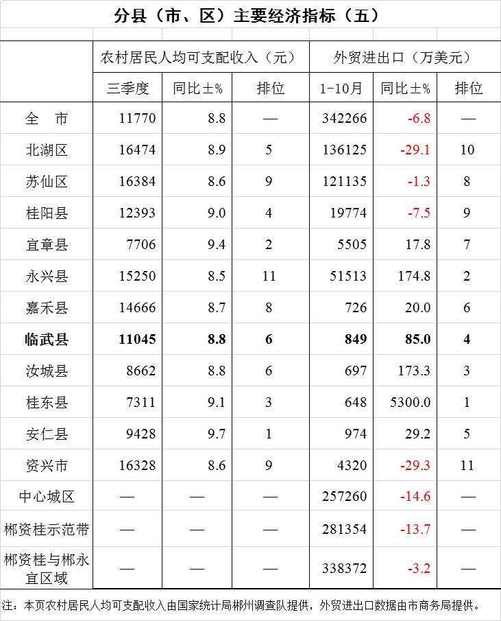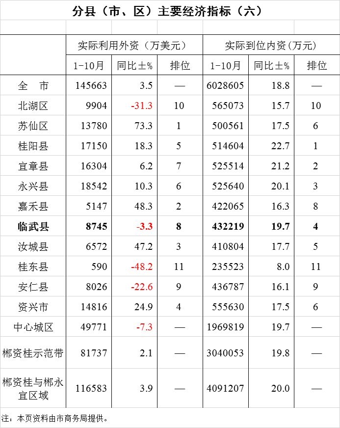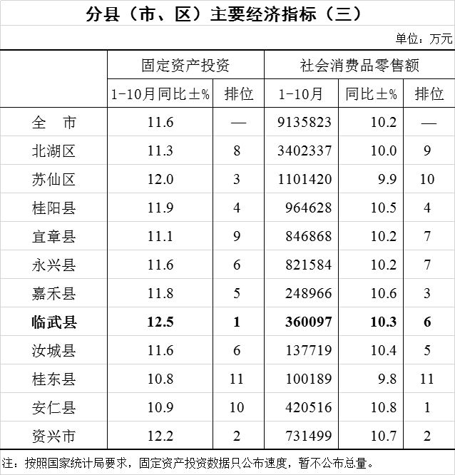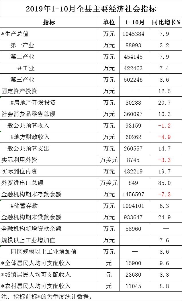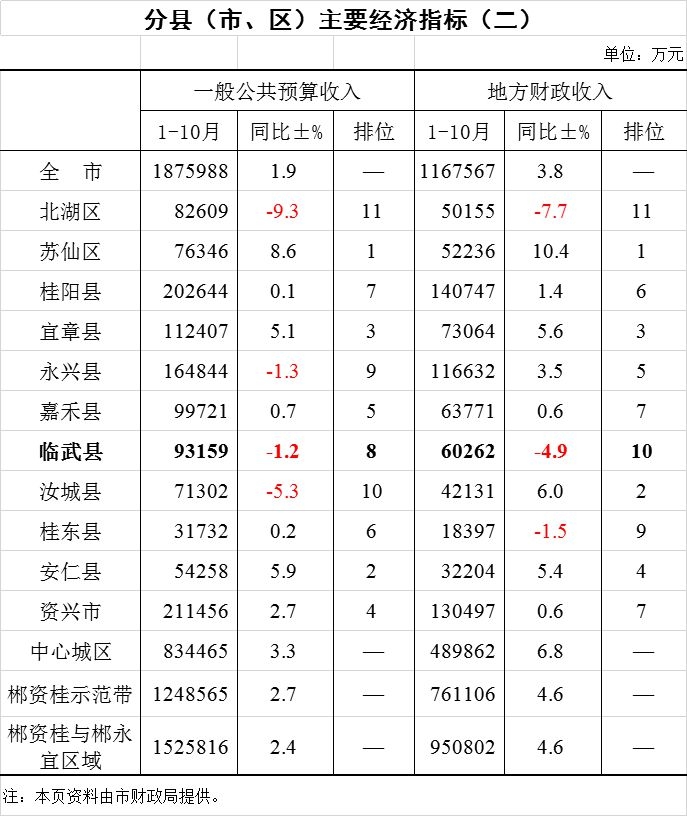 2019年临武县1-10月份统计月报