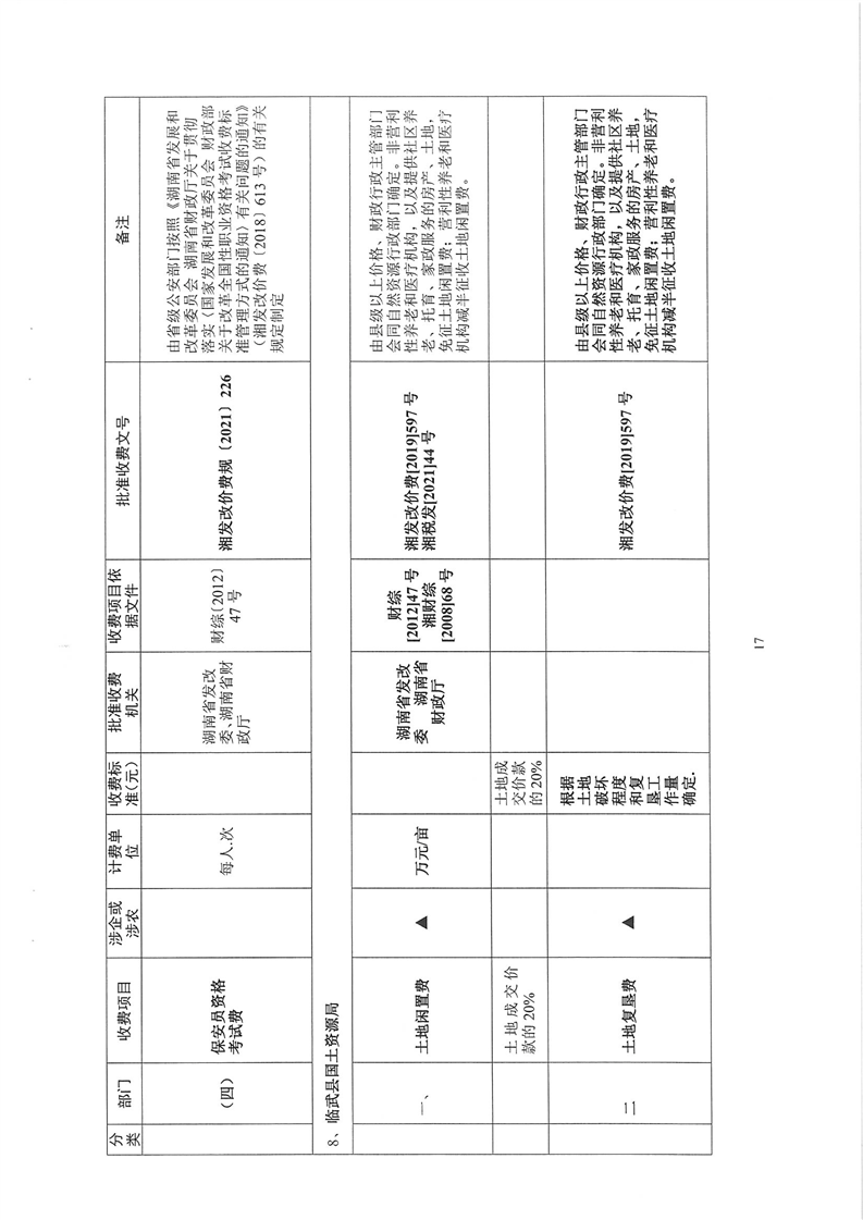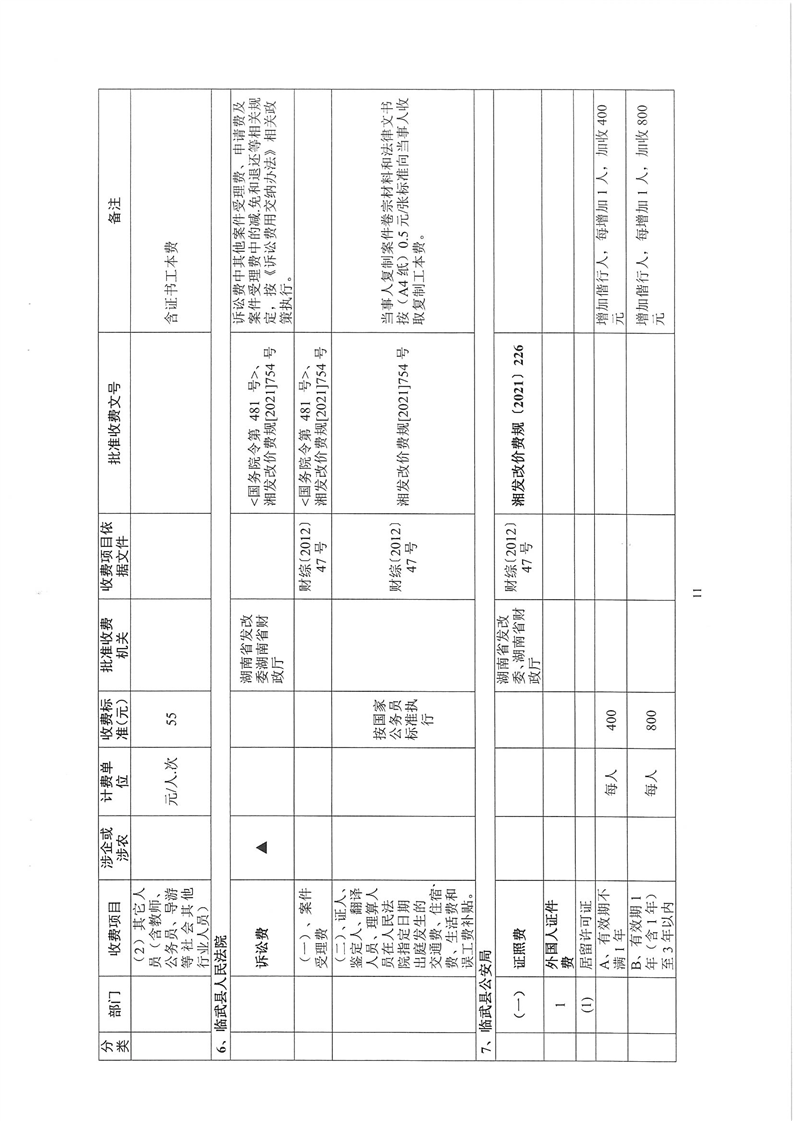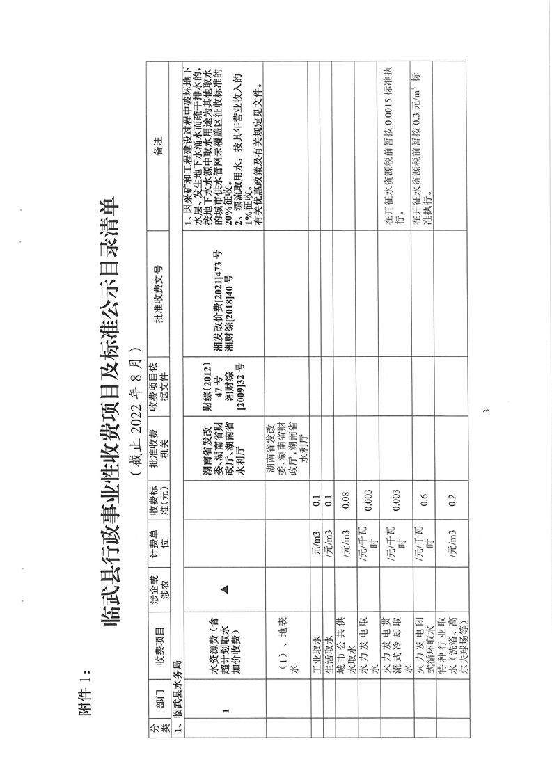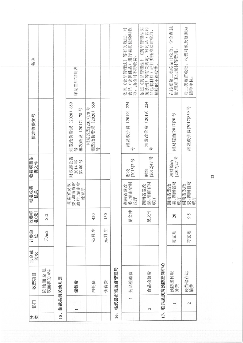 关于2022年临武县行政事业性收费标准和涉企行政事业性收费标准目录清单的通告