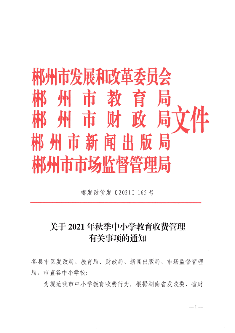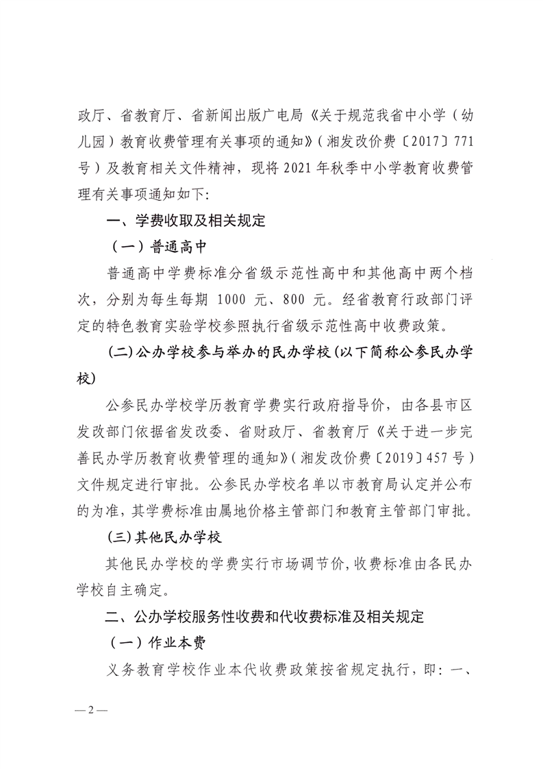 关于2021年秋季中小学教育收费管理有关事项的通知
