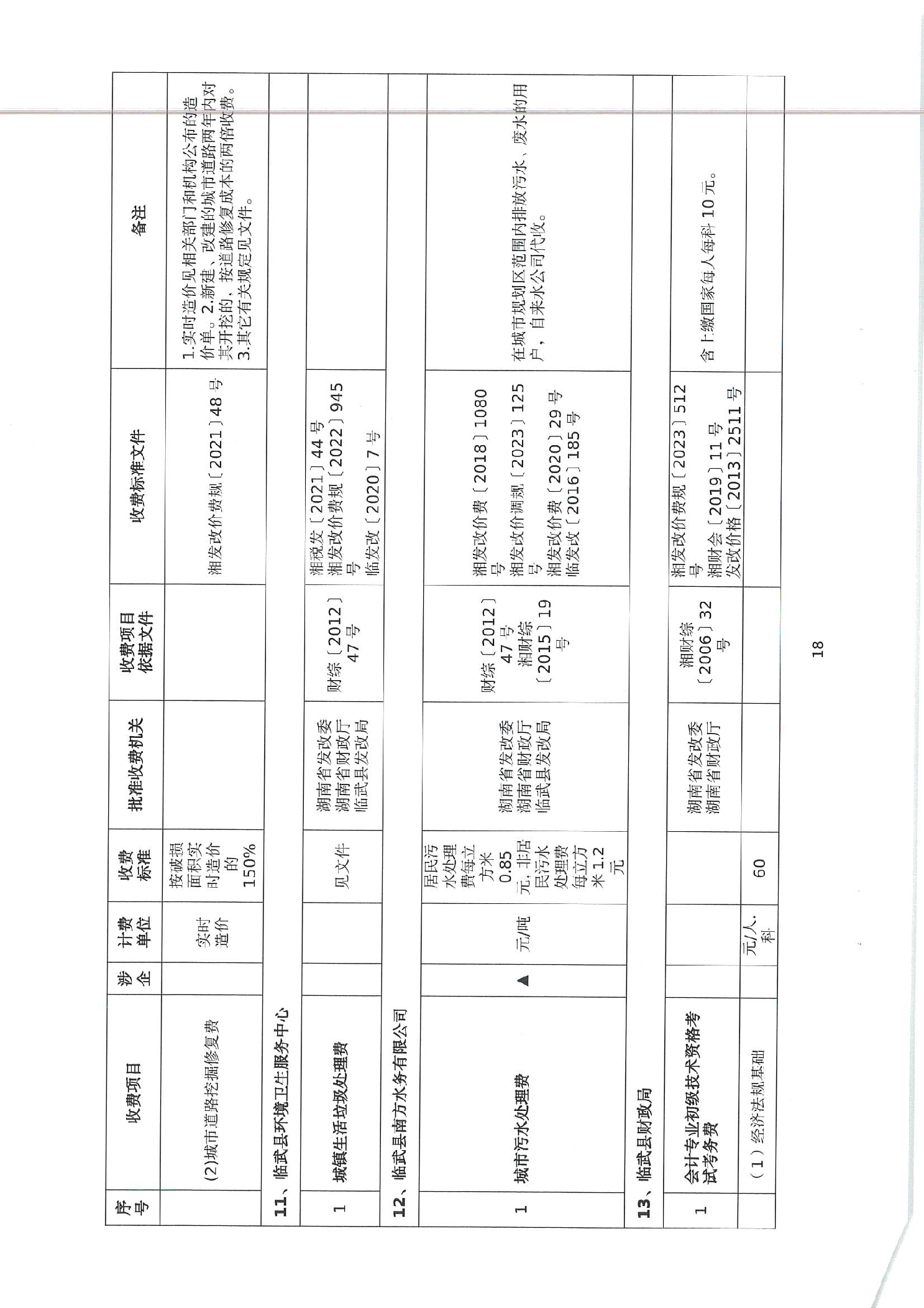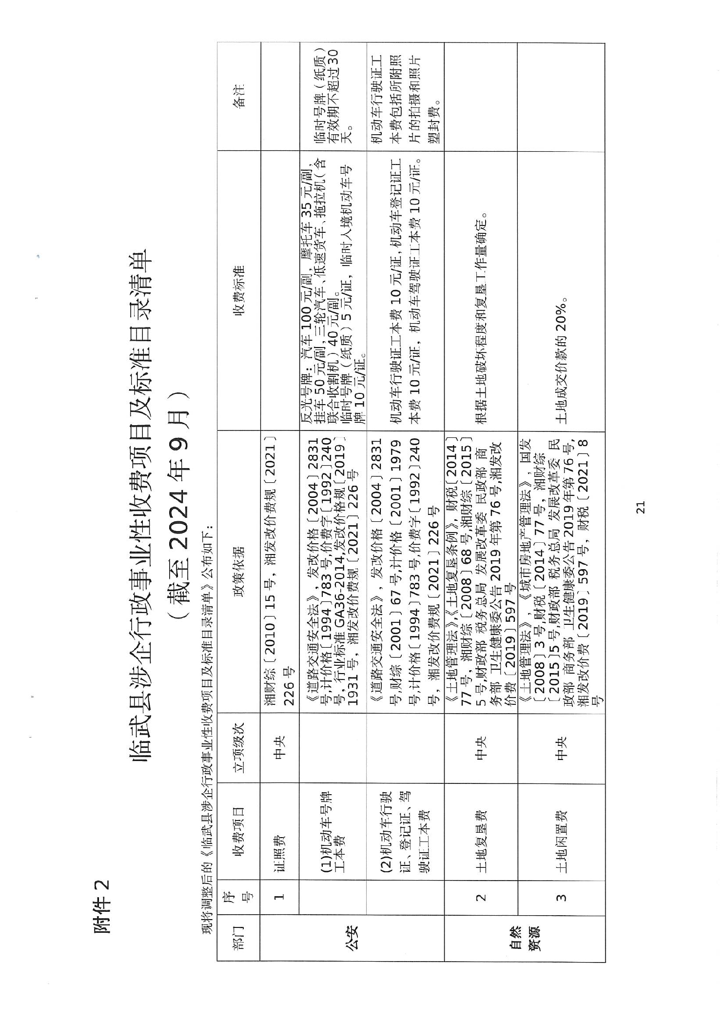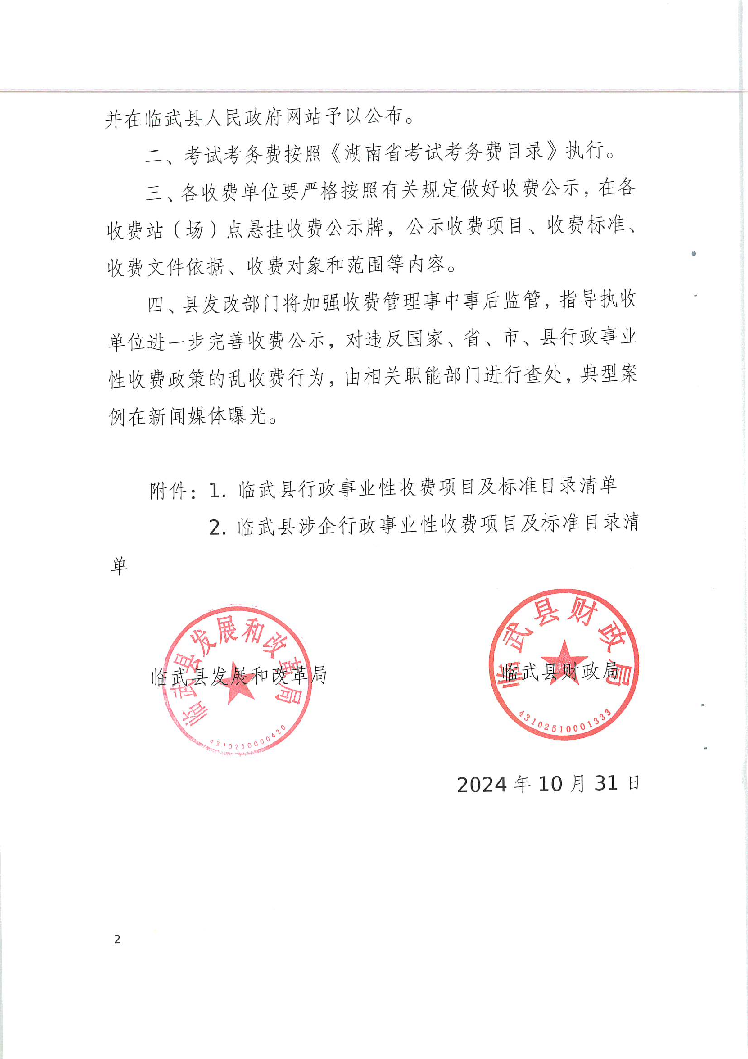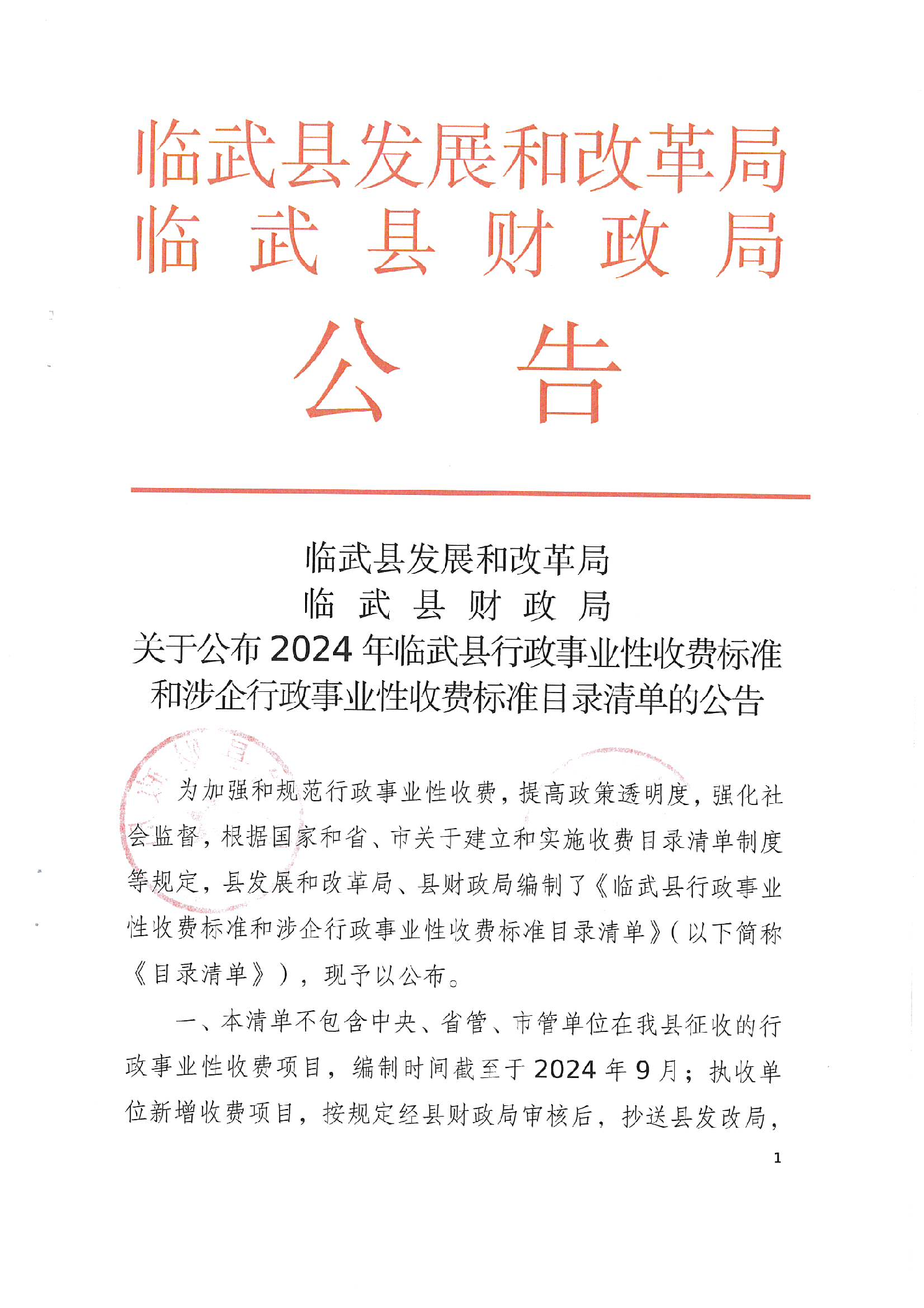 关于公布2024年临武县行政事业性收费标准和涉企行政事业性收费标准目录清单的公告