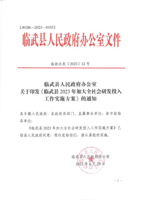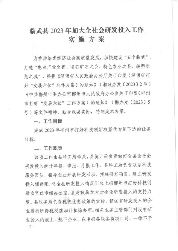 临武县人民政府办公室关于印发《临武县2023年加大全社会研发投入工作实施方案》的通知