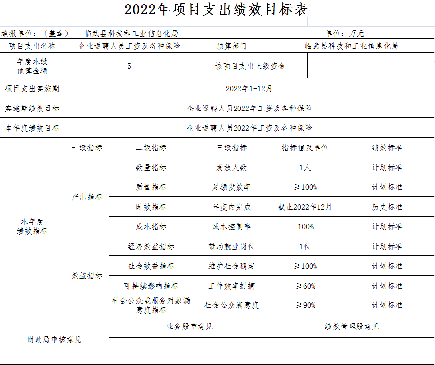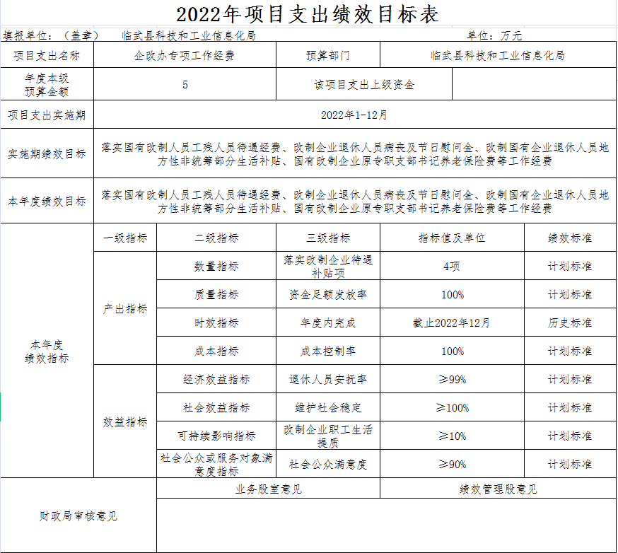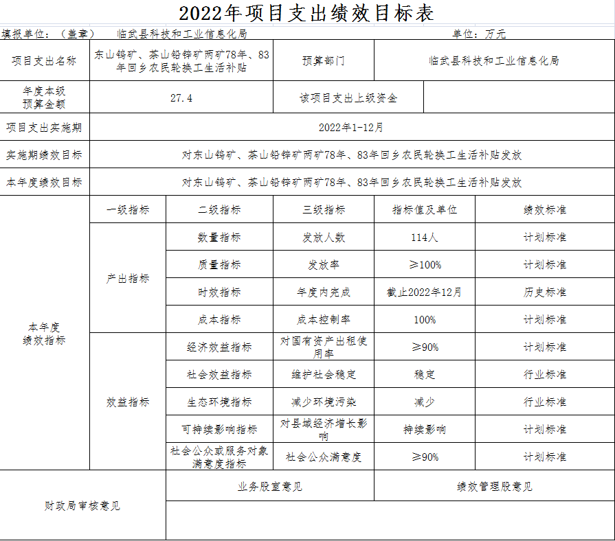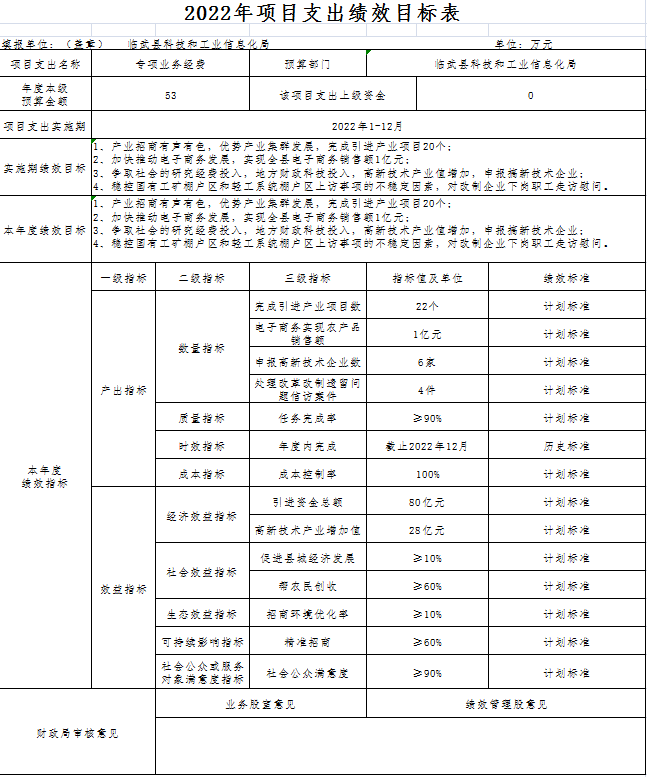 2022年临武县科技和工业信息化局预算绩效目标表.xls