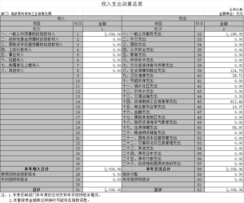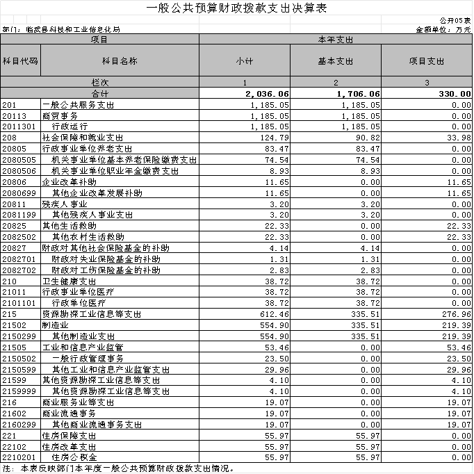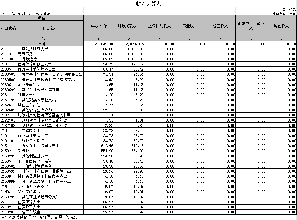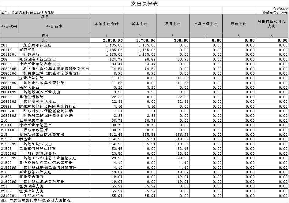 第二部分2022年度临武县科技和工业信息化局部门决算表