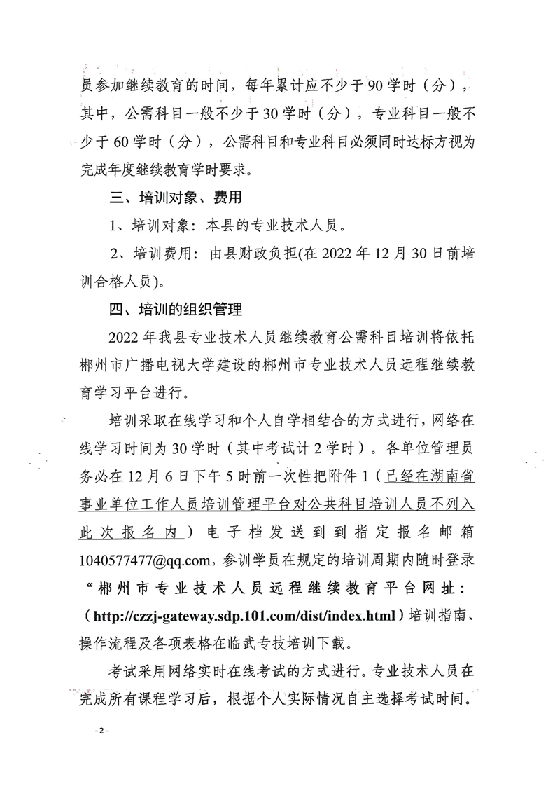 关于做好2022年临武县专业技术人员继续教育有关工作的通知