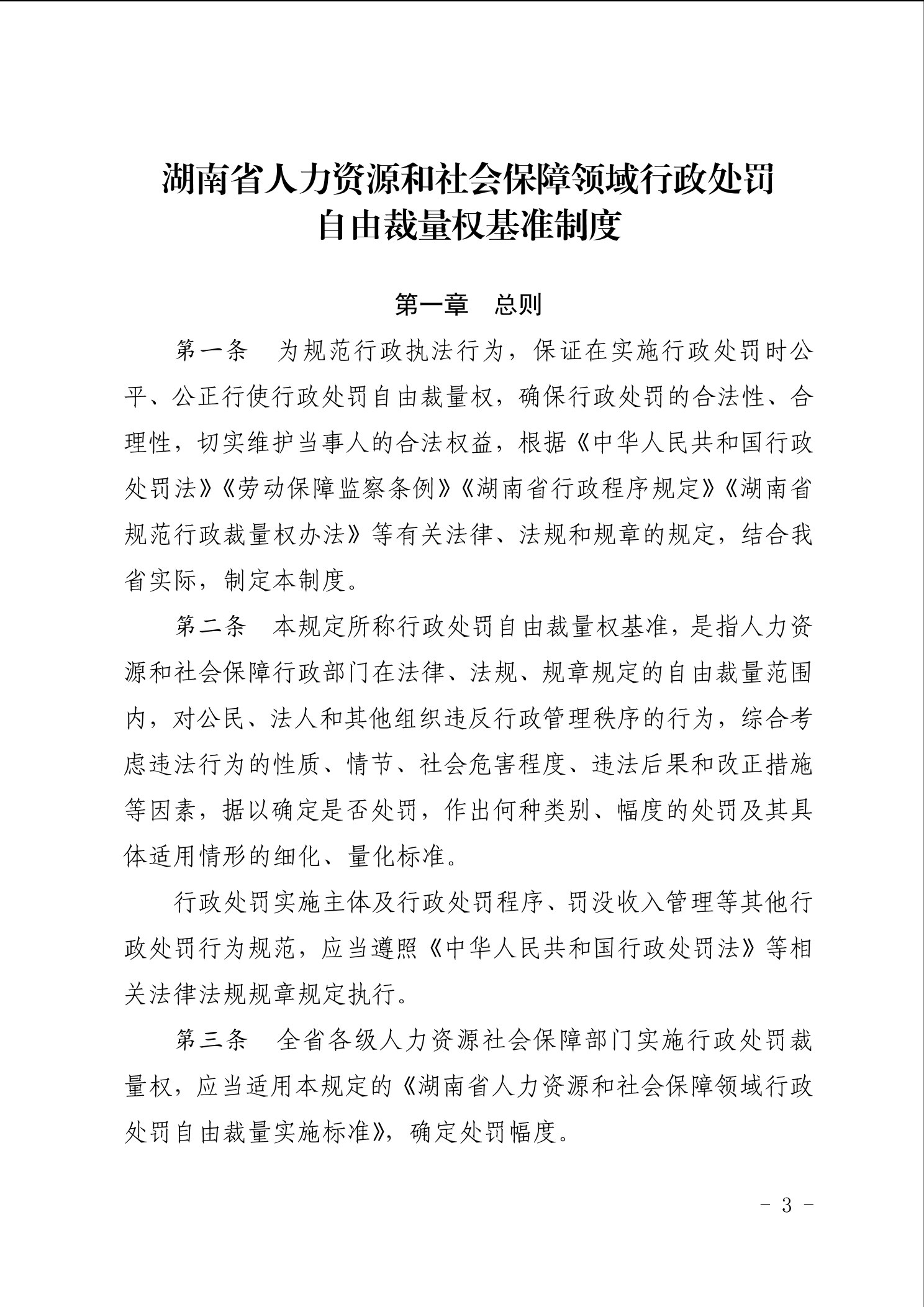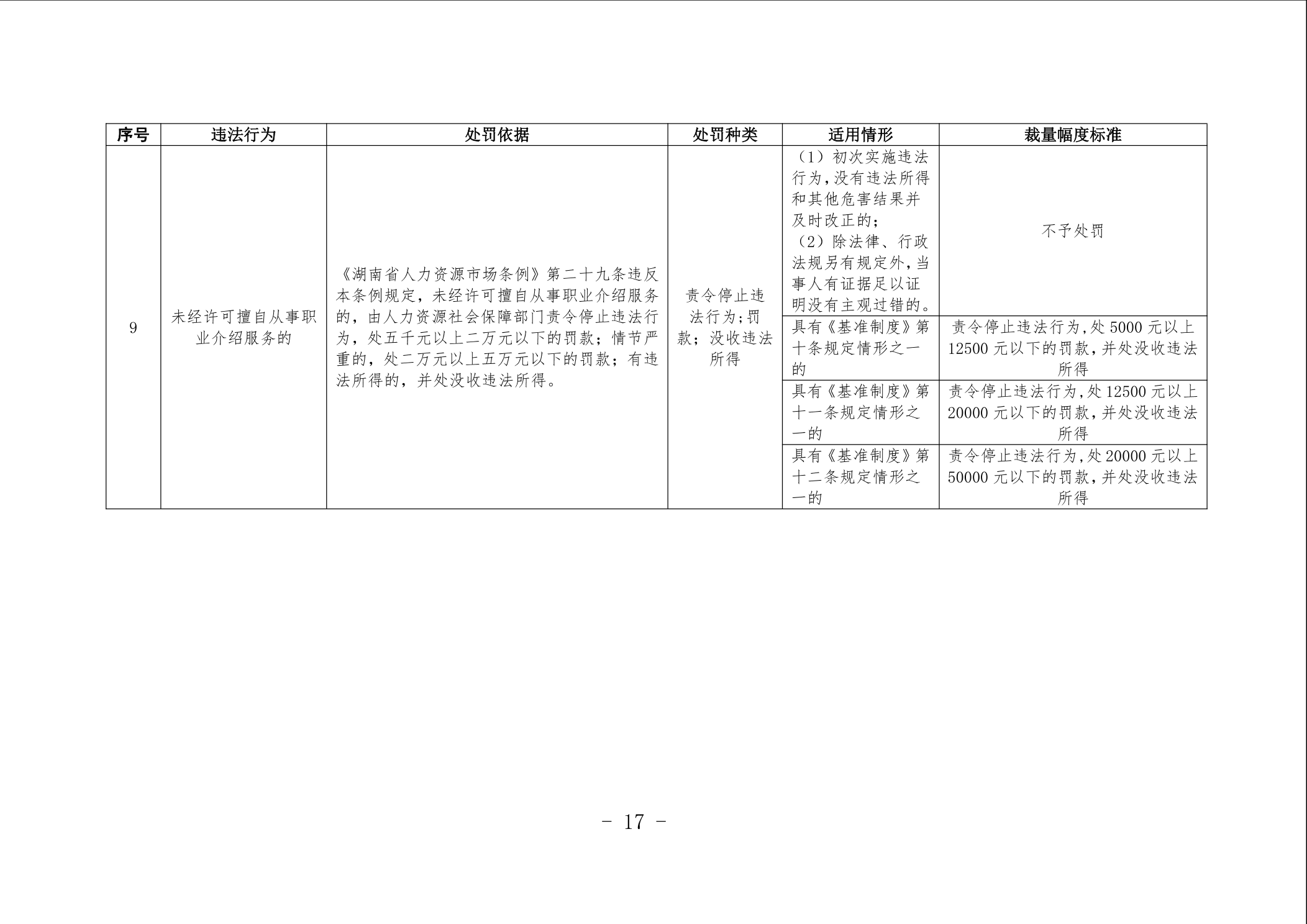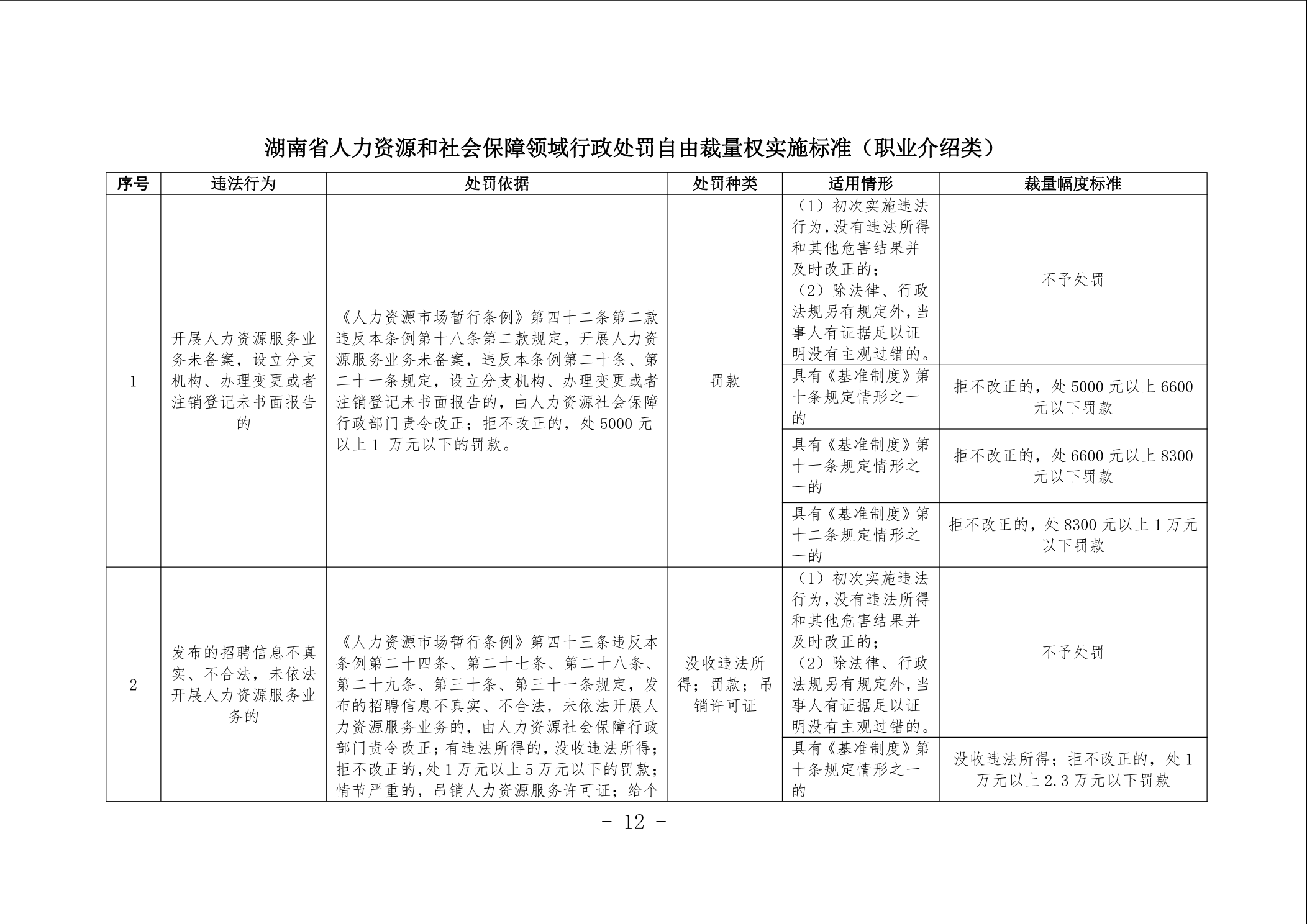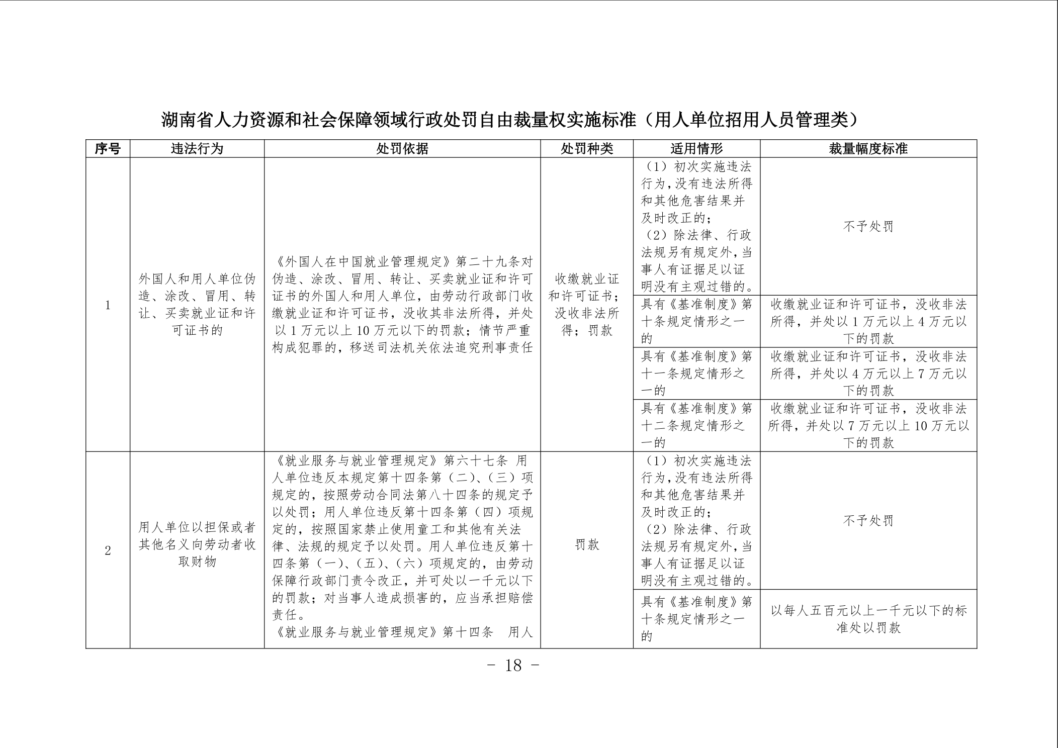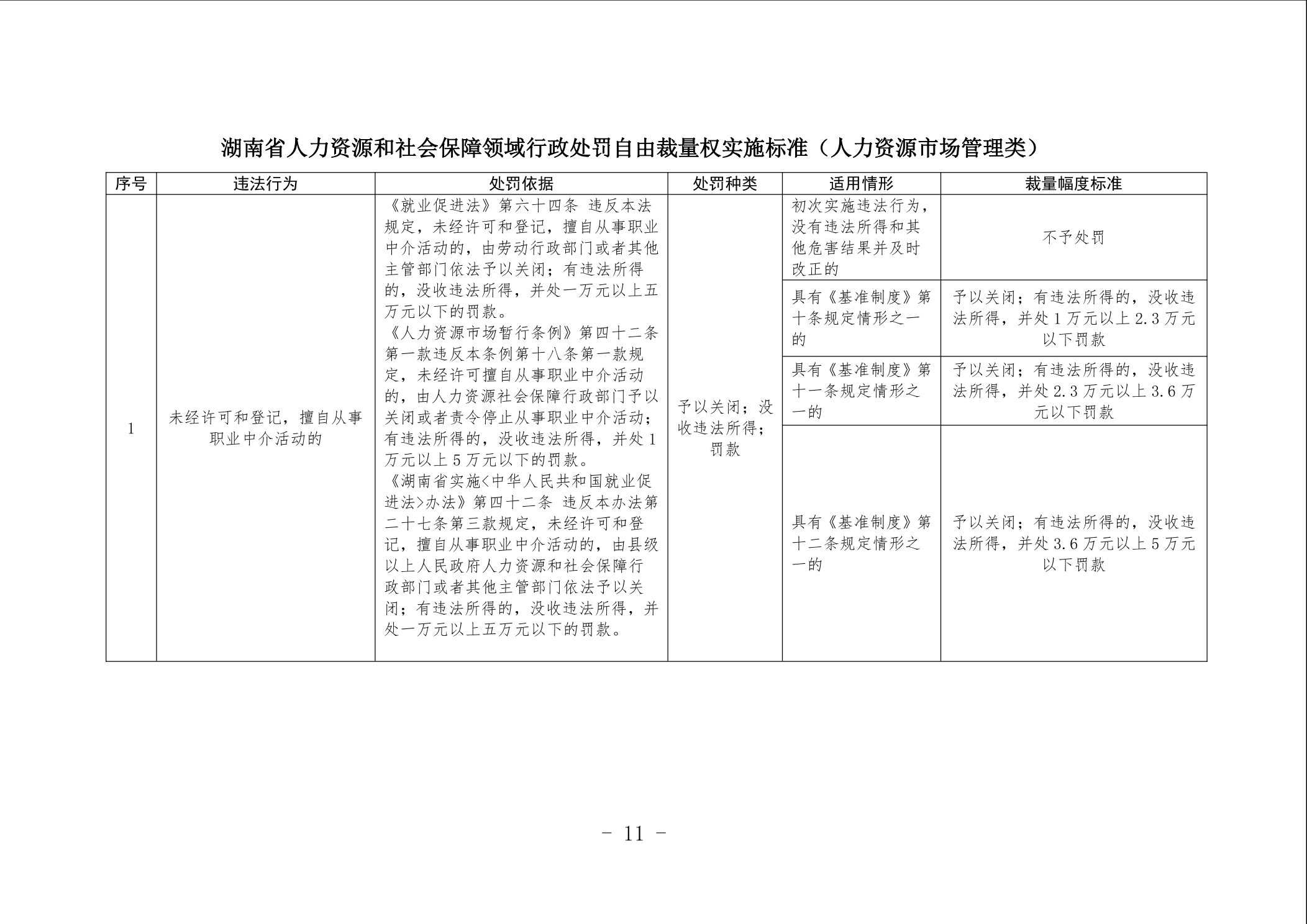 关于印发《湖南省人力资源和社会保障领域行政处罚自由裁量权基准制度》和《湖南省 人力资源和社会保障领域行政处罚自由裁量权实施标准》的通知