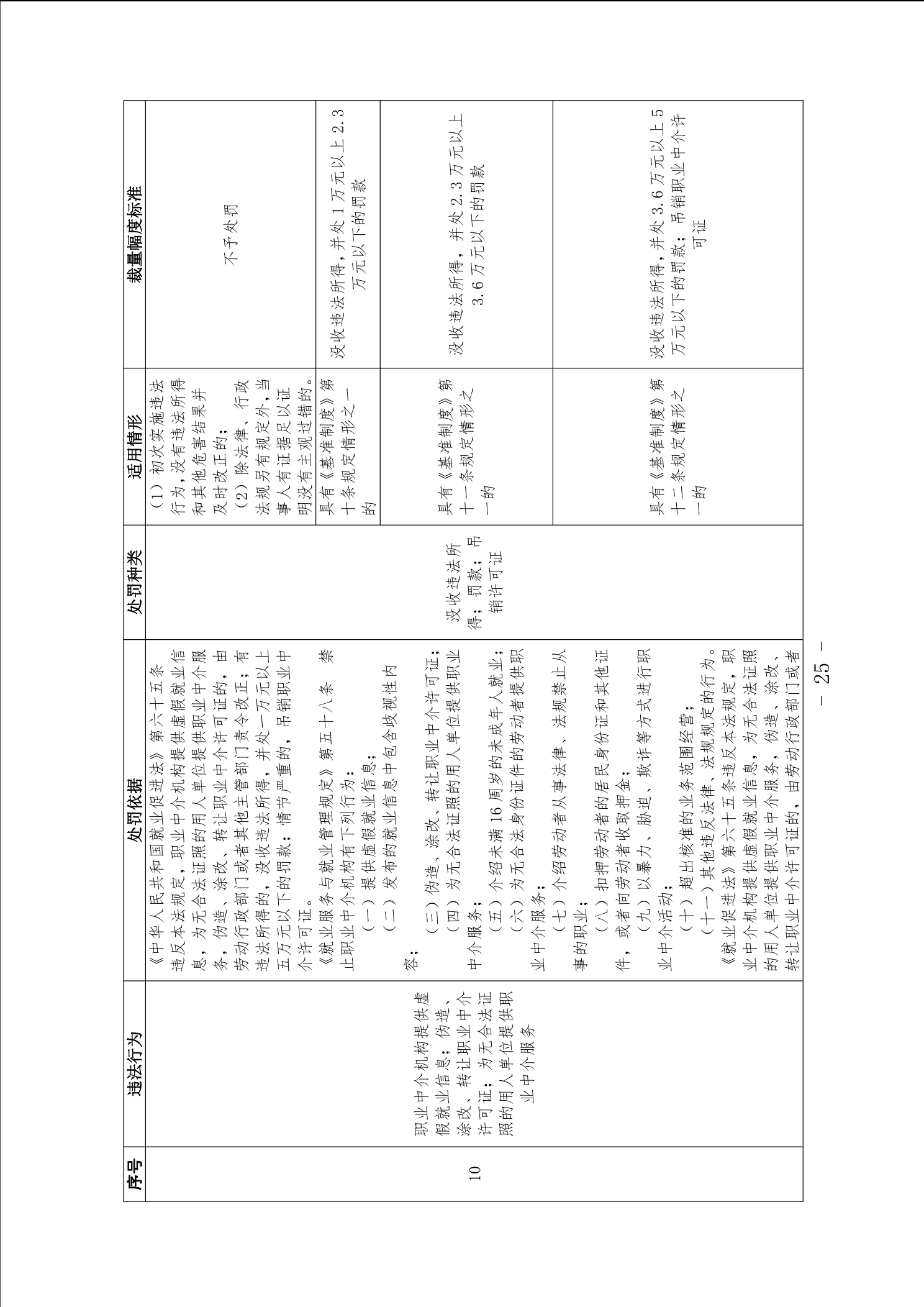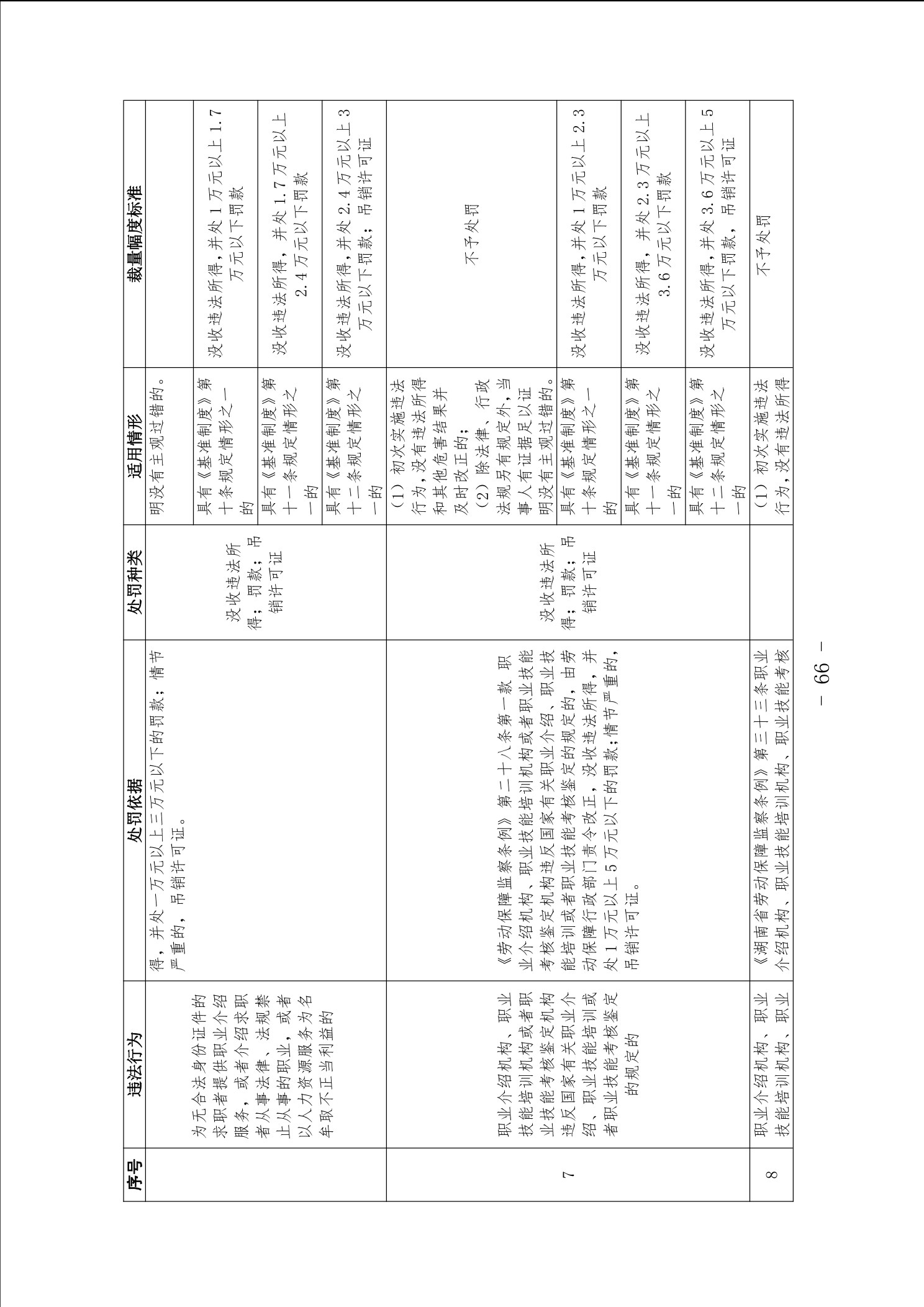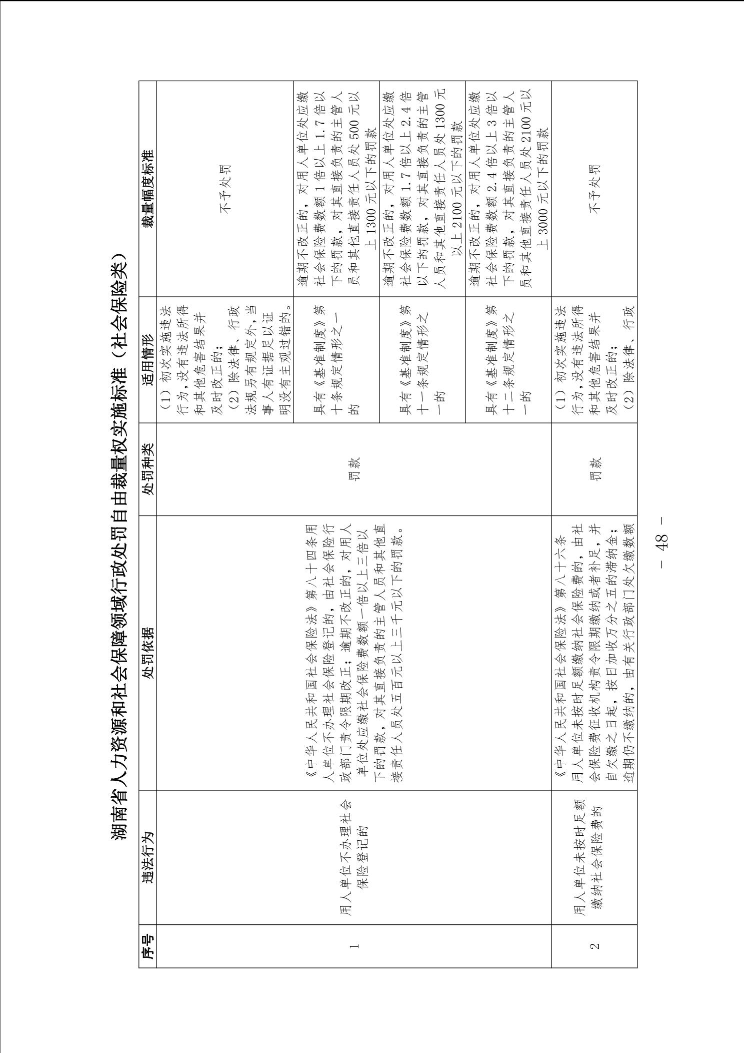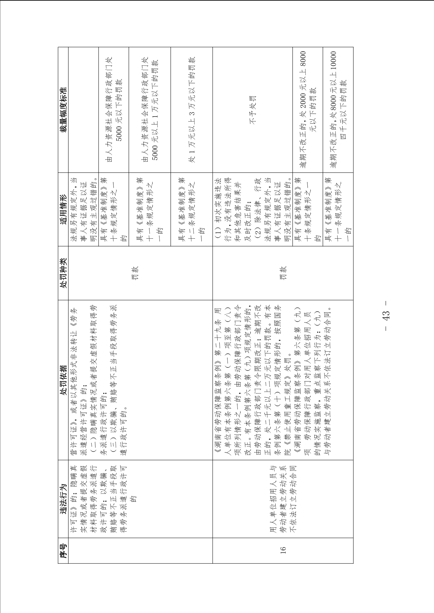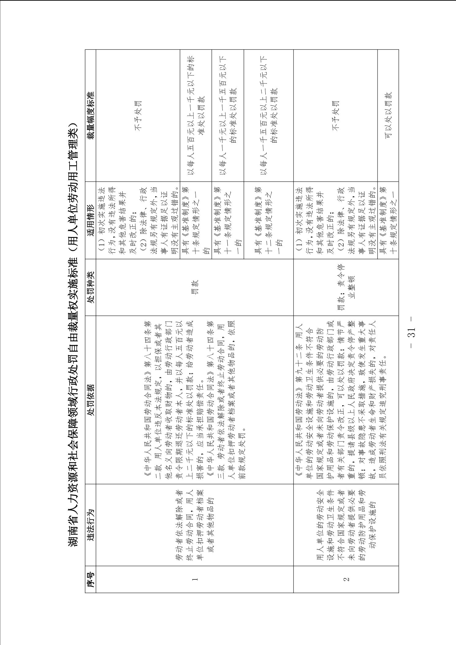 关于印发《湖南省人力资源和社会保障领域行政处罚自由裁量权基准制度》和《湖南省 人力资源和社会保障领域行政处罚自由裁量权实施标准》的通知