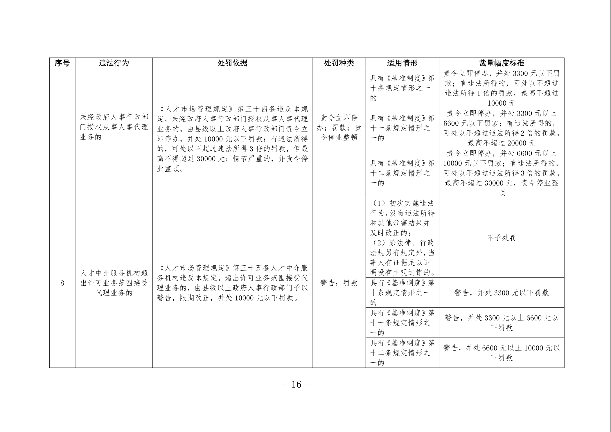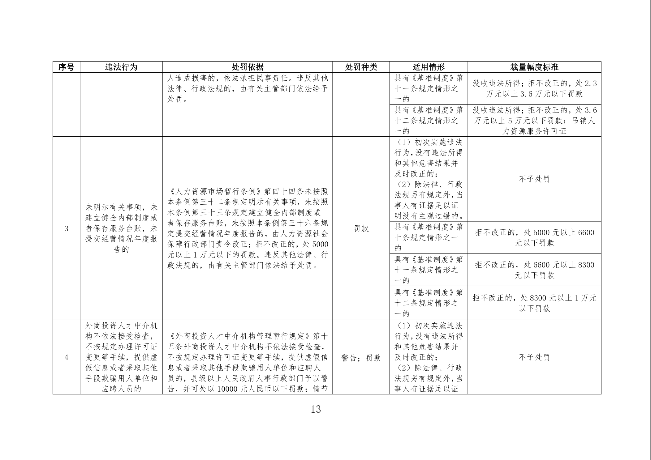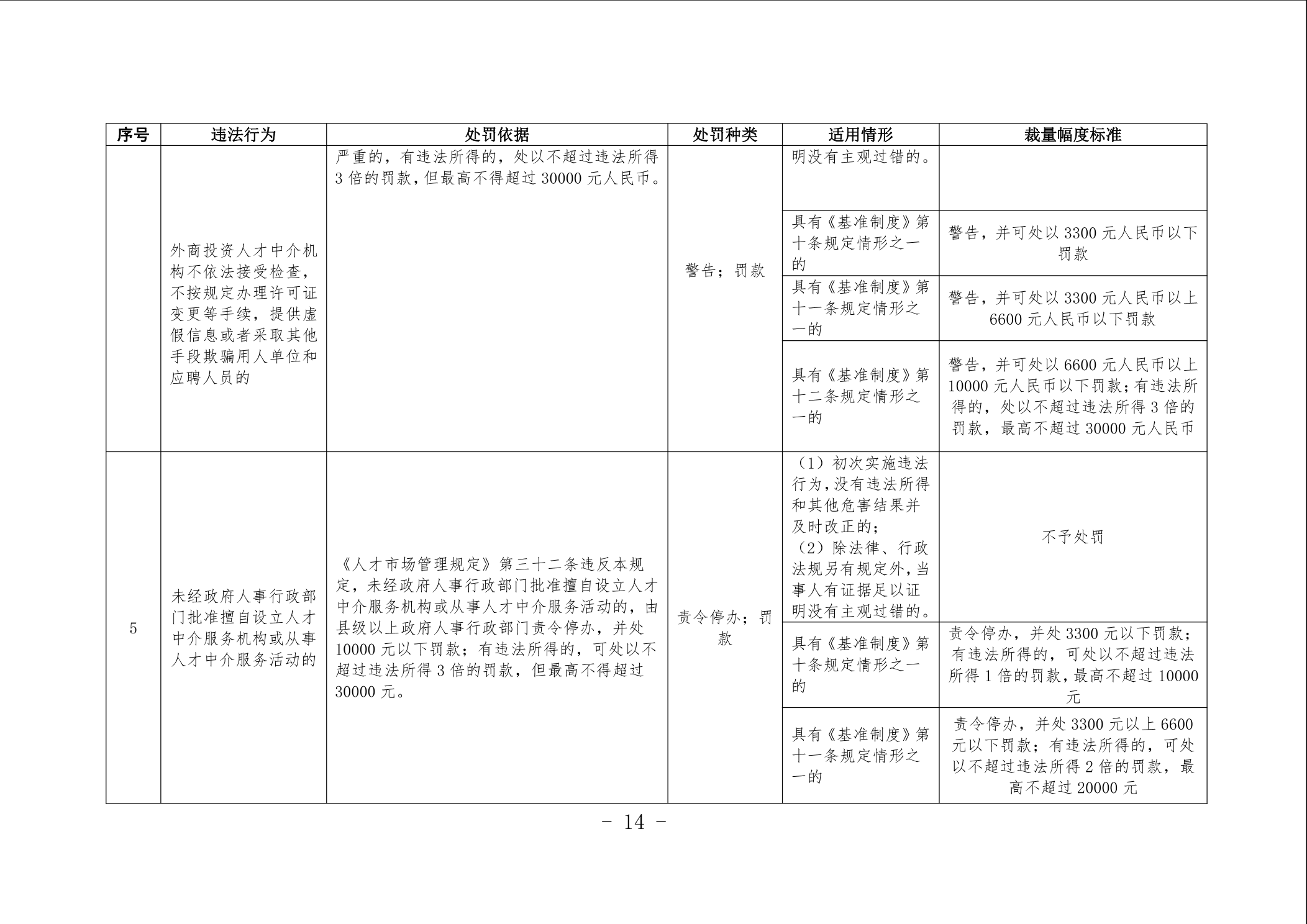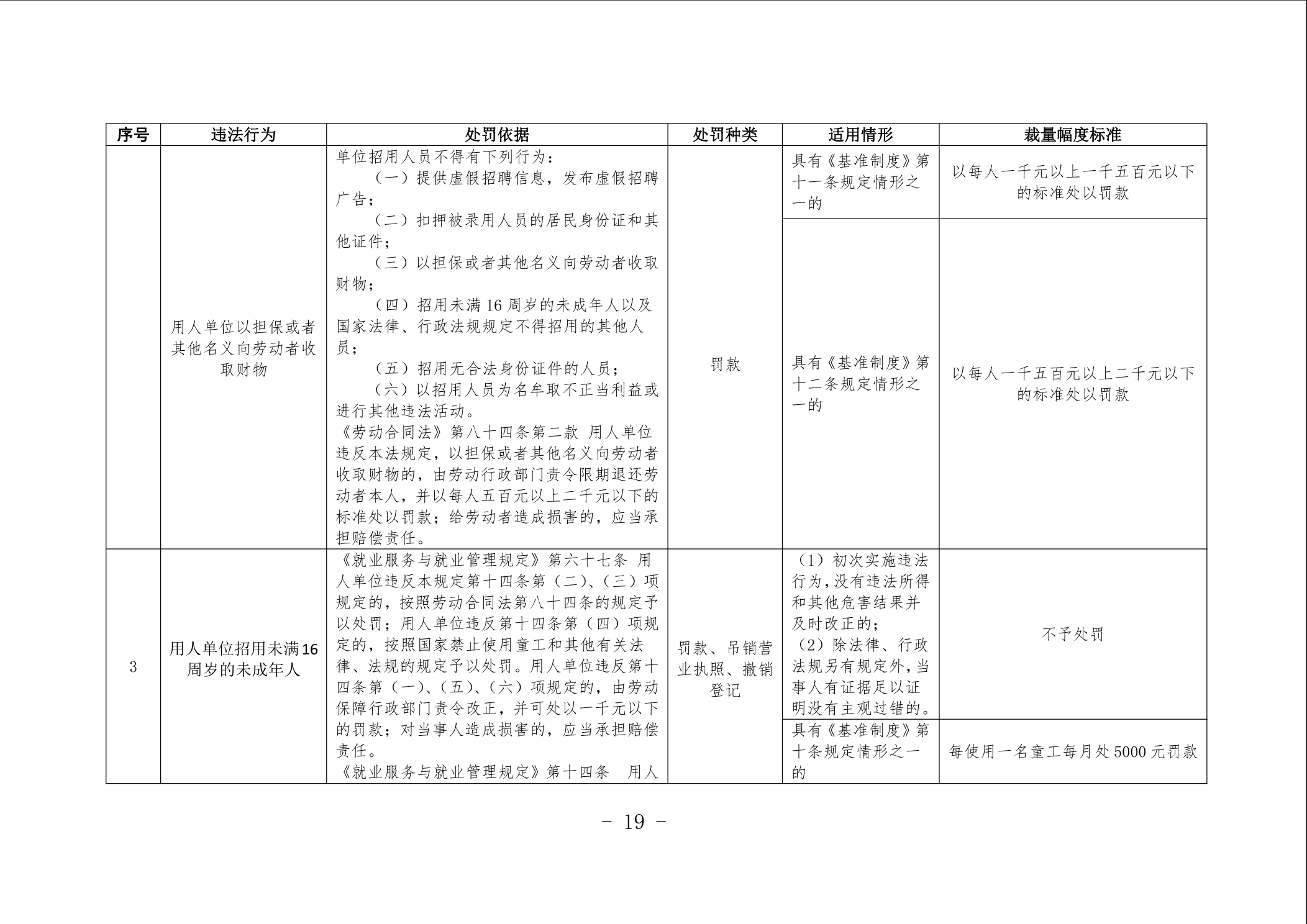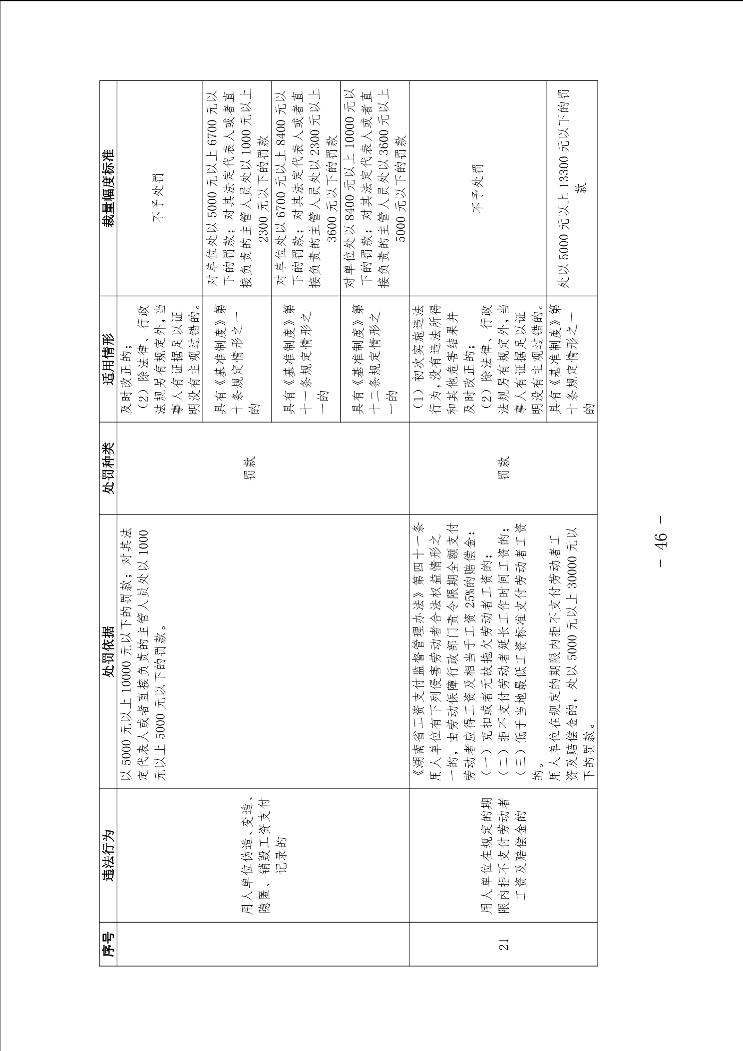 关于印发《湖南省人力资源和社会保障领域行政处罚自由裁量权基准制度》和《湖南省 人力资源和社会保障领域行政处罚自由裁量权实施标准》的通知