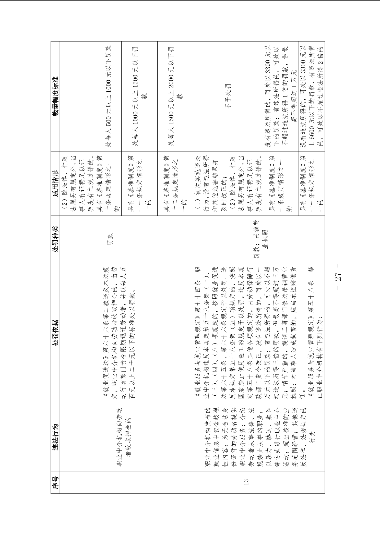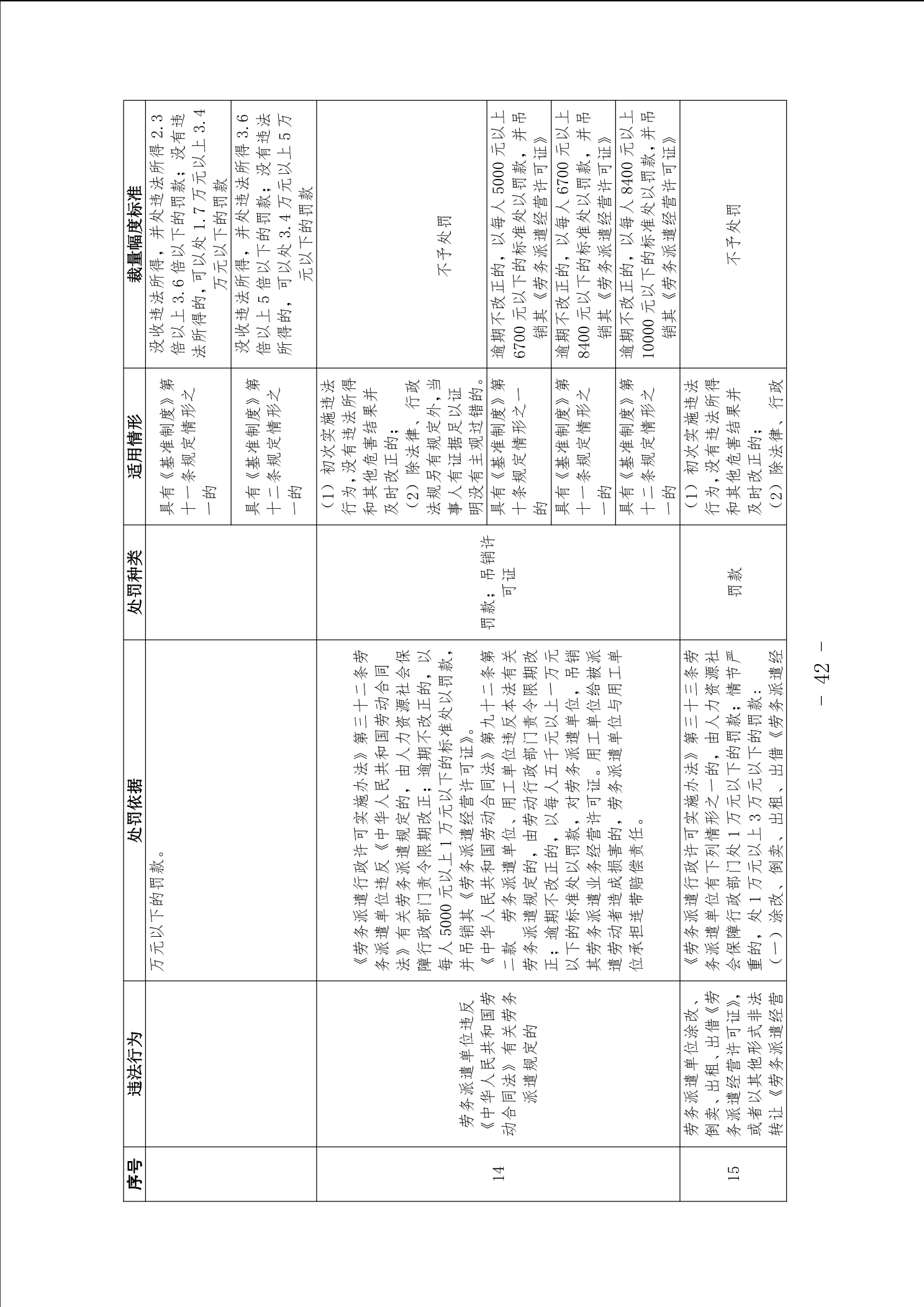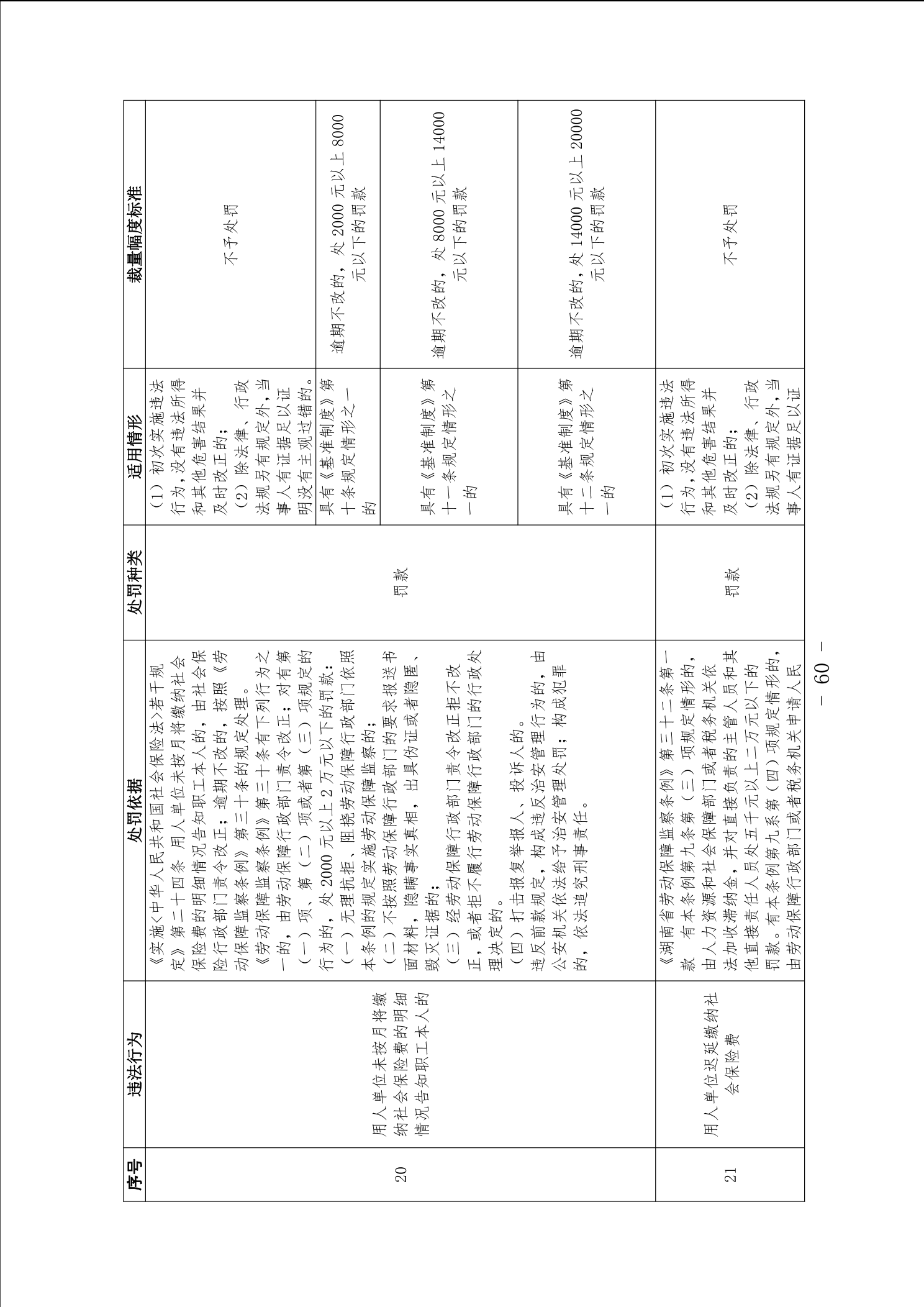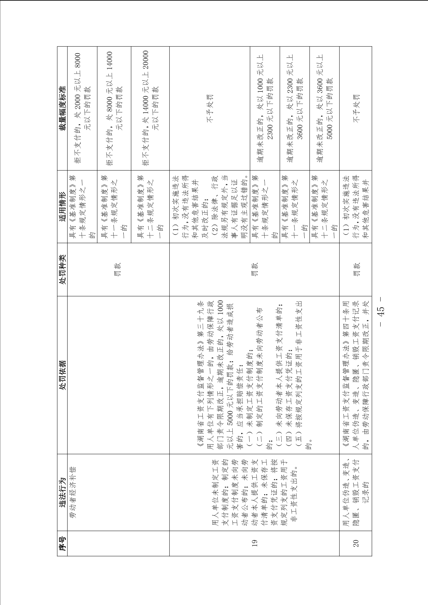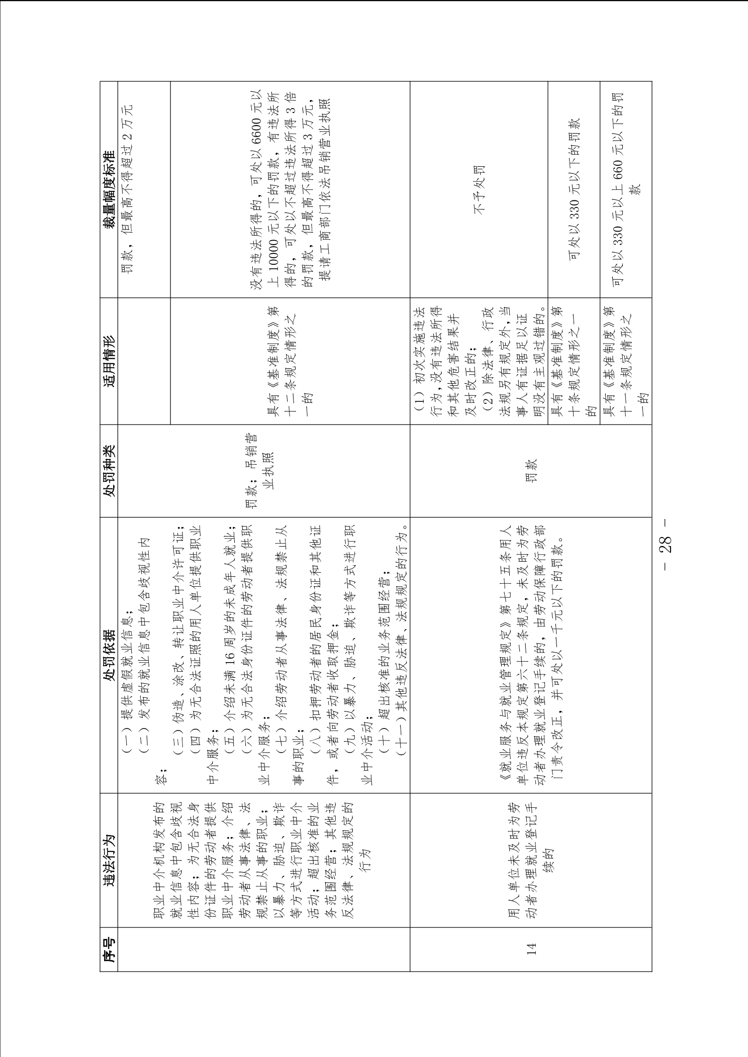 关于印发《湖南省人力资源和社会保障领域行政处罚自由裁量权基准制度》和《湖南省 人力资源和社会保障领域行政处罚自由裁量权实施标准》的通知