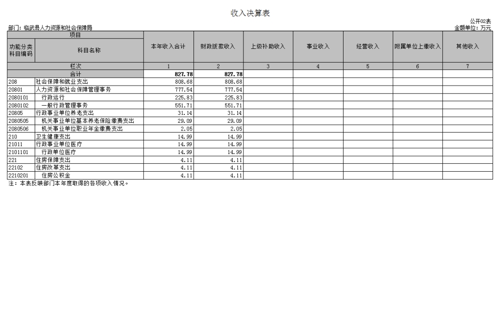 本年收入合计827.78万元,其中:财政拨款收入827.78万元,占100%;上级补助收入0万元,占0%;事业收入0万元,占0%;经营收入0万元,占0%;附属单位上缴收入0万元,占0%;其他收入0万元,占0%。