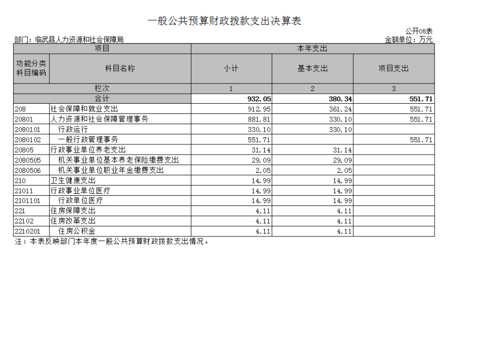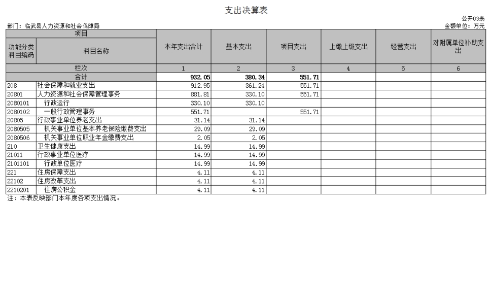 本年支出合计932.05万元,其中:基本支出380.34万元,占40.81%;项目支出551.71万元,占59.19%;上缴上级支出0万元,占0%;经营支出0万元,占0%;对附属单位补助支出0万元,占0%。