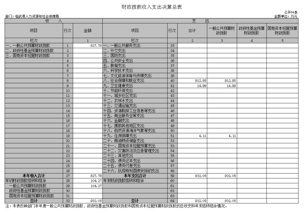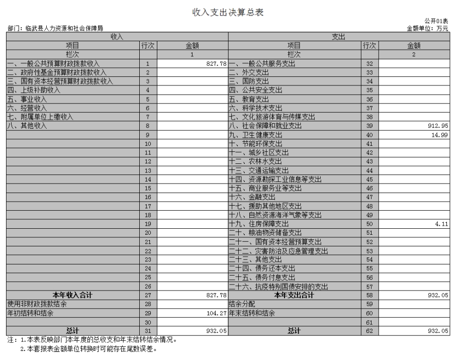 2021年度收入、支出总计932.05万元。与上年相比,收入、支出减少312.27万元,减少25.10%,主要是因为社保、就业等项目经费减少。