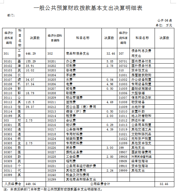 公用经费32.46万元,占基本支出的6.74%,主要包括办公费、印刷费、水费、电费、邮电费、差旅费、维修(护)费、租赁费、培训费、公务接待费、劳务费、工会经费、其他商品和服务支出。