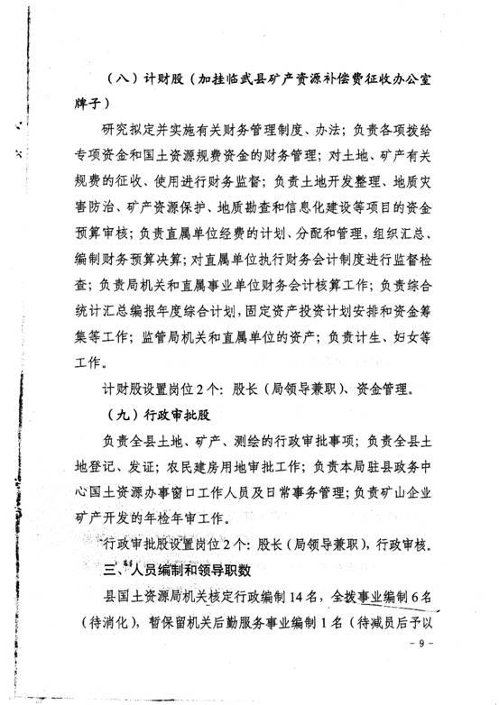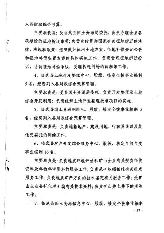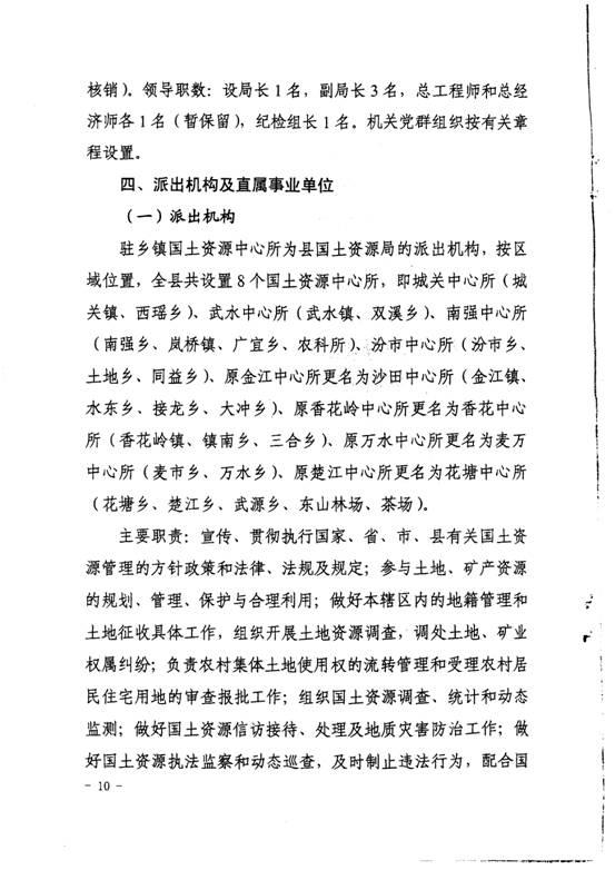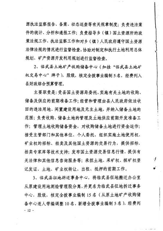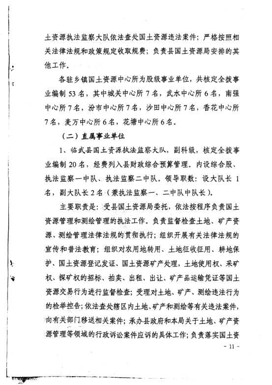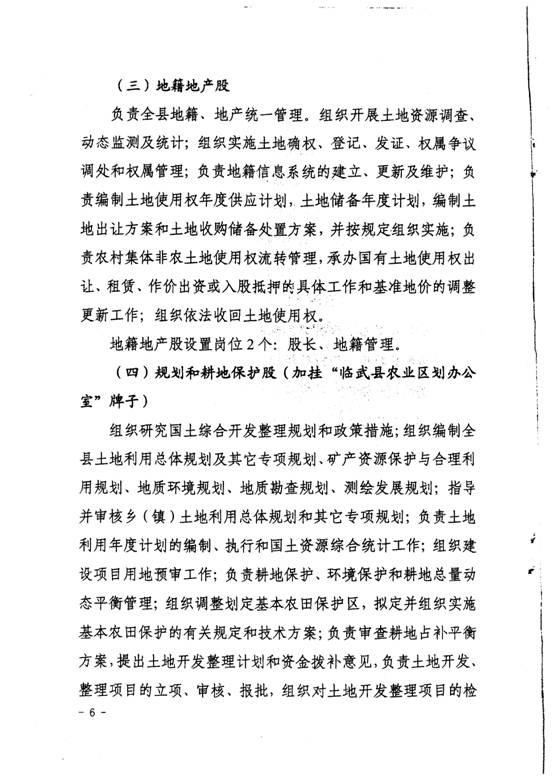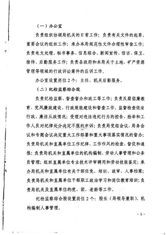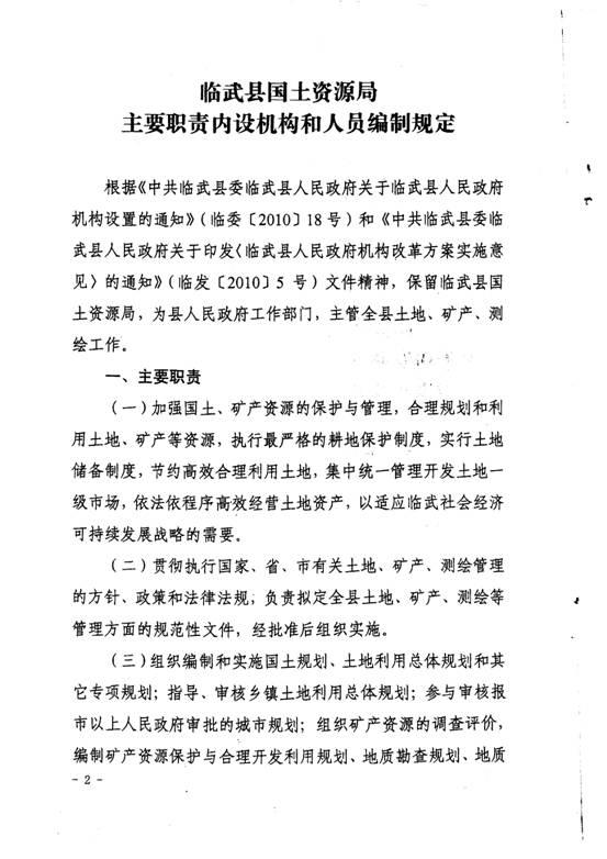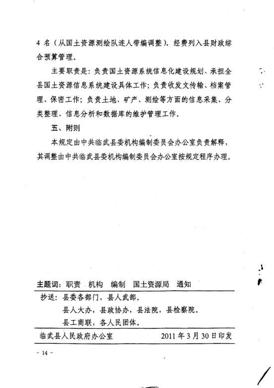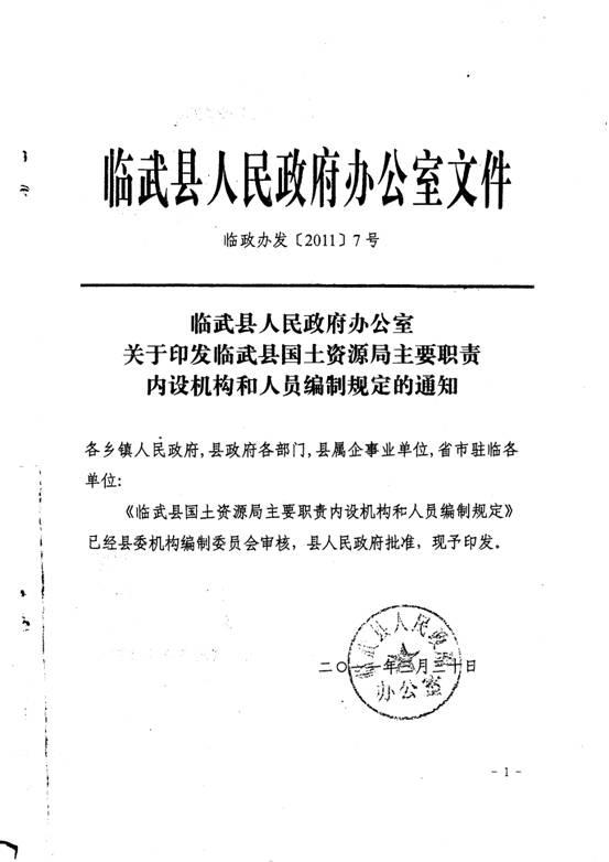 临武县人民政府办公室关于印发临武县国土资源局主要职责内设机构和人员编制规定的通知