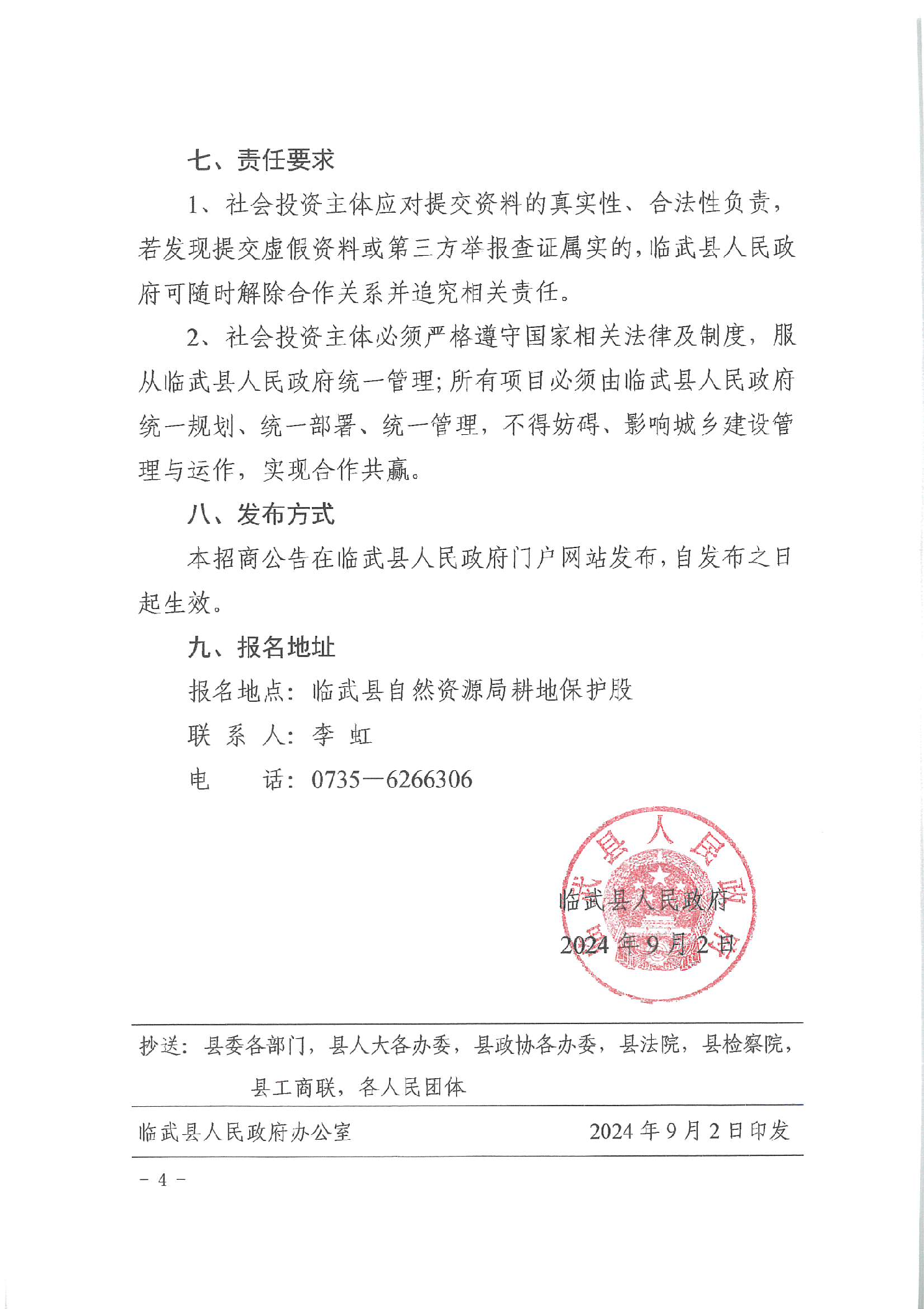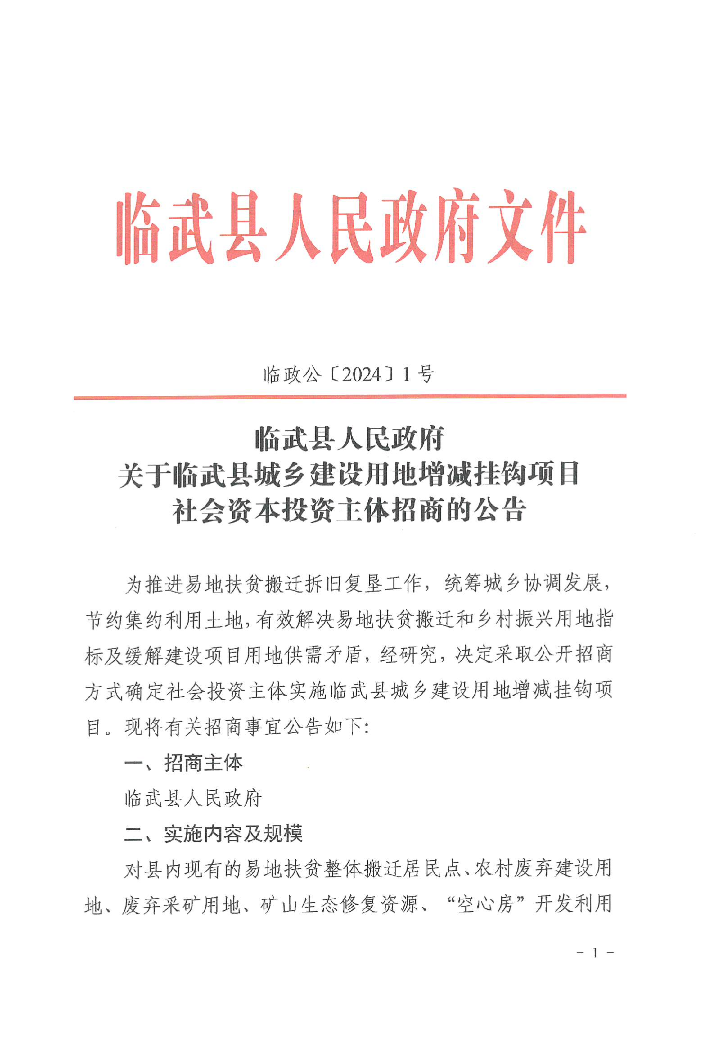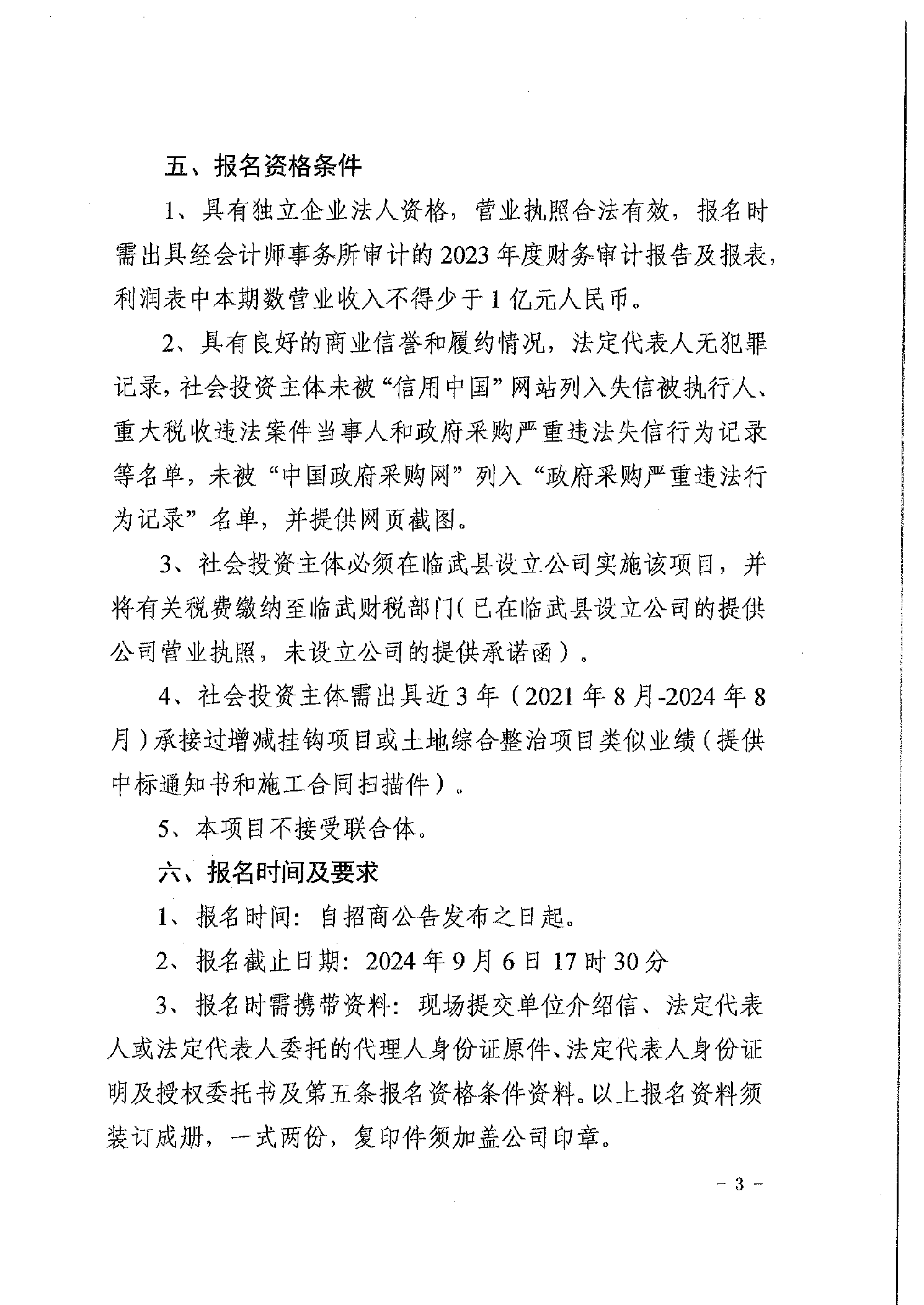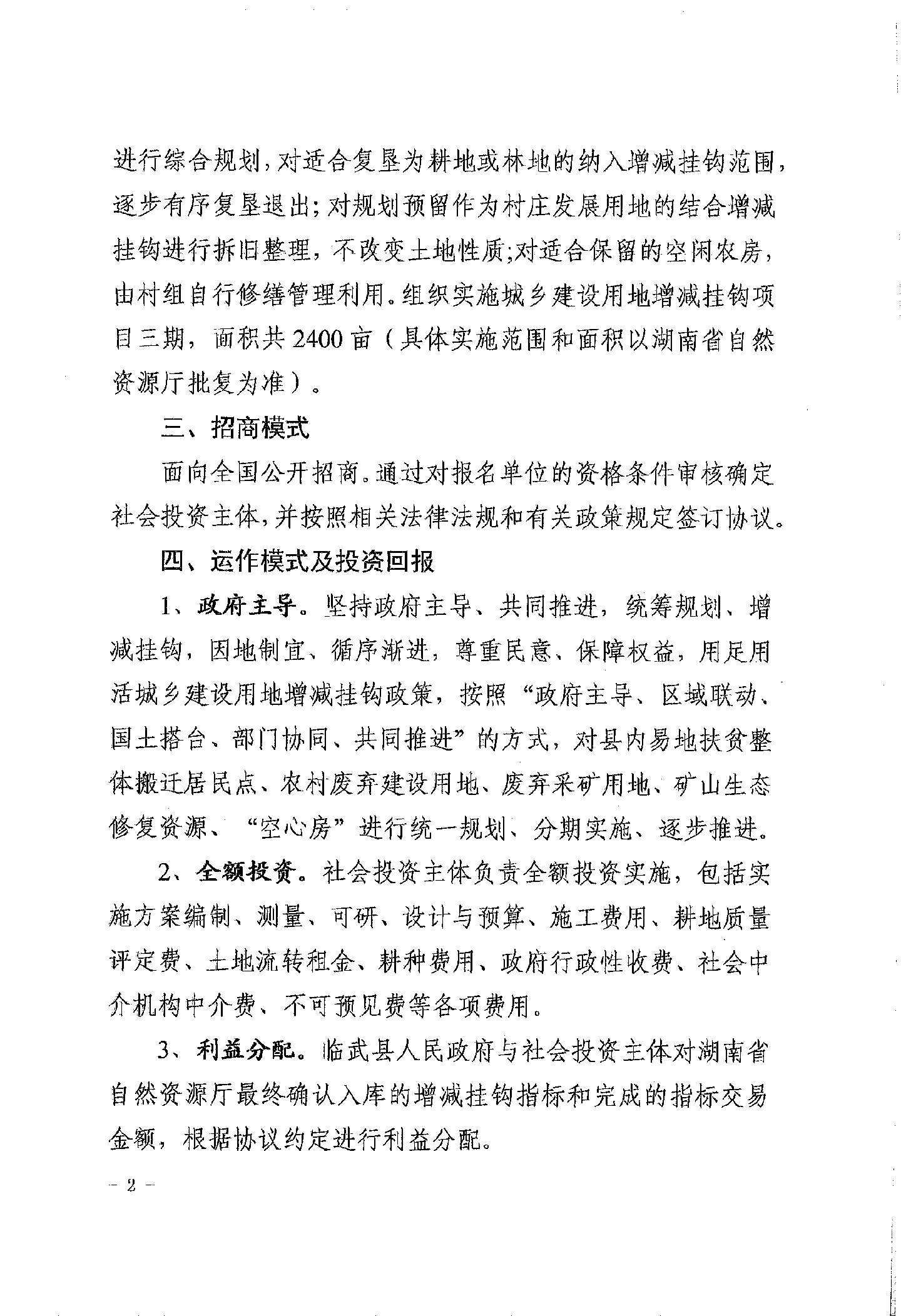 关于临武县城乡建设用地增减挂钩项目社会资本投资主体招商的公告