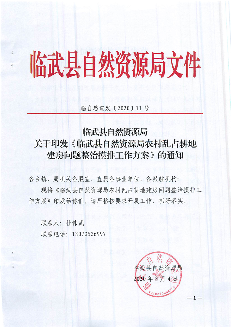 关于印发《临武县自然资源局农村乱占耕地建房问题整治摸排工作方案》的通知