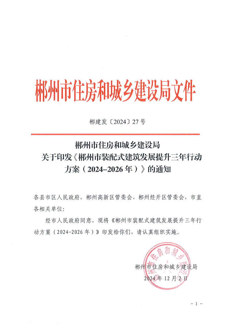 郴州市住房和城乡建设局关于印发《郴州市装配式建筑发展提升三年行动方案(2024-2026年)》的通知