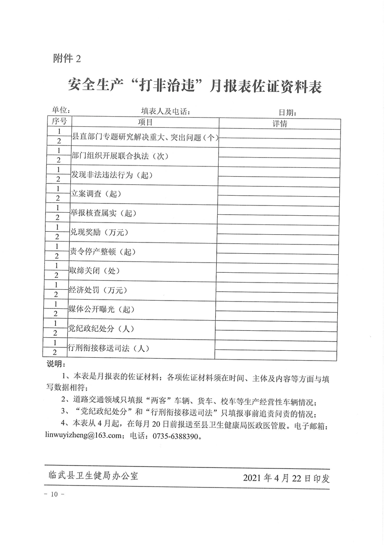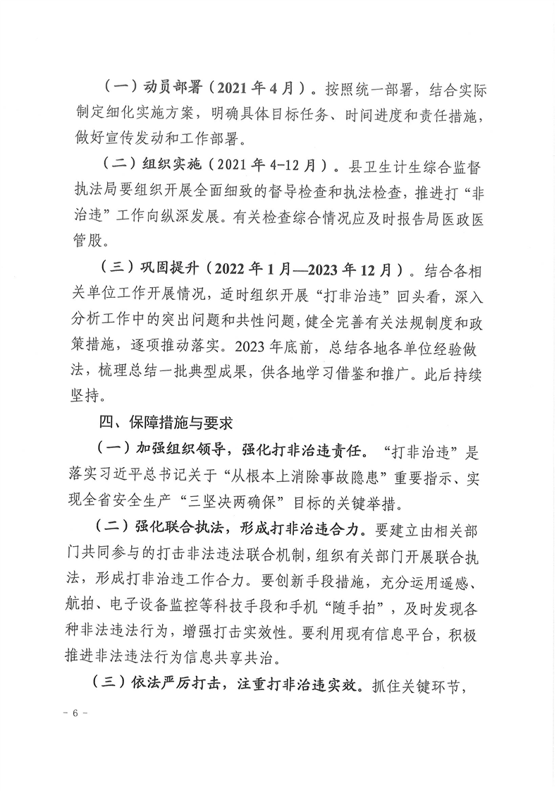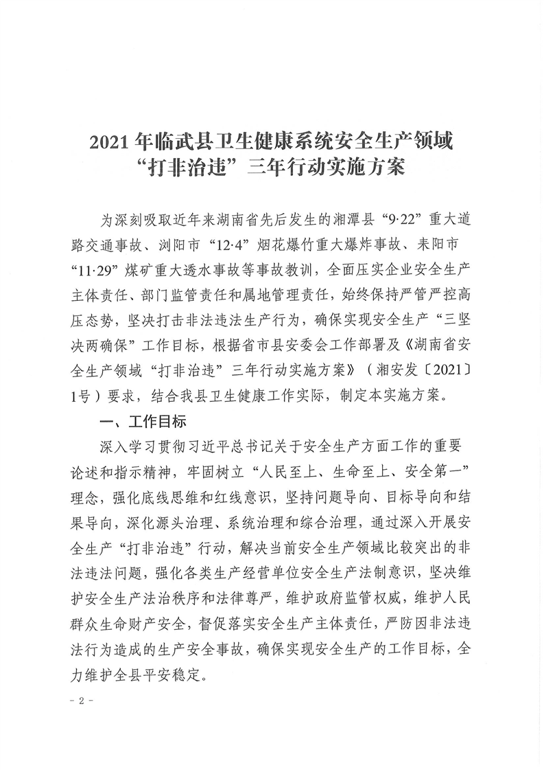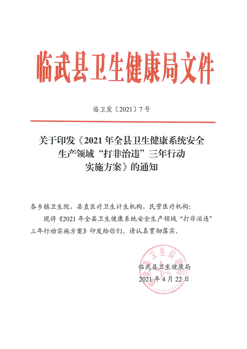 关于印发《2021年全县卫生健康系统安全生产领域“打非治违”三年行动实施方案》的通知
