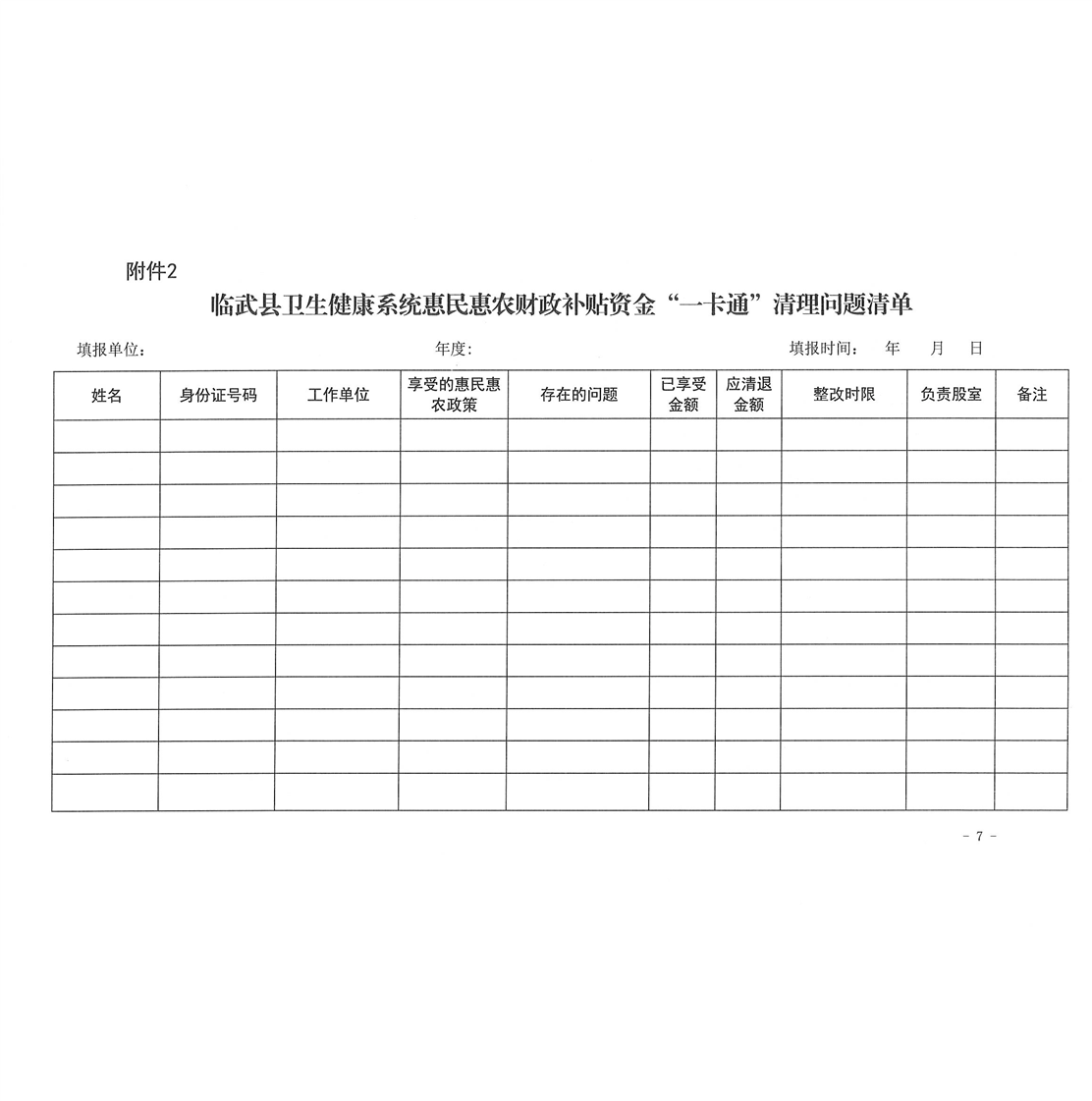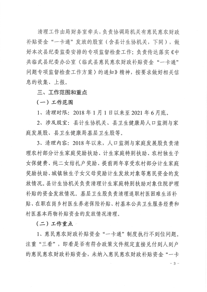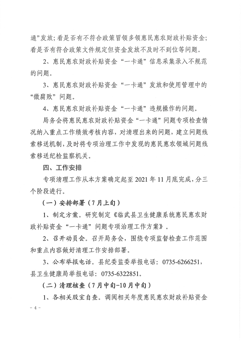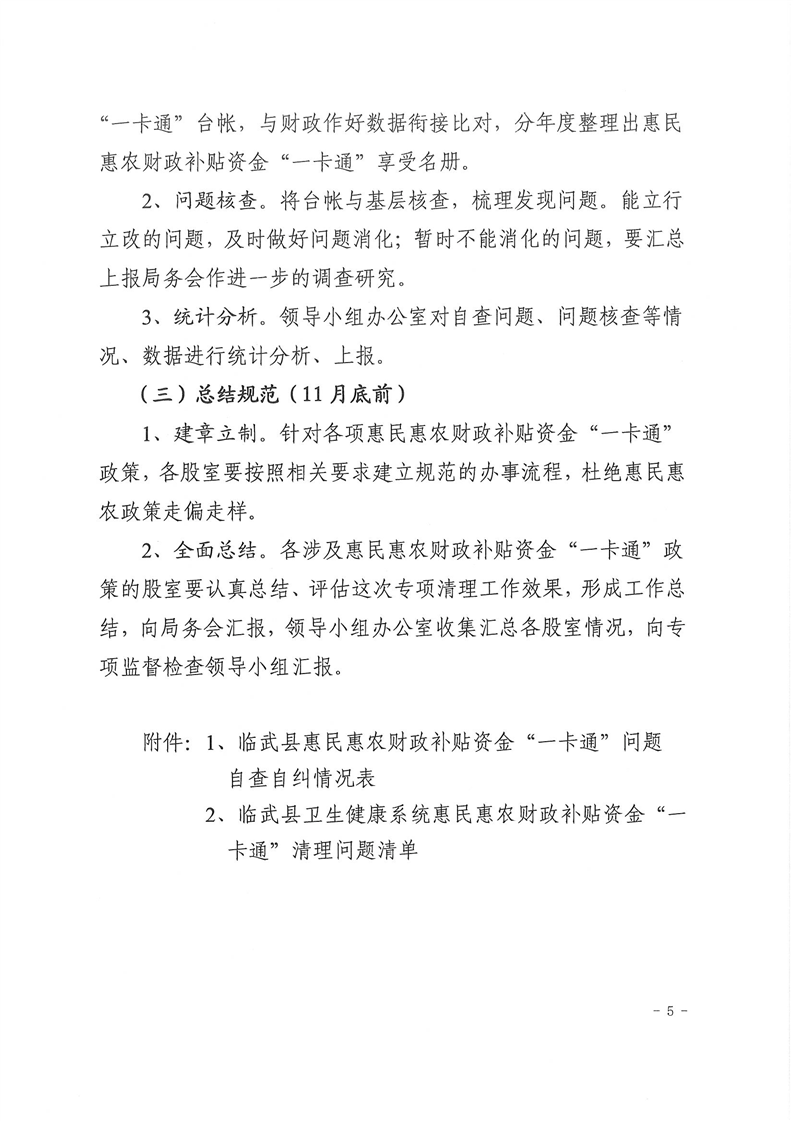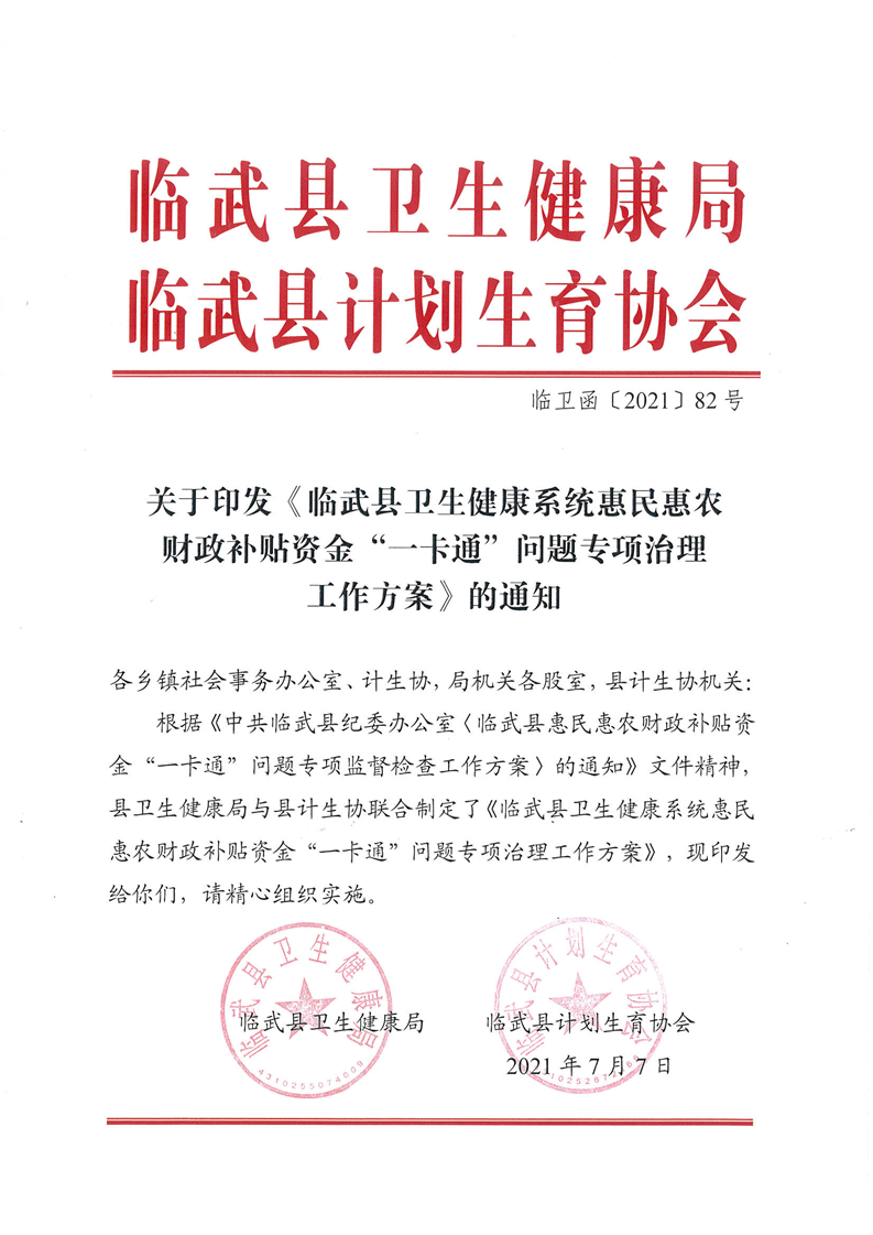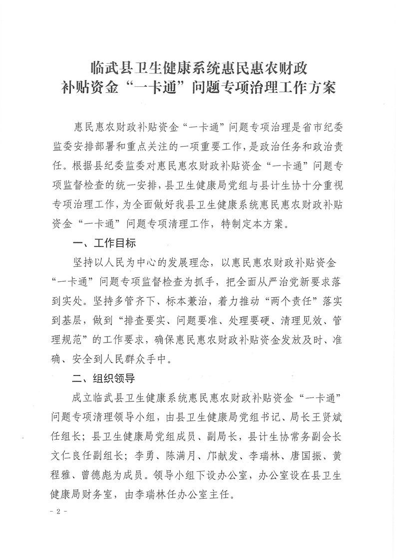 关于印发《临武县卫生健康系统惠民惠农财政补贴资金 “一卡通”问题专项治理工作方案》的通知