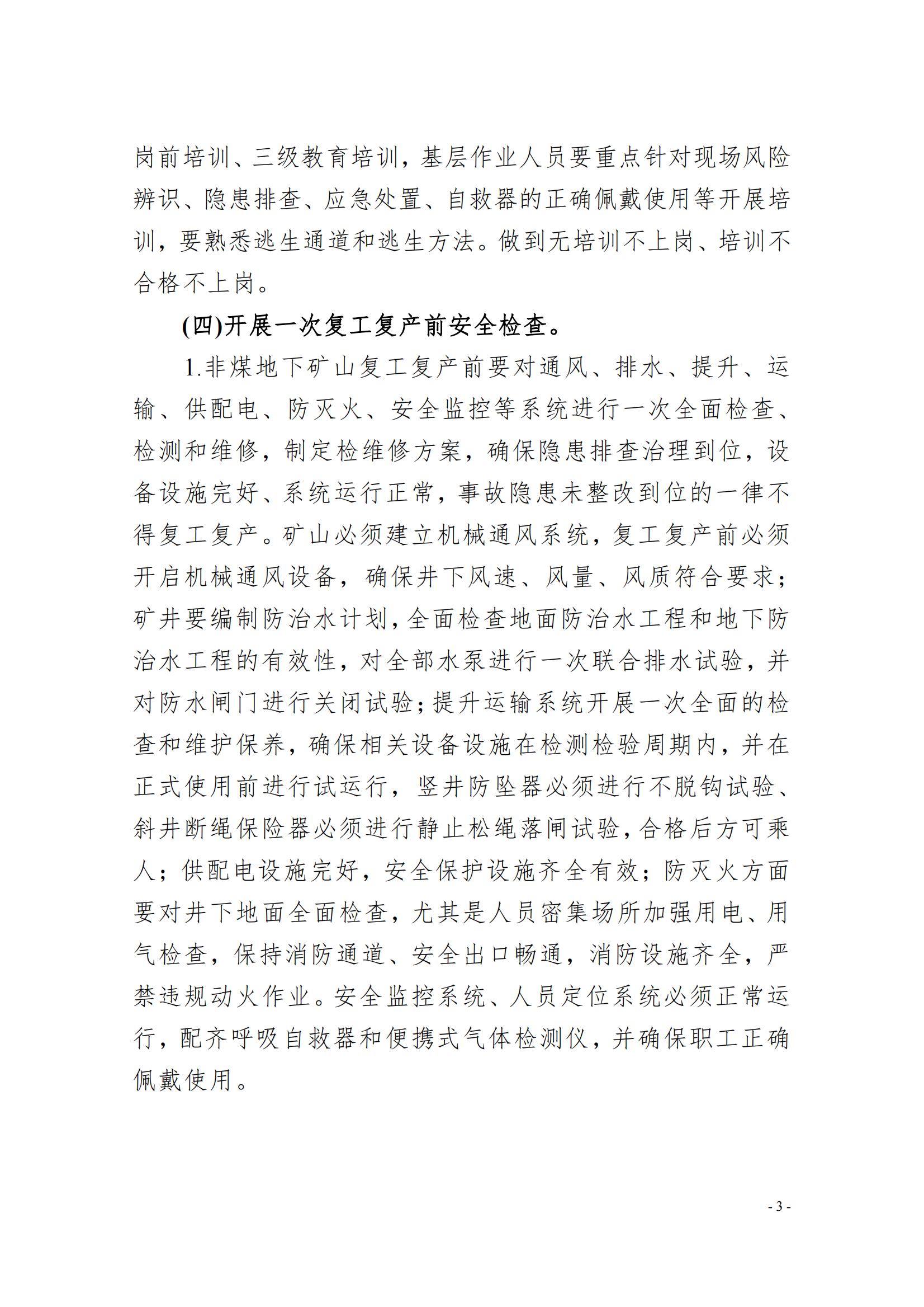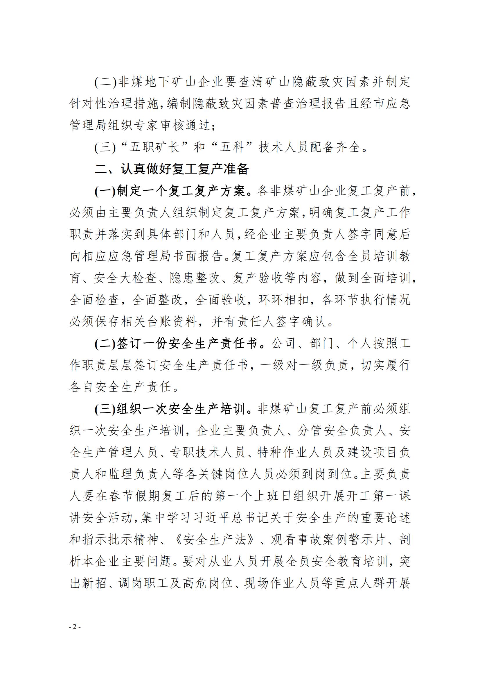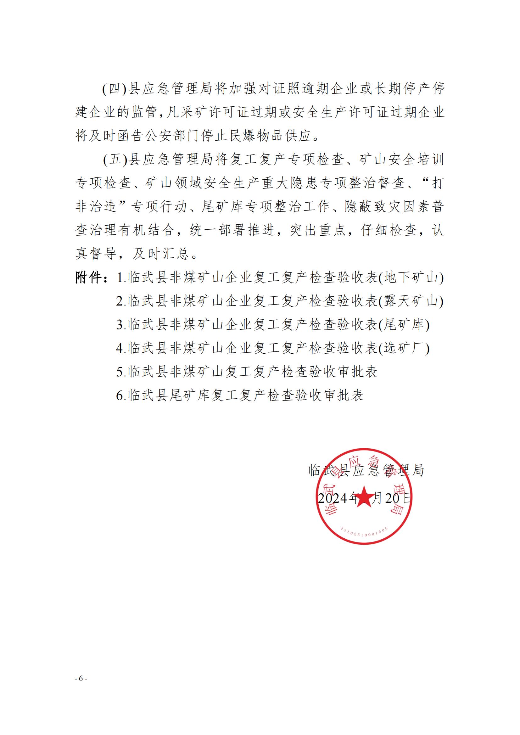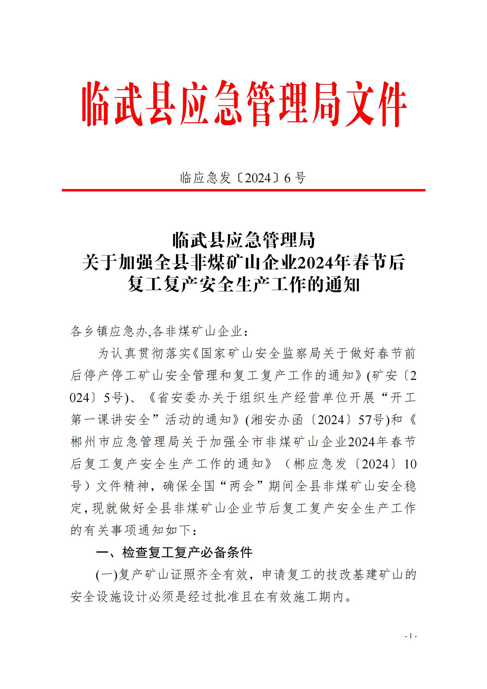 临应急发〔2024〕6号关于加强全县非煤矿山企业2024年春节后复工复产安全生产工作的通知