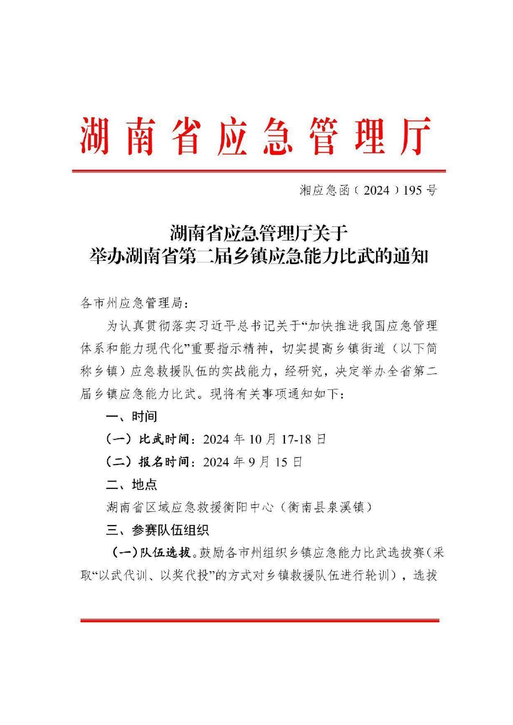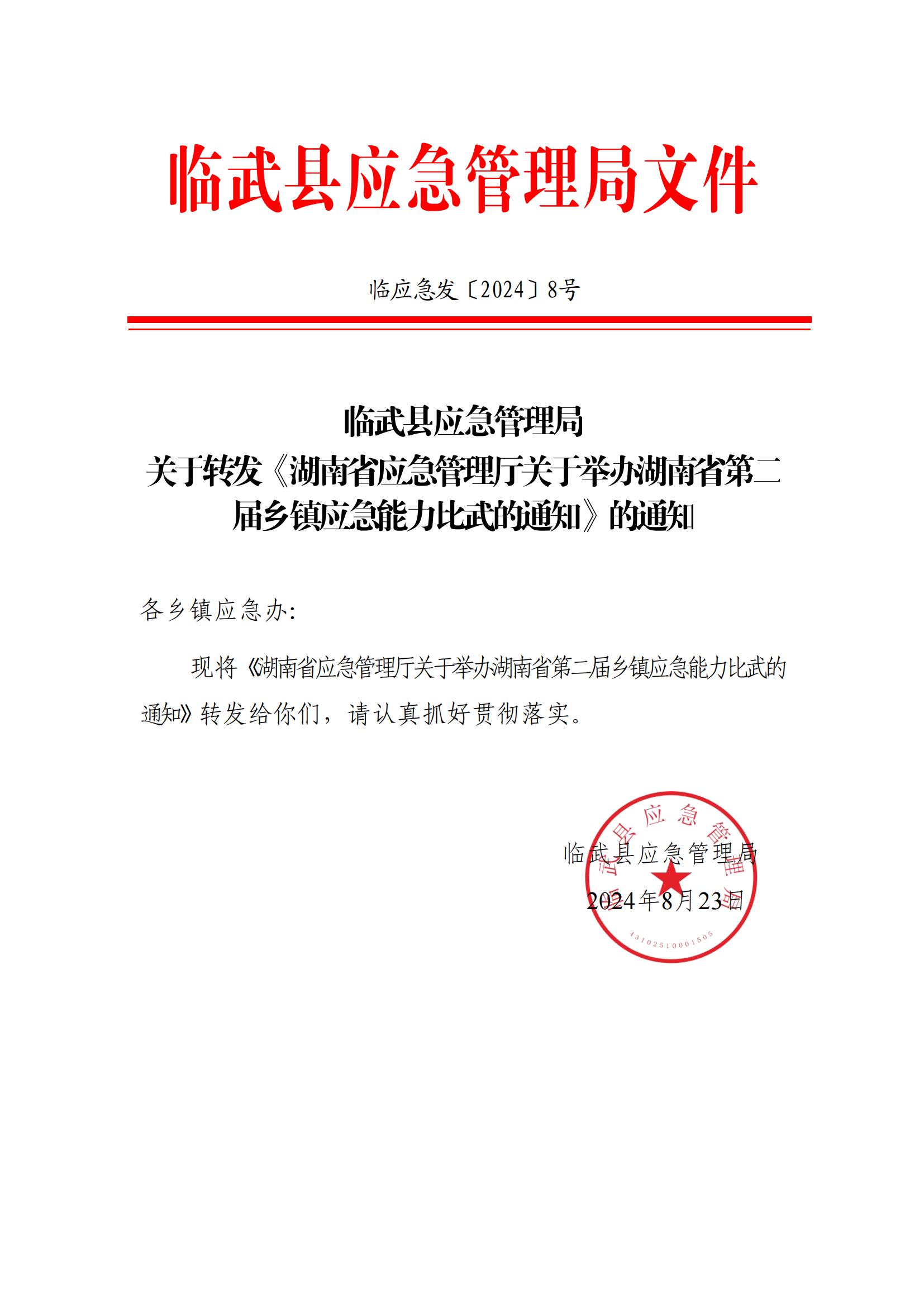 临应急发〔2024〕8号关于转发《湖南省应急管理厅关于举办湖南省第二届乡镇应急能力比武的通知》的通知