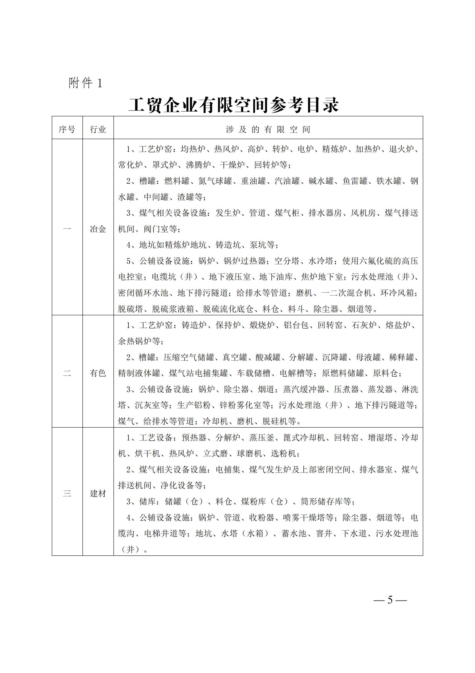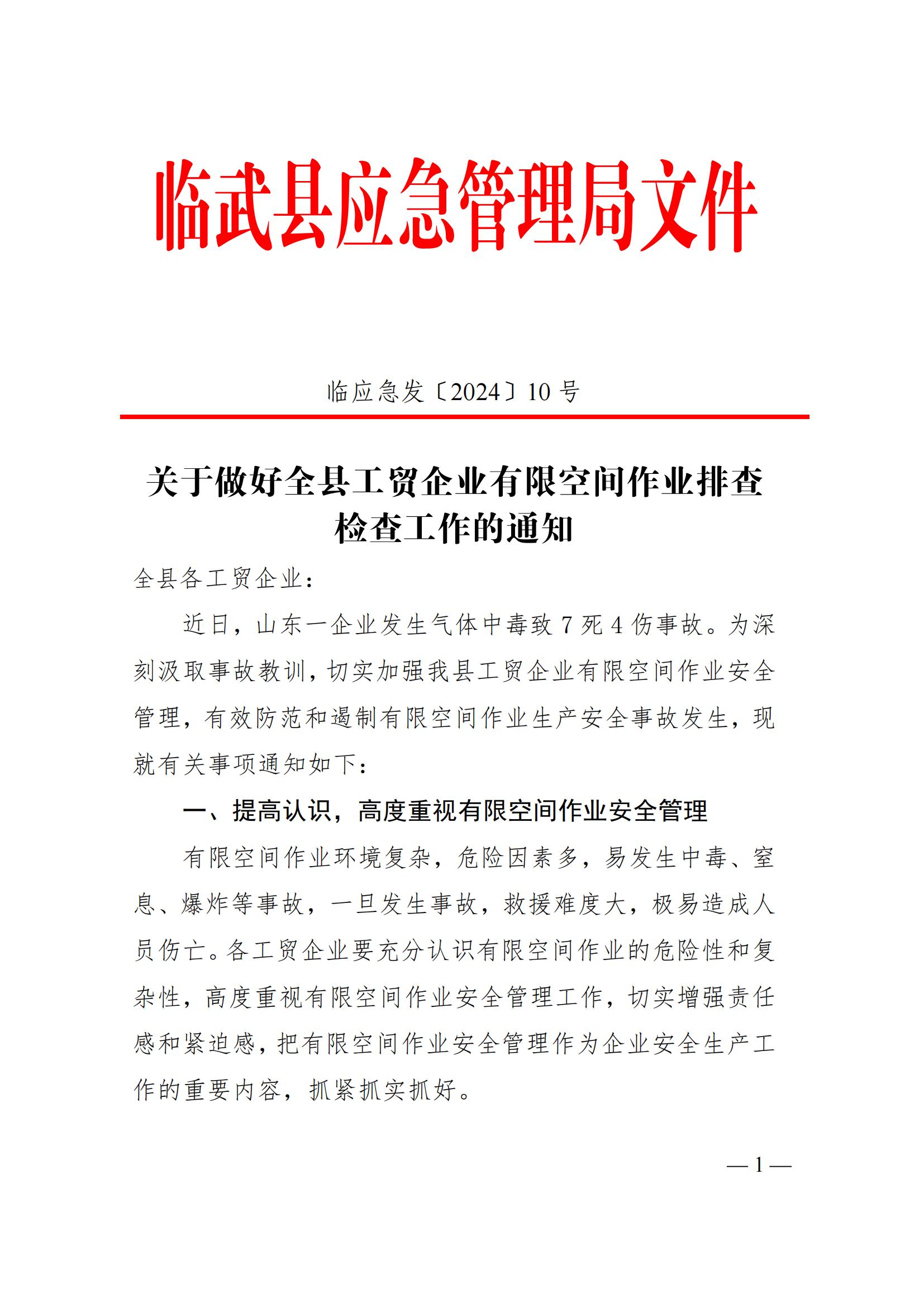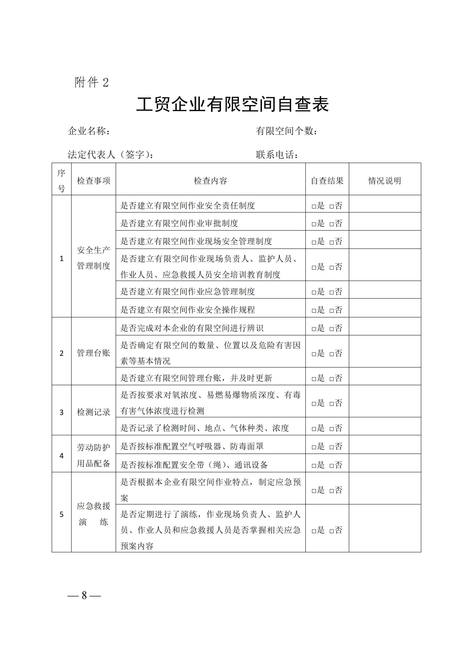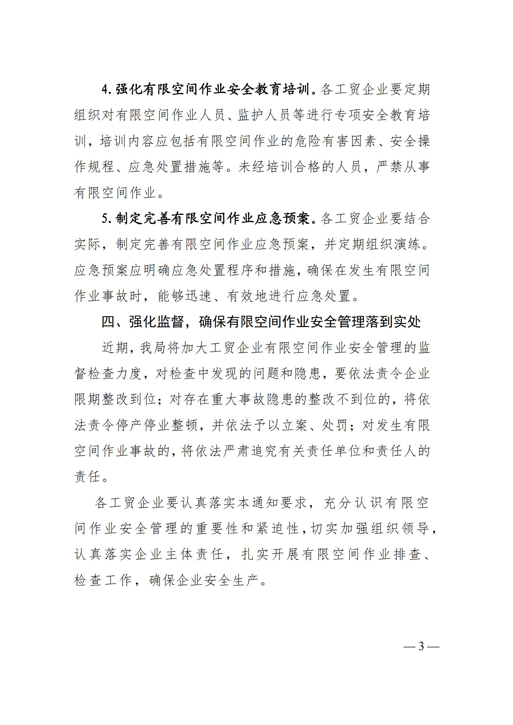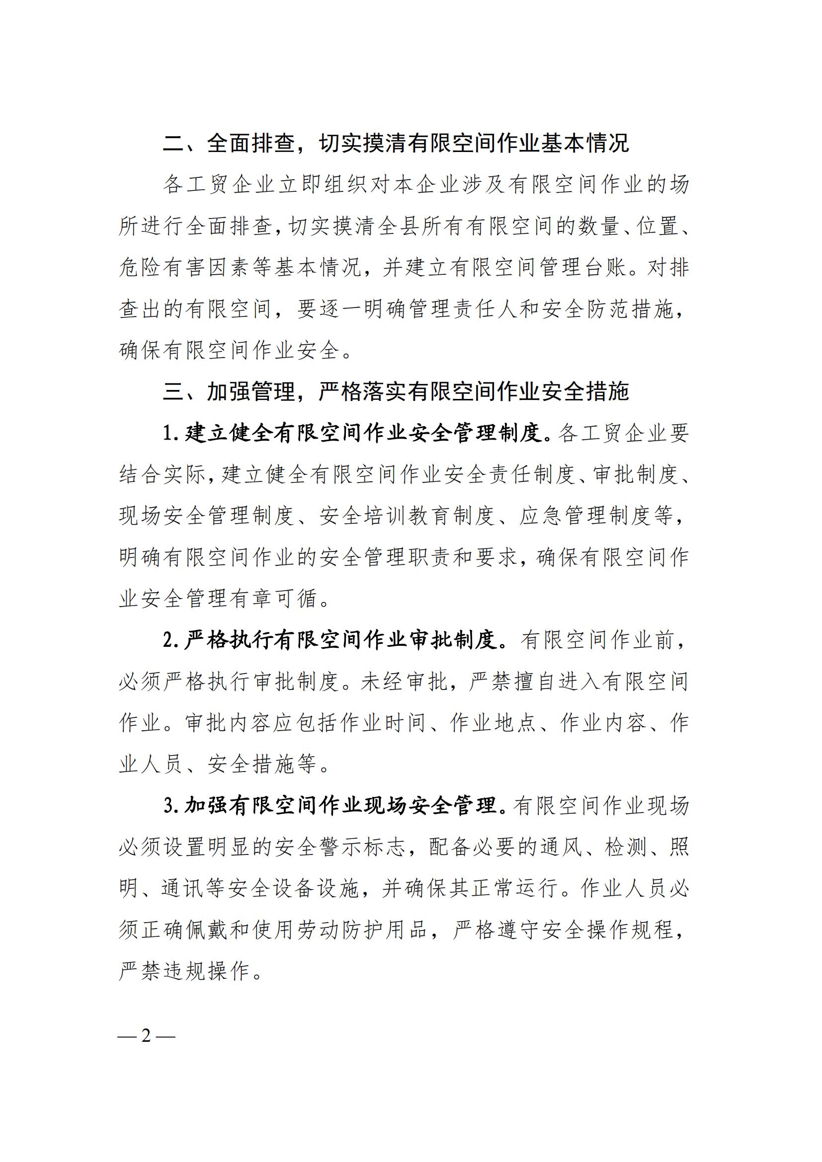 关于做好全县工贸企业有限空间作业排查检查工作的通知
