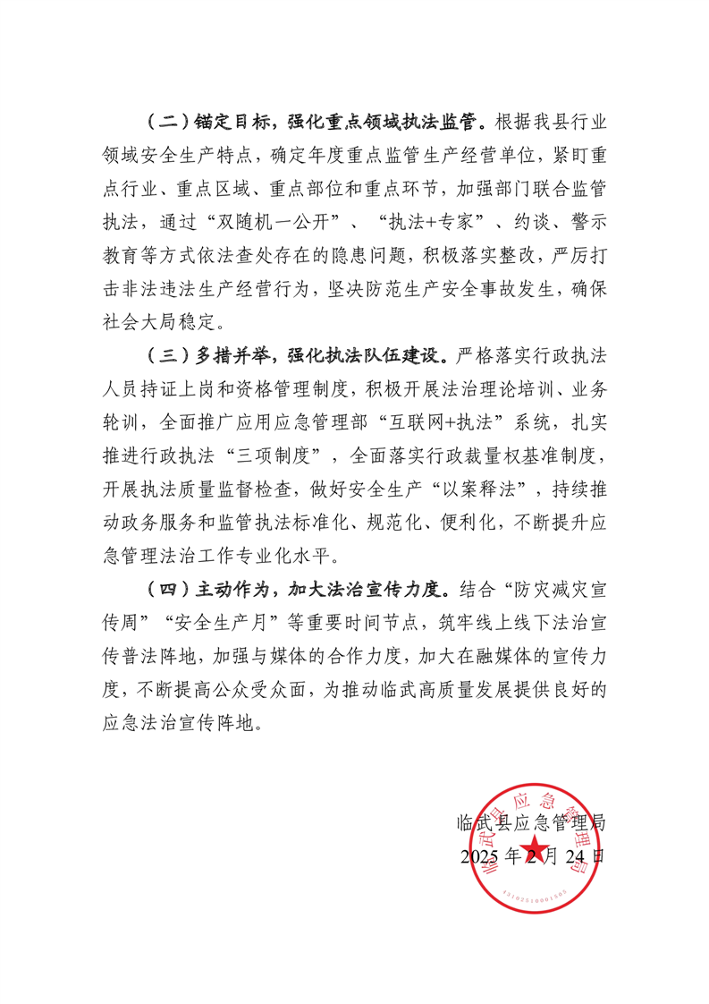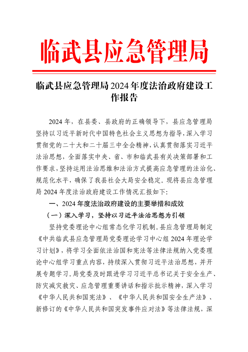 临武县应急管理局2024年度法治政府建设工作报告