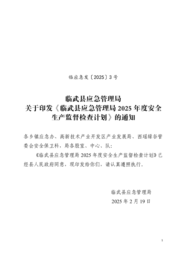 关于印发《临武县应急管理局2025年监督检查计划》的通知