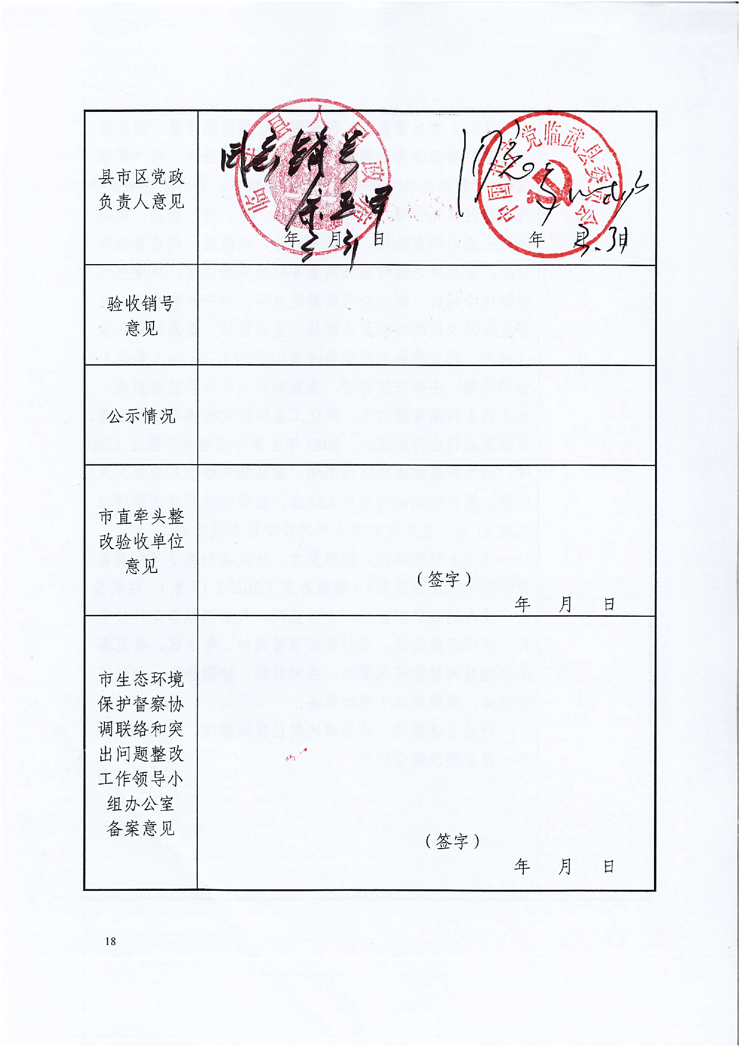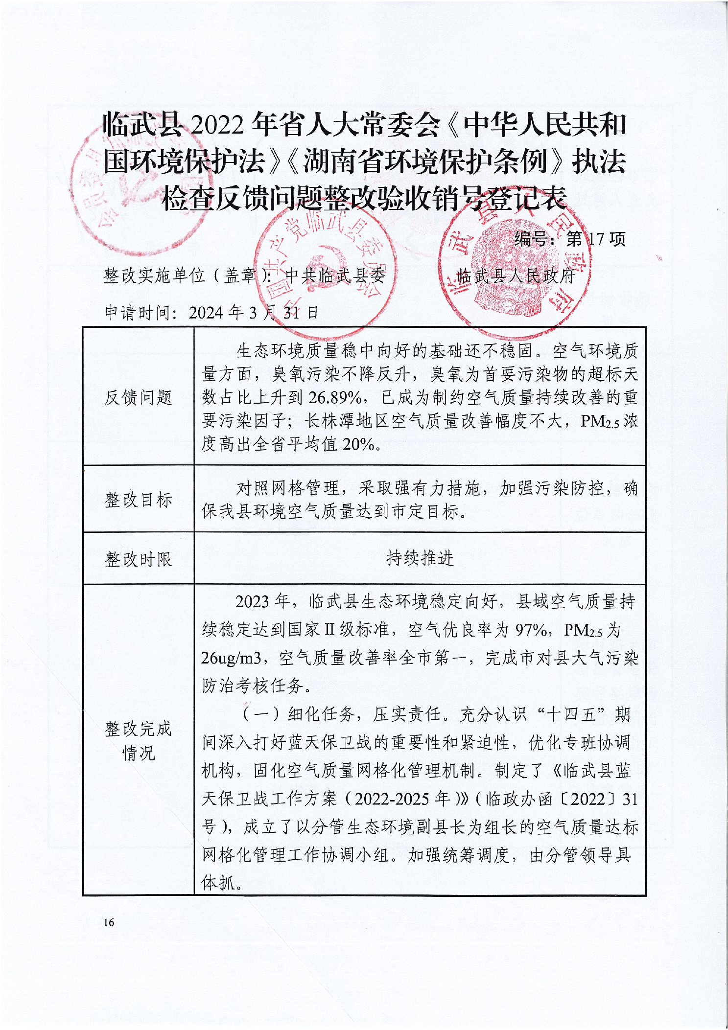 临武县-临武县2022年省人大常委会《中华人民共和国环境保护法》《湖南省环境保护条例》执法检查反馈问题整改验收销号登记表(第17项)