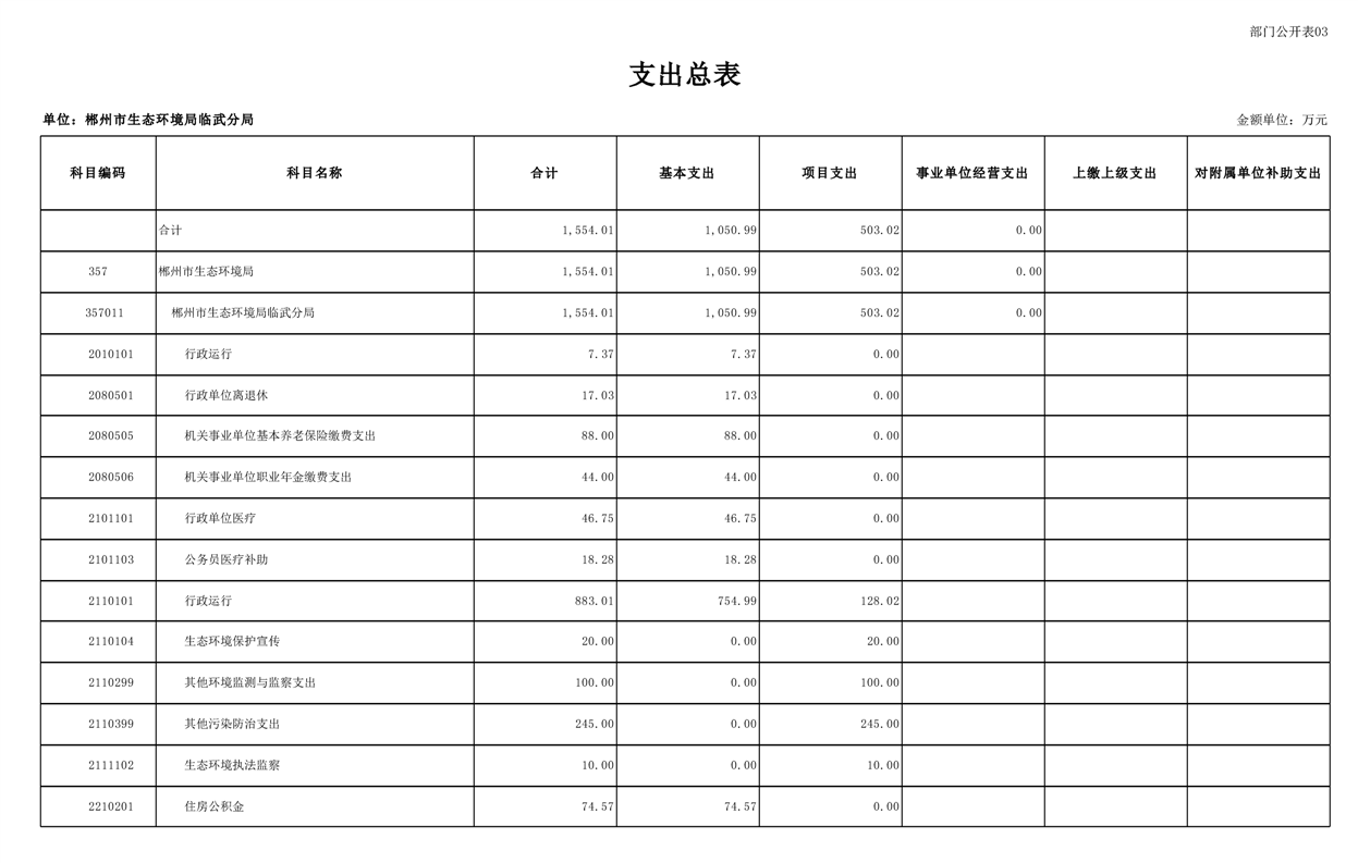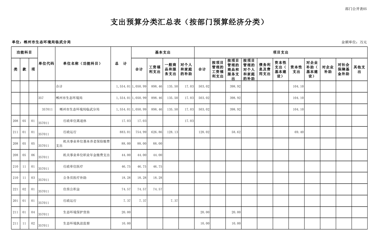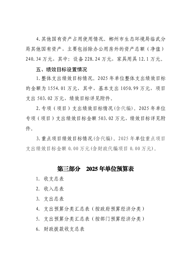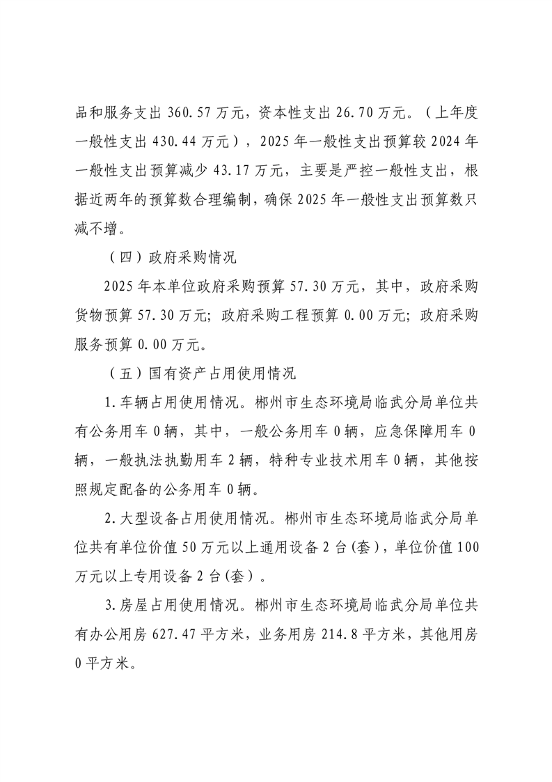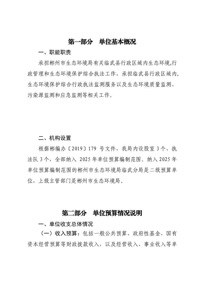 郴州市生态环境局临武分局2025年单位预算