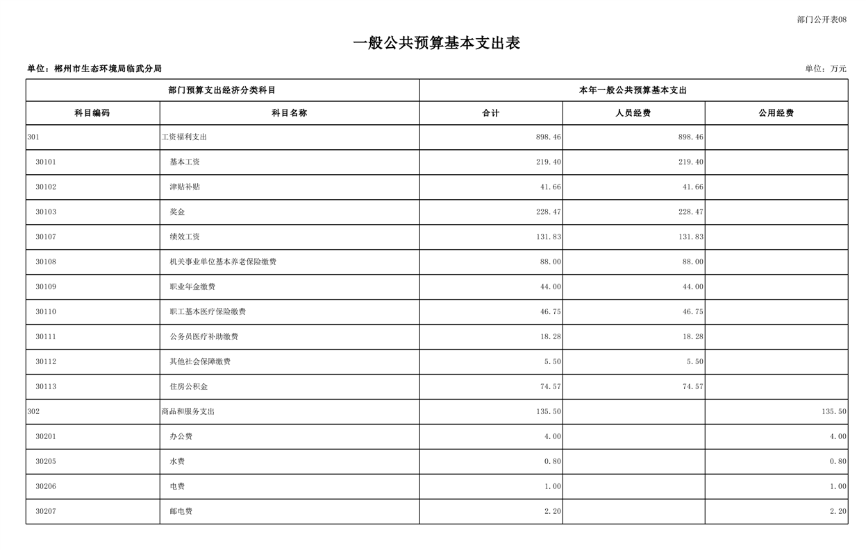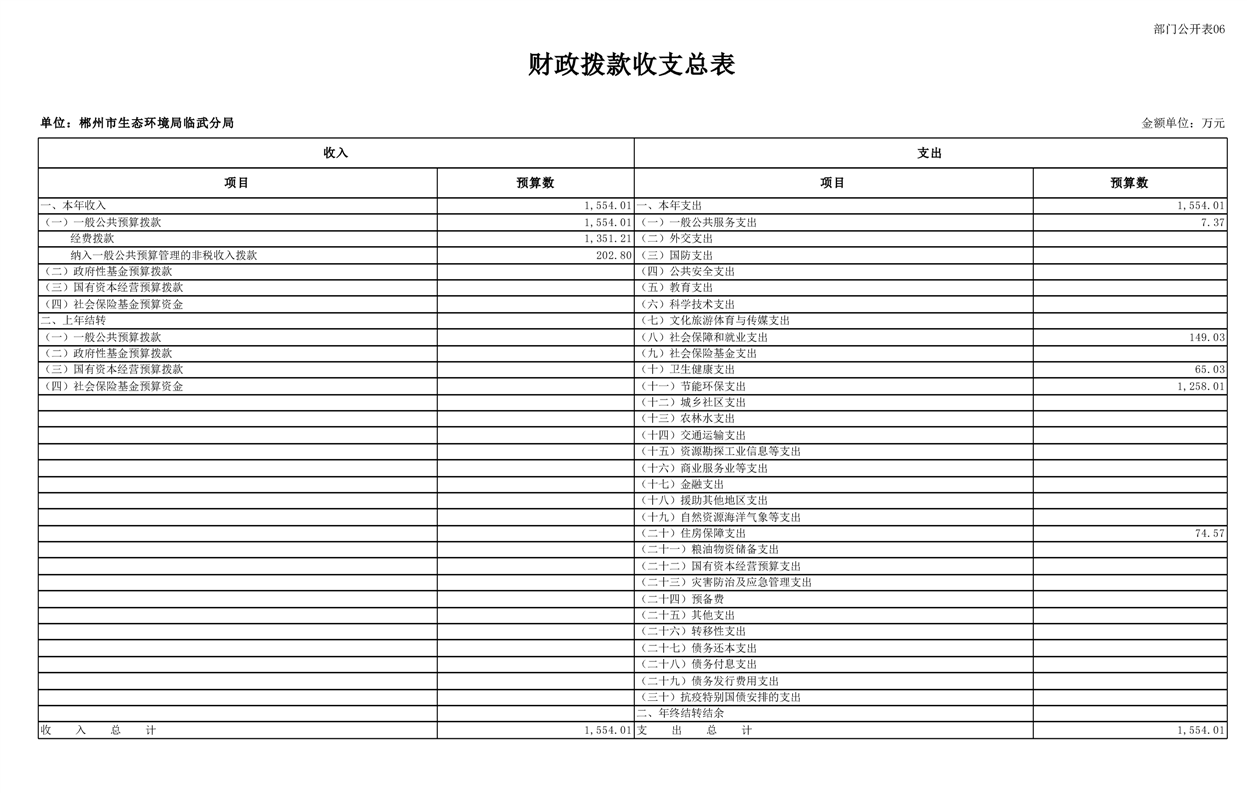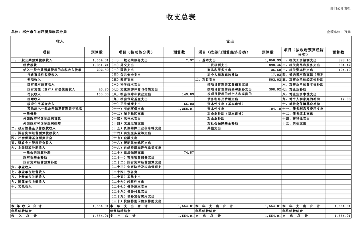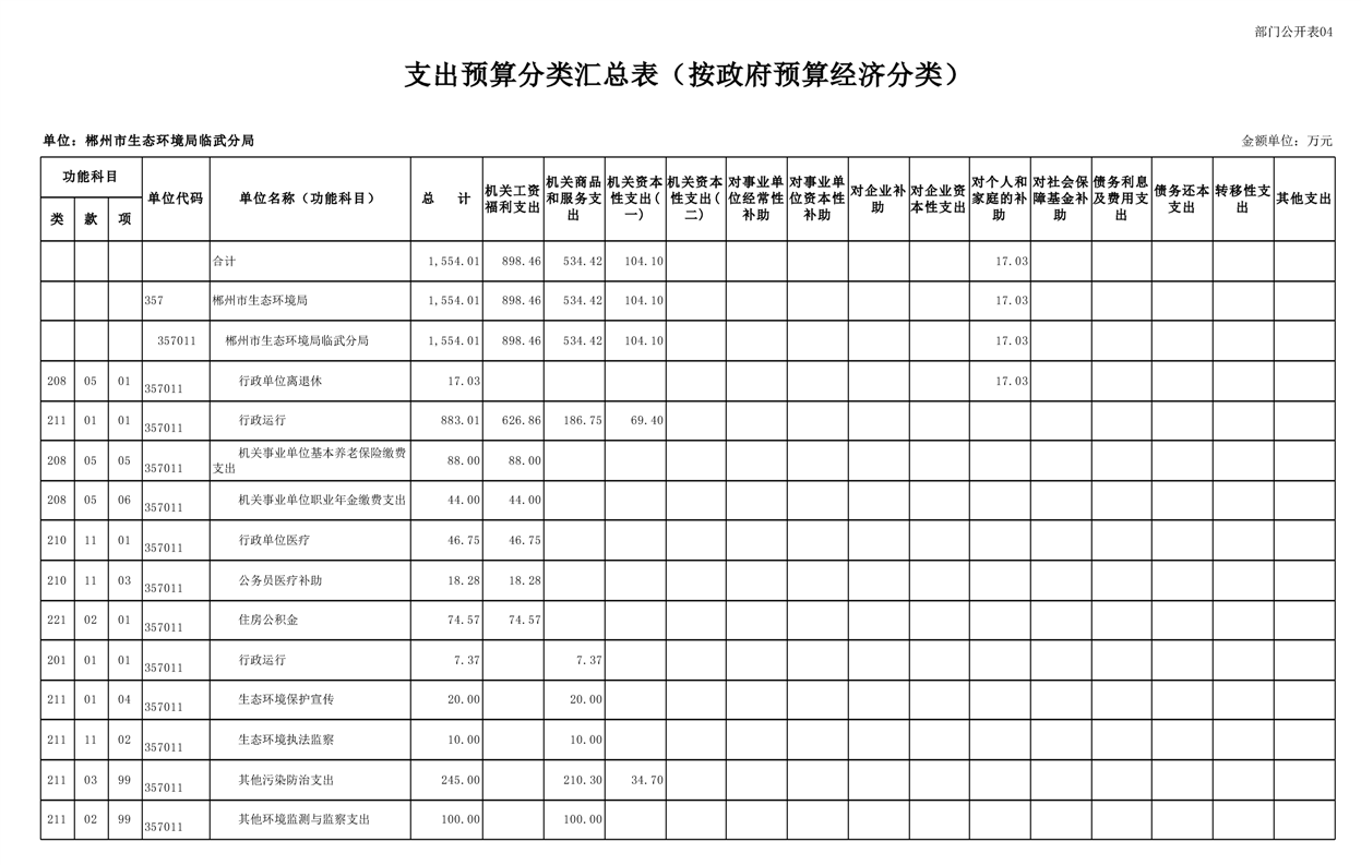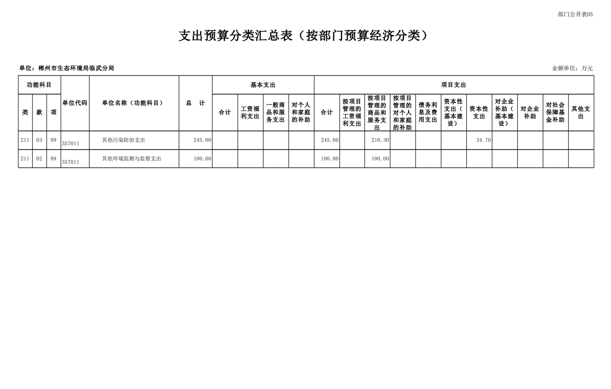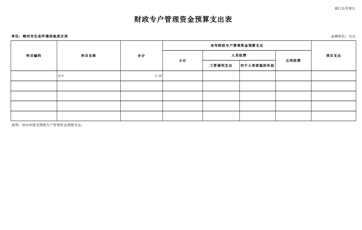 郴州市生态环境局临武分局2025年单位预算