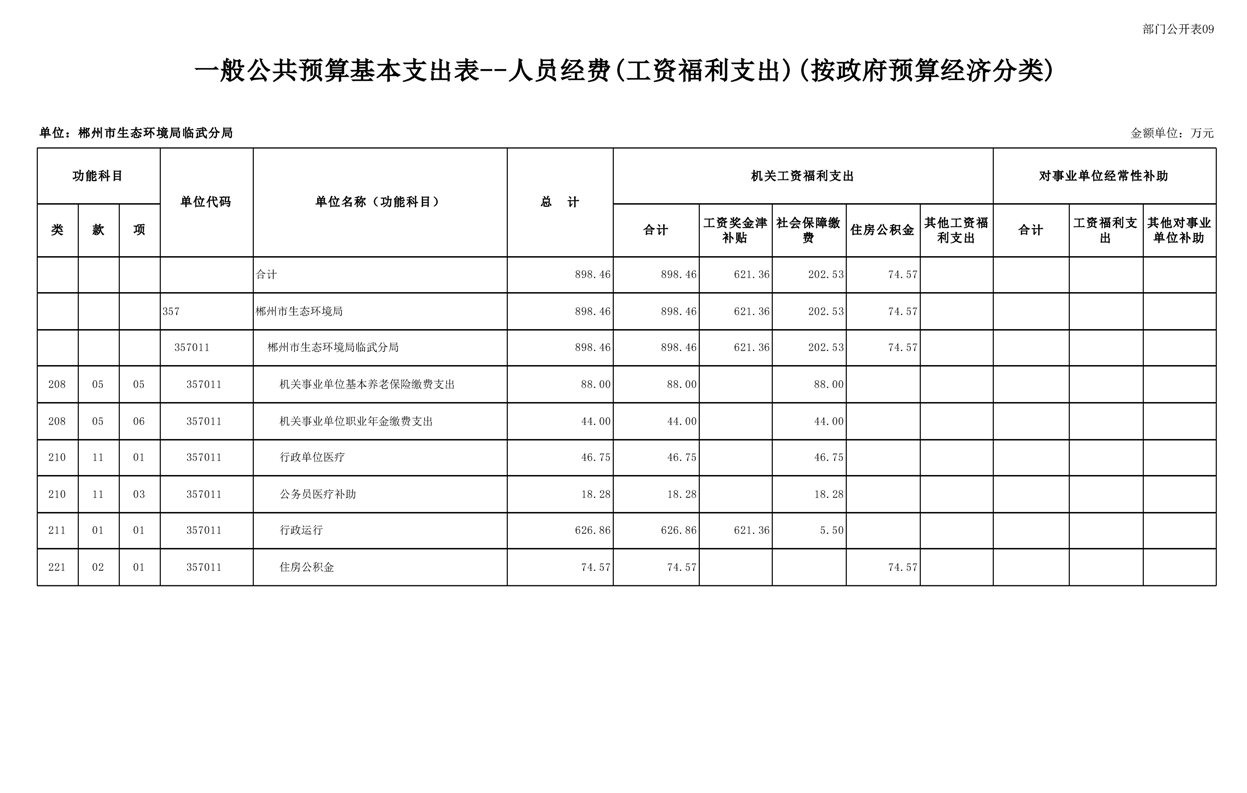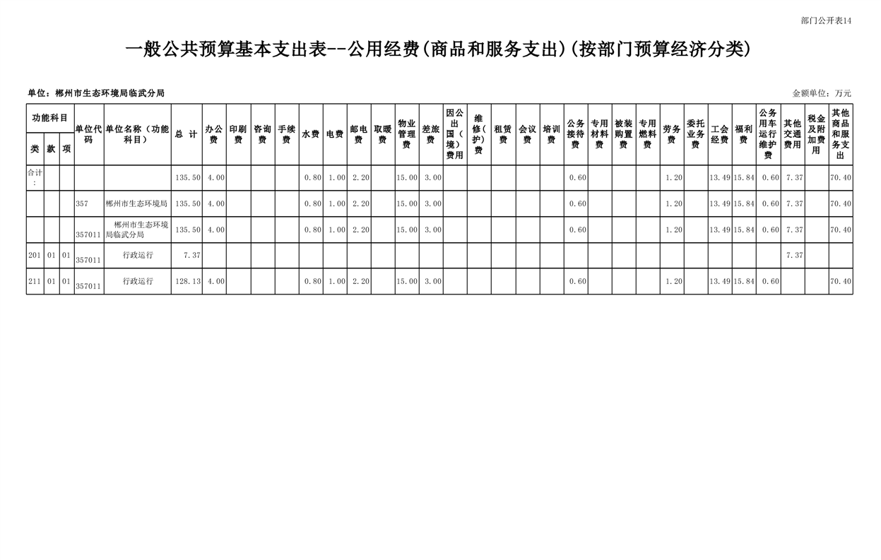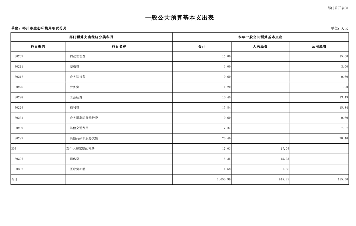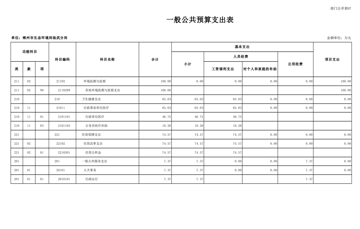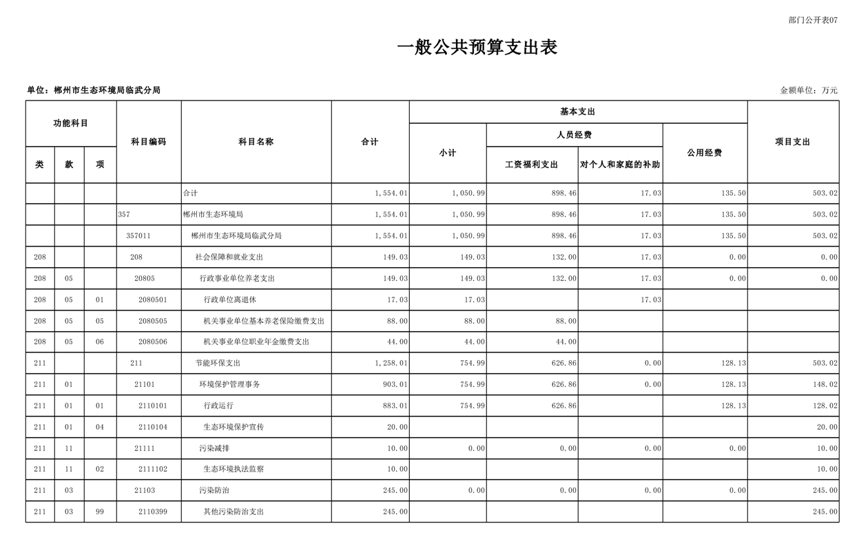 郴州市生态环境局临武分局2025年单位预算
