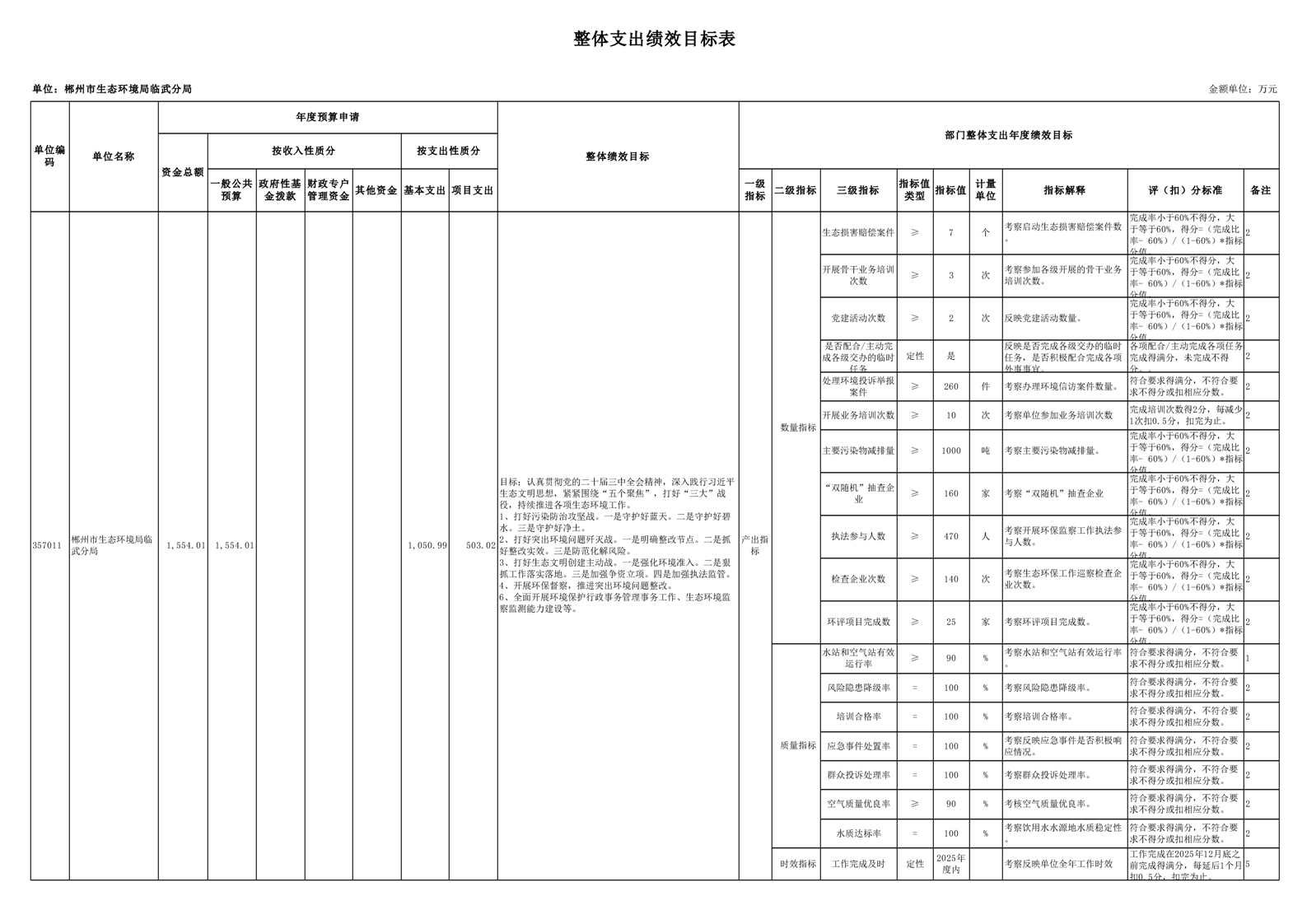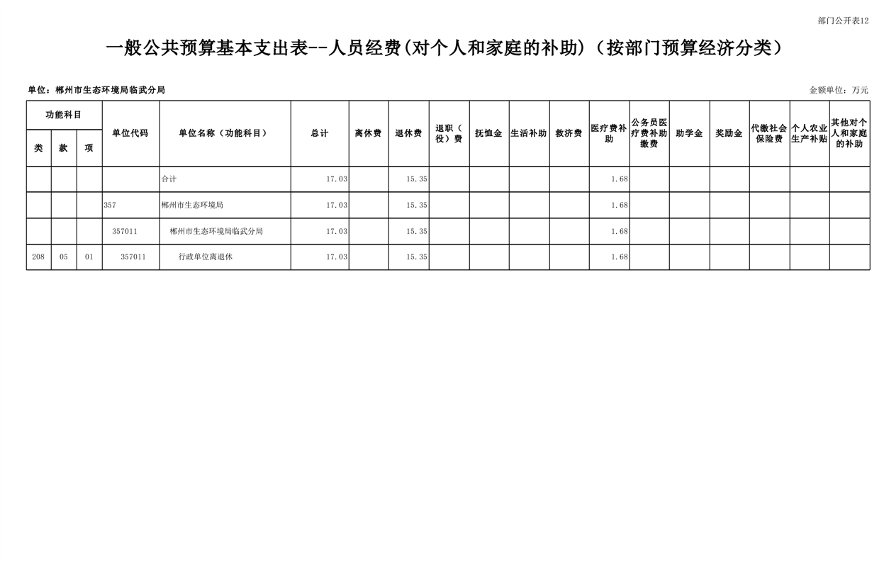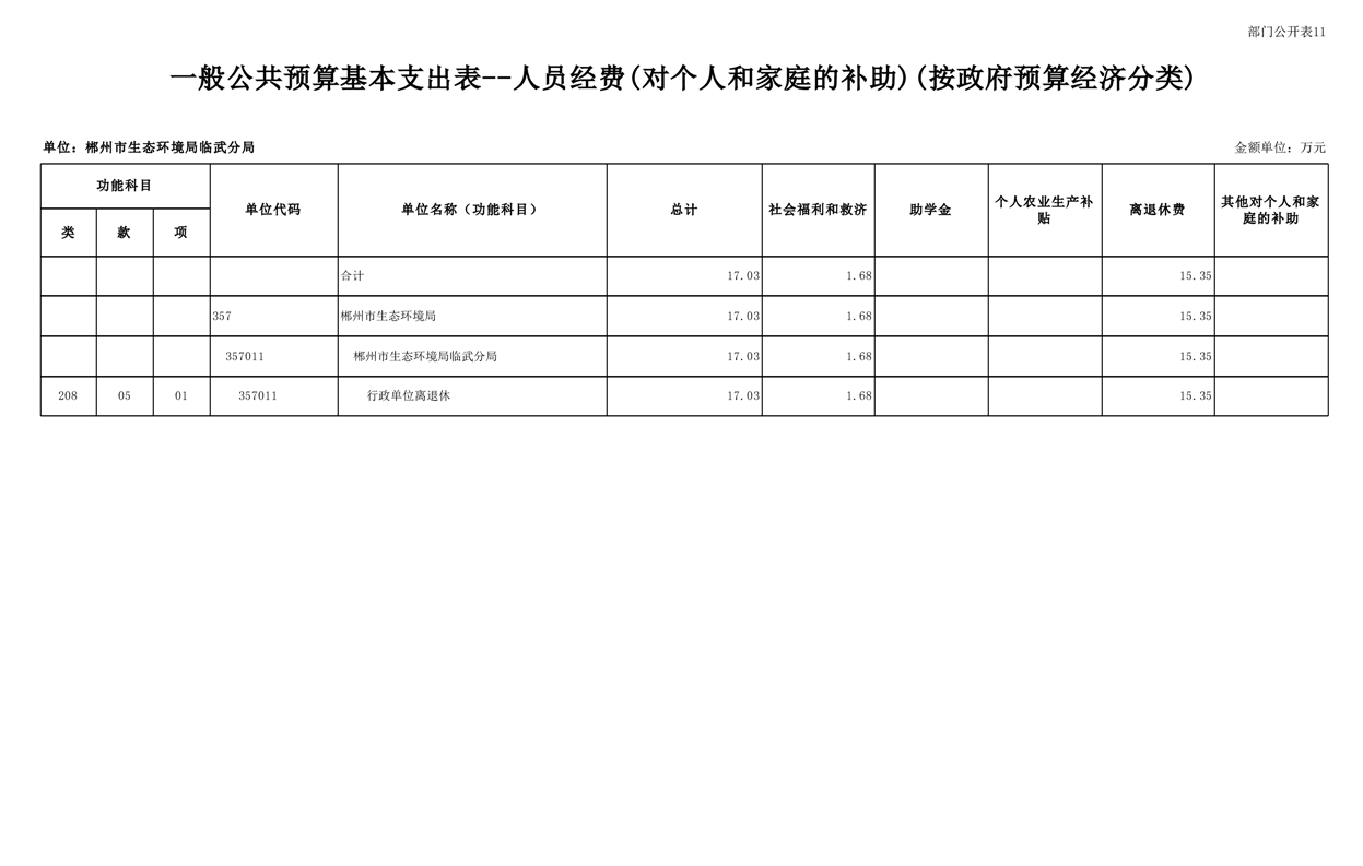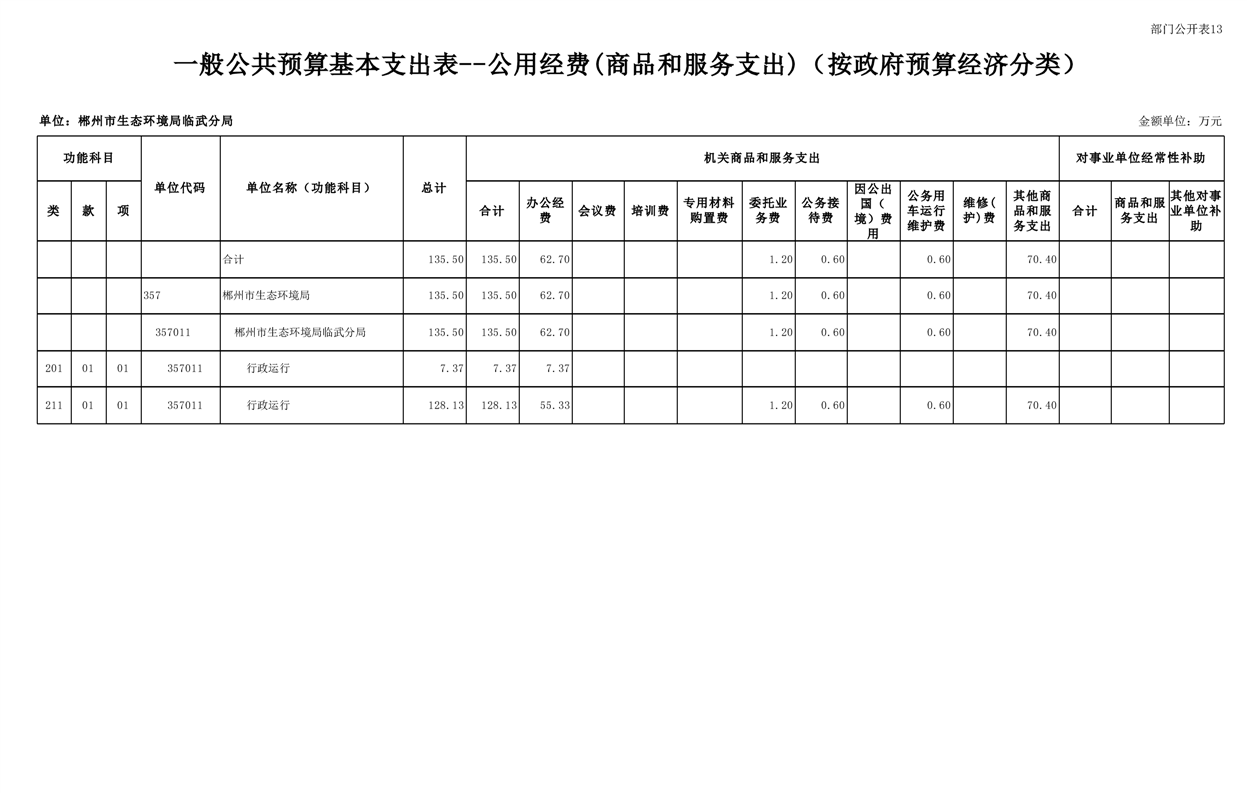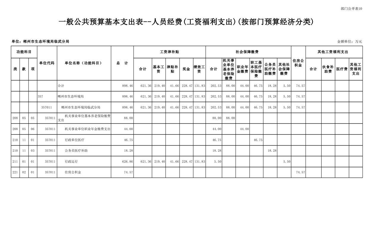 郴州市生态环境局临武分局2025年单位预算