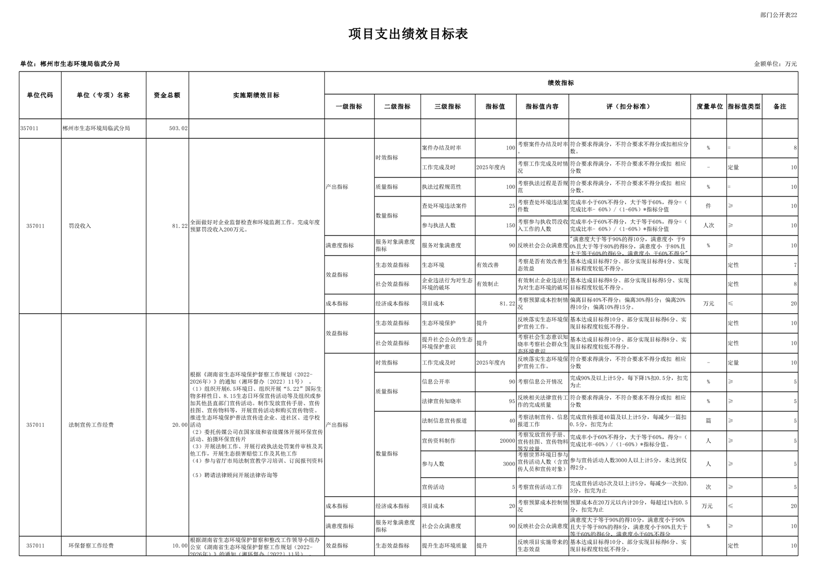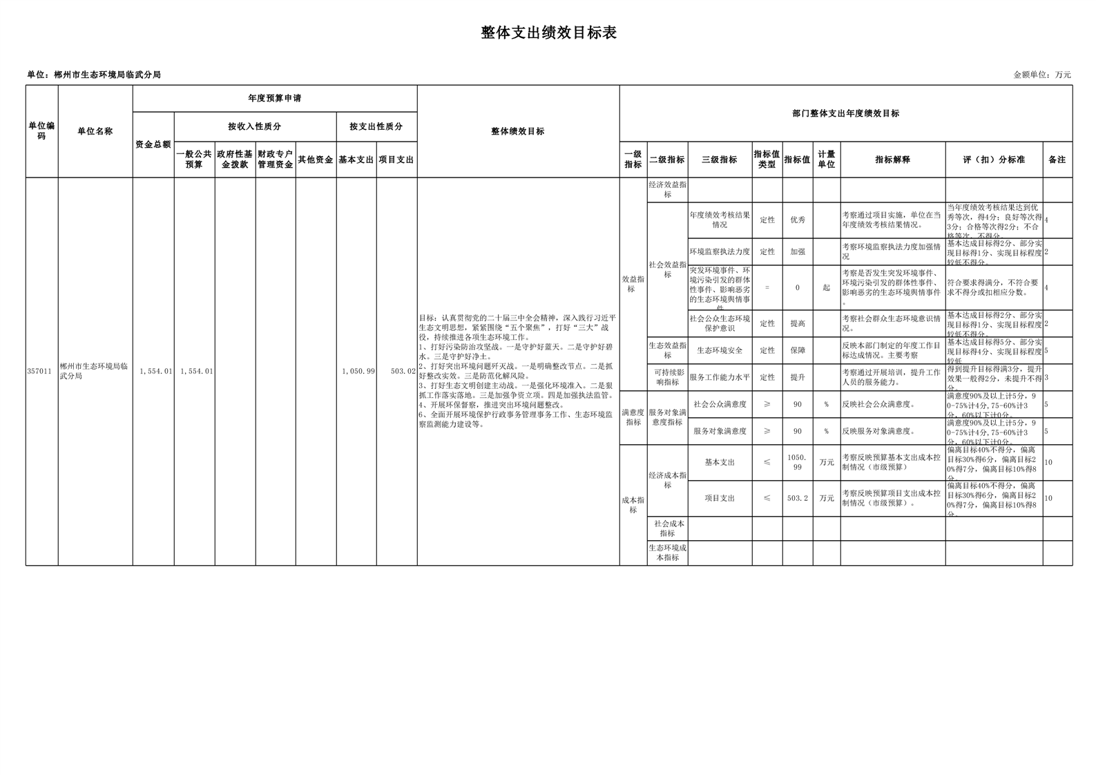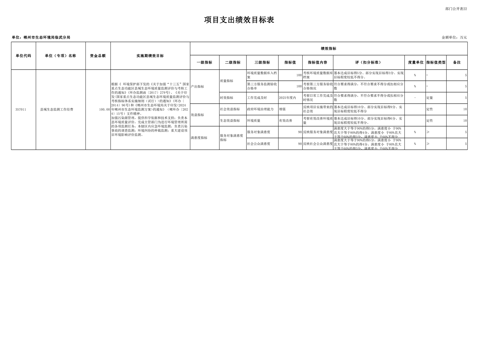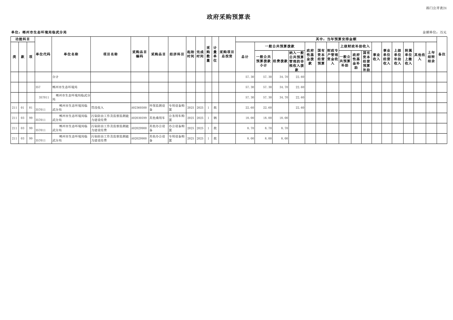 郴州市生态环境局临武分局2025年单位预算