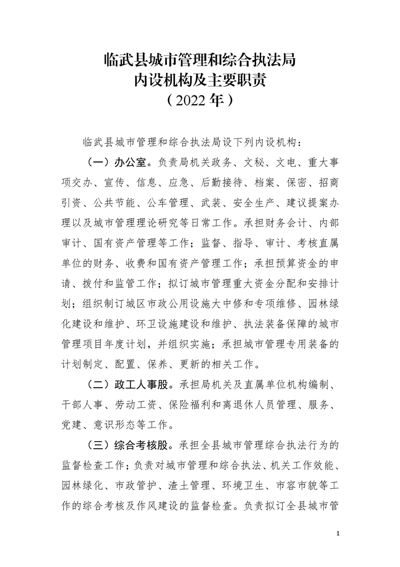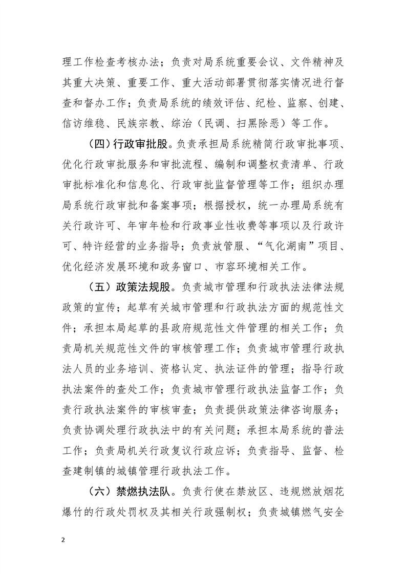 临武县城市管理和综合执法局内设机构及主要职责(2022年)