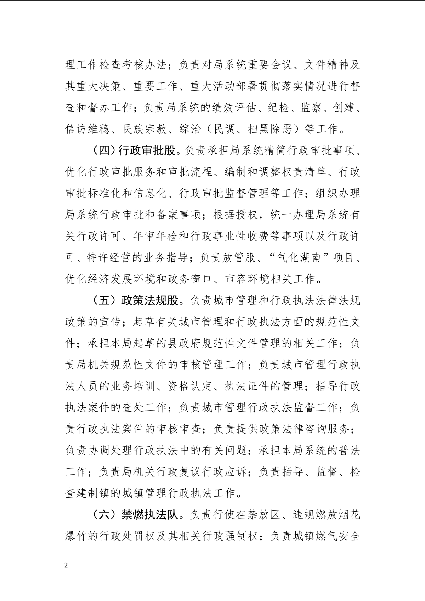 临武县城市管理和综合执法局内设机构及主要职责(2024年)
