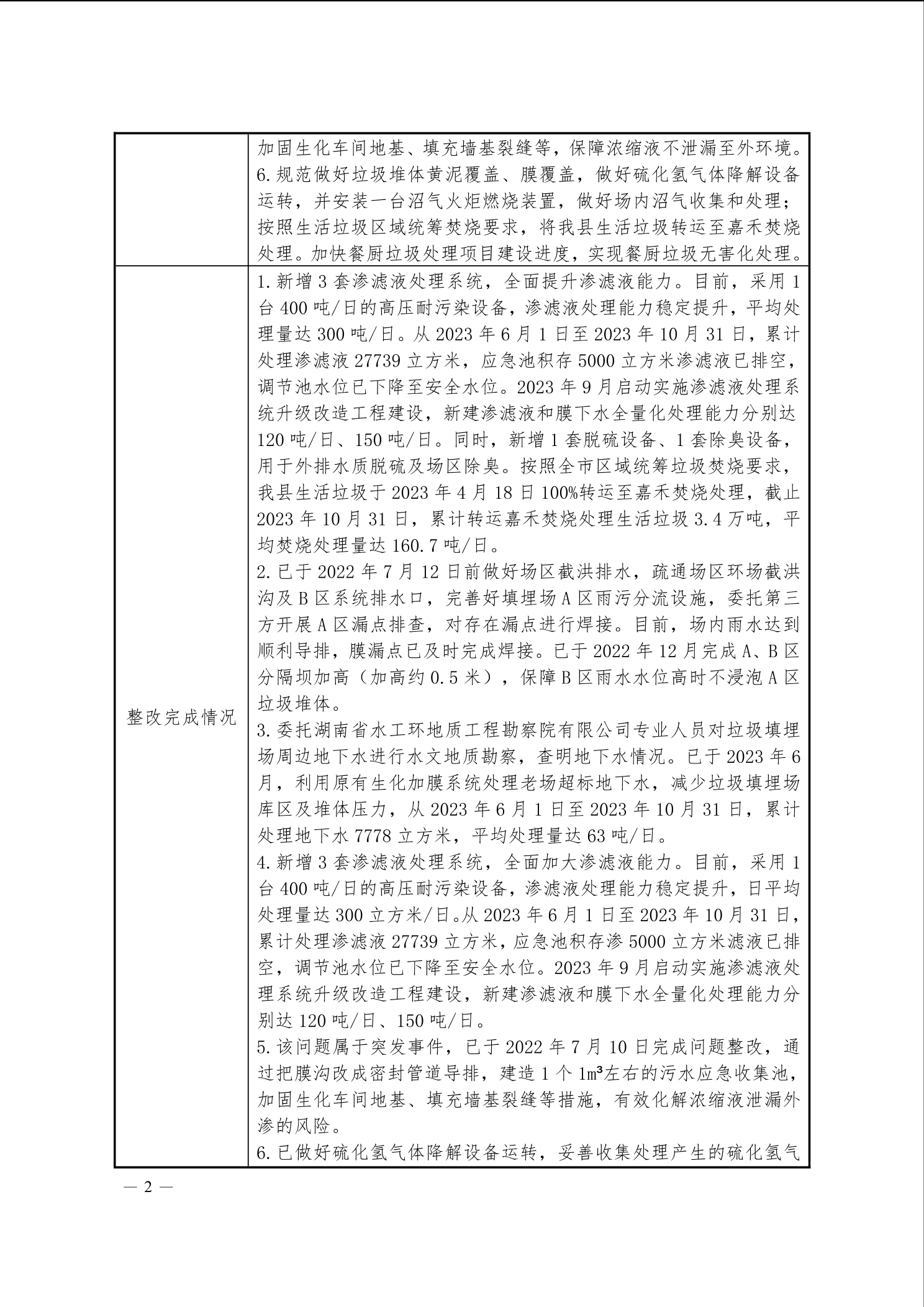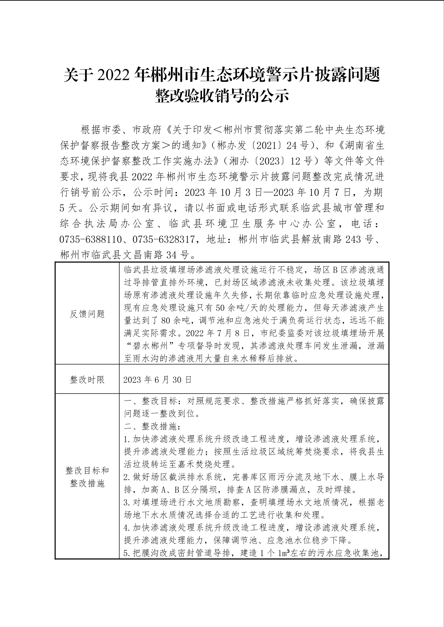 关于2022年郴州市生态环境警示片披露问题整改验收销号的公示