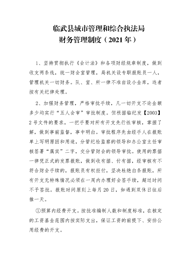 临武县城市管理和综合执法局财务管理制度(2021年)